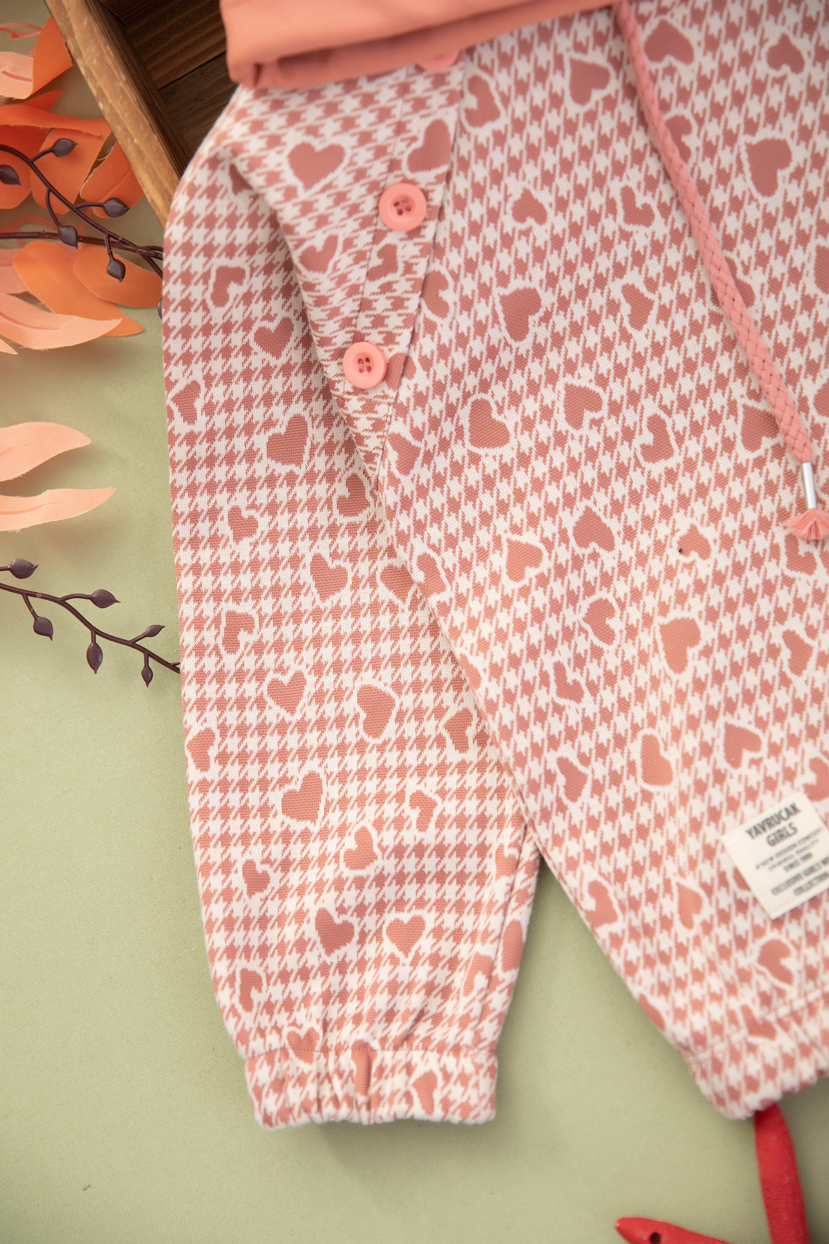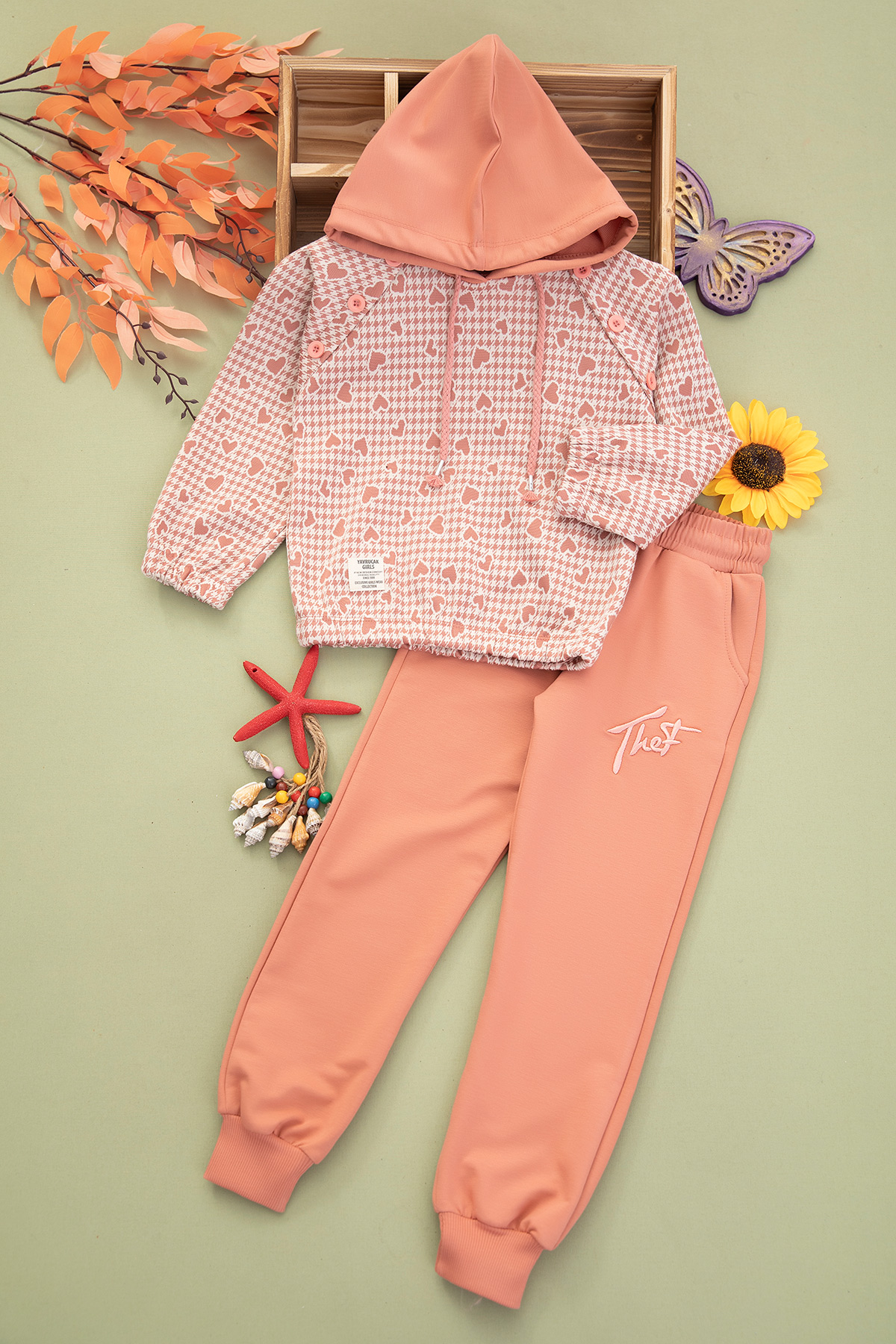 Kız Çocuk Kalp Baskılı Kapşonlu Takım - 6936 (5-8 Yaş)