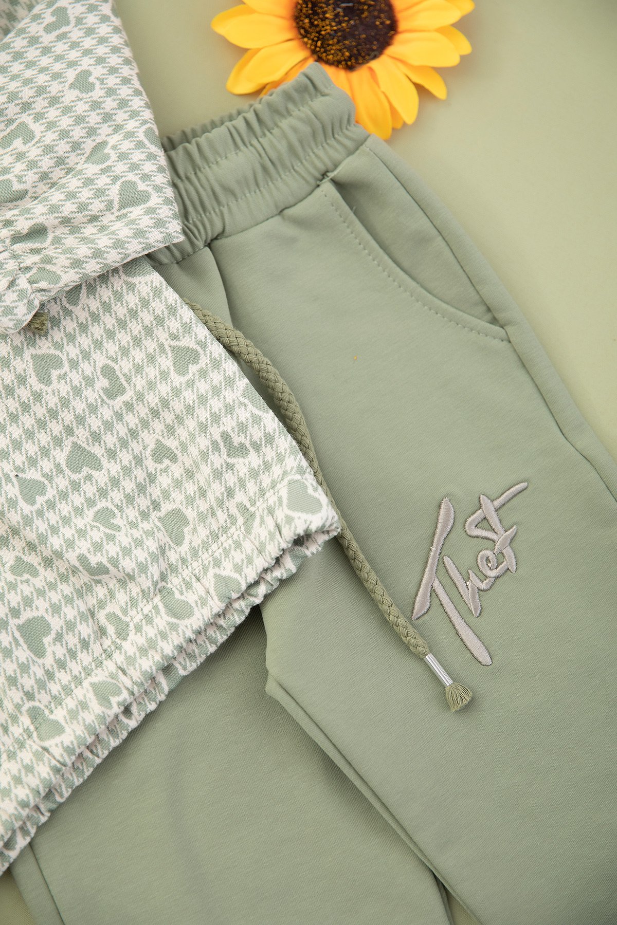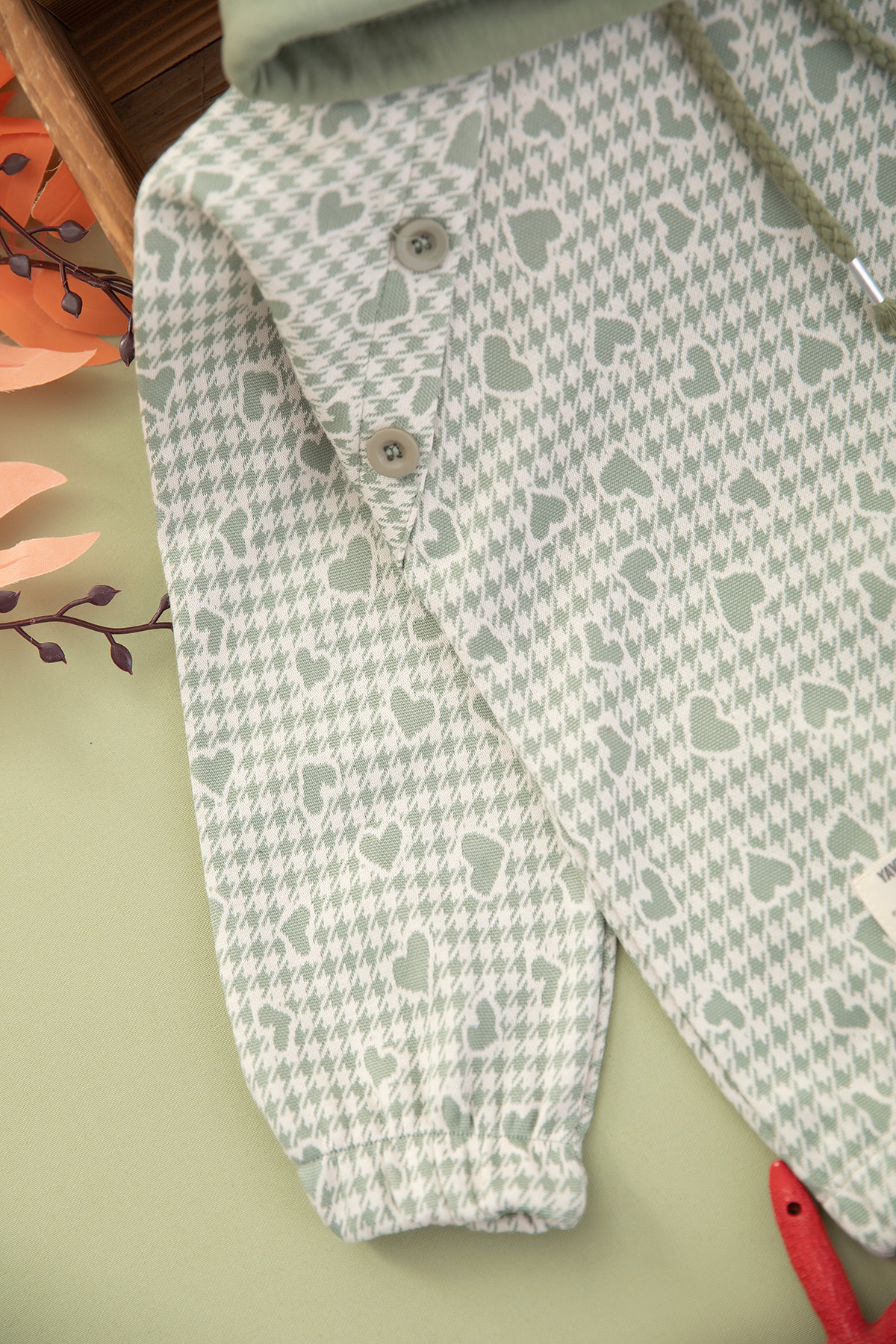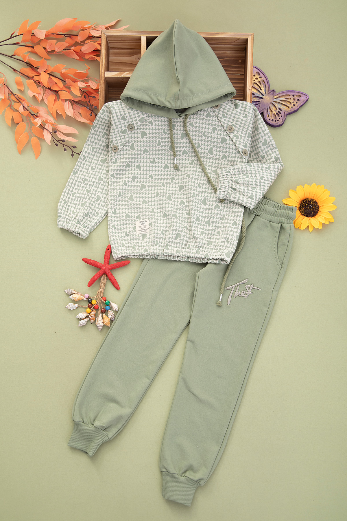 Kız Çocuk Kalp Baskılı Kapşonlu Takım - 6936 (5-8 Yaş)
