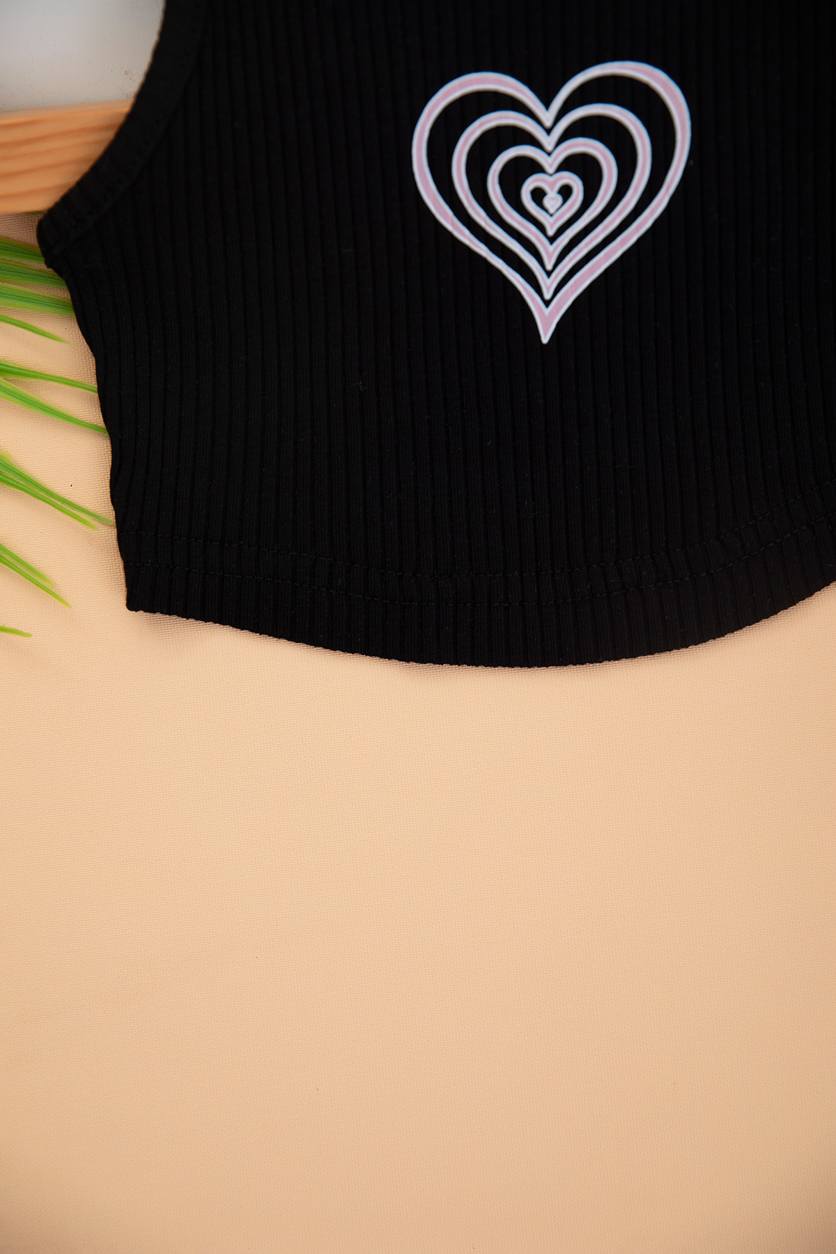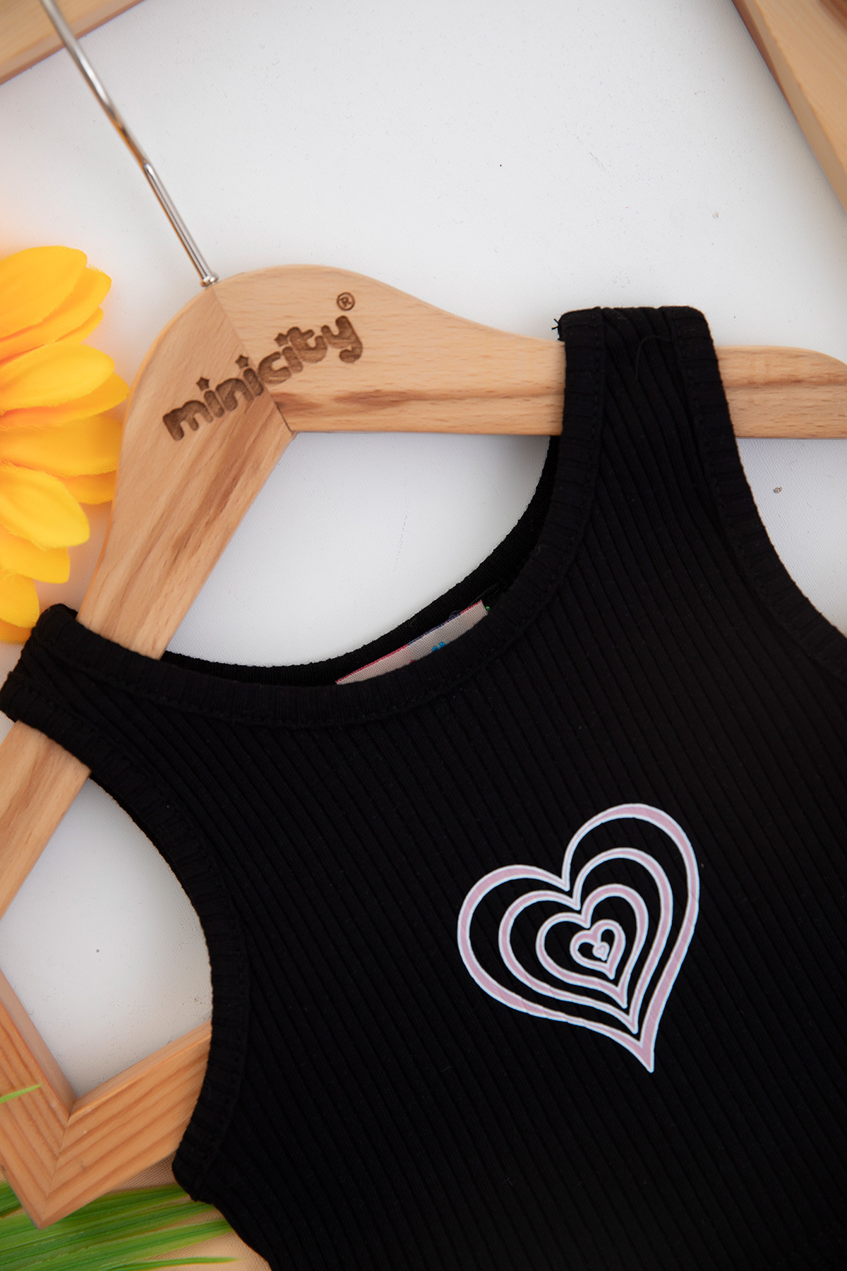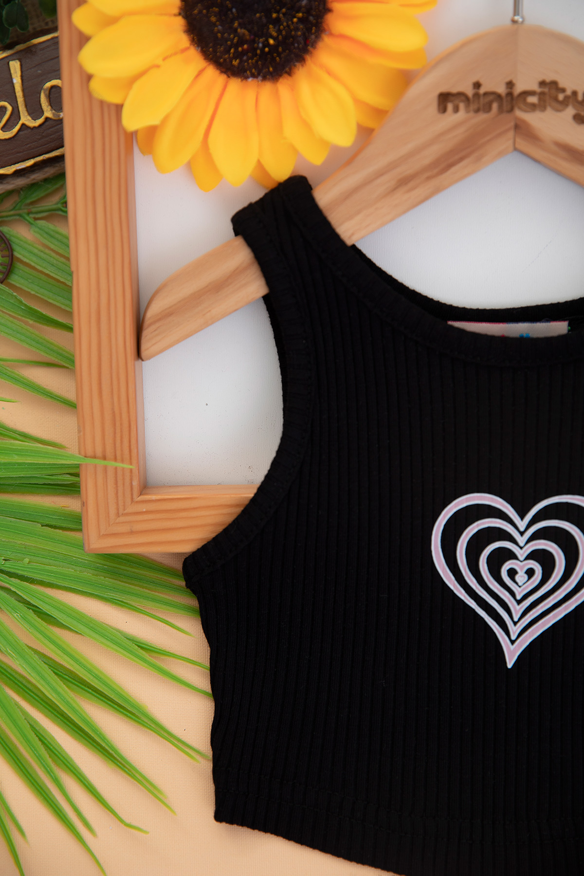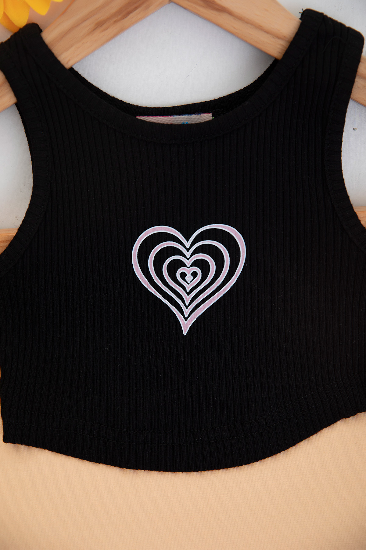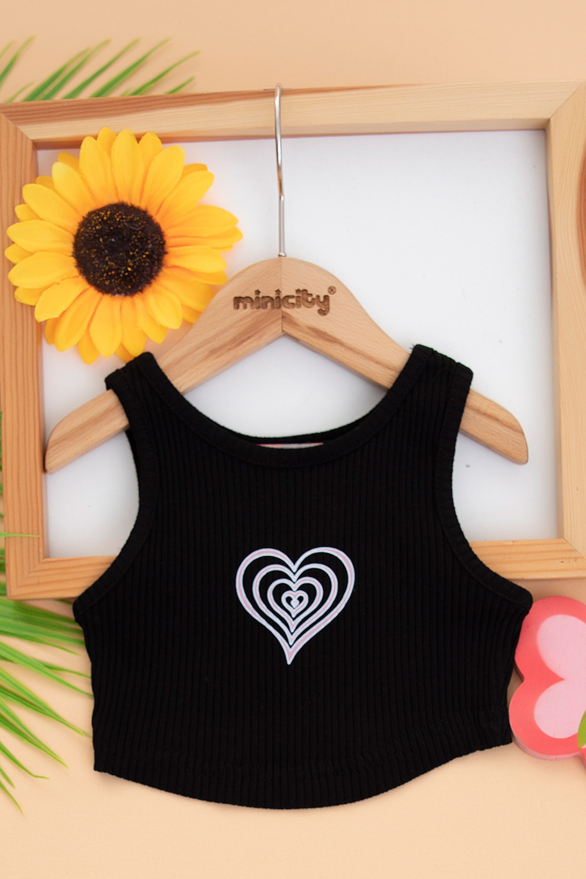 Kız Çocuk Kalp Baskılı Kaşkorse Crop Body - 4374 (6-14 Yaş)