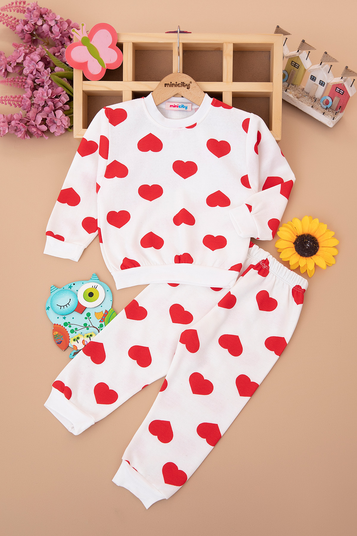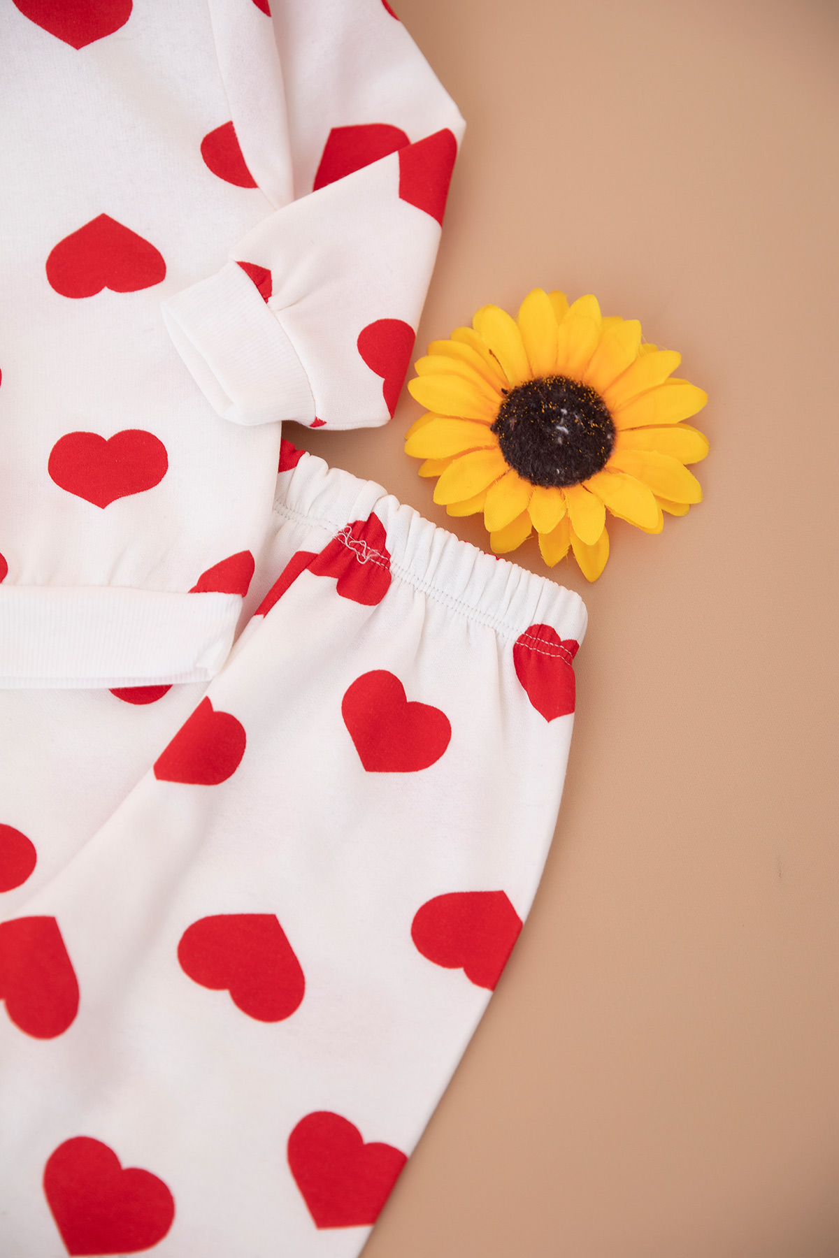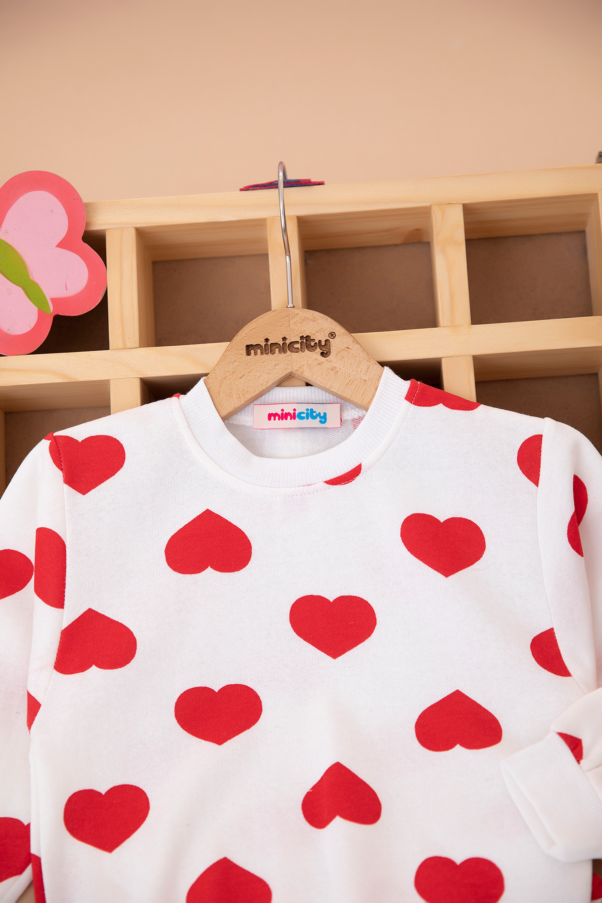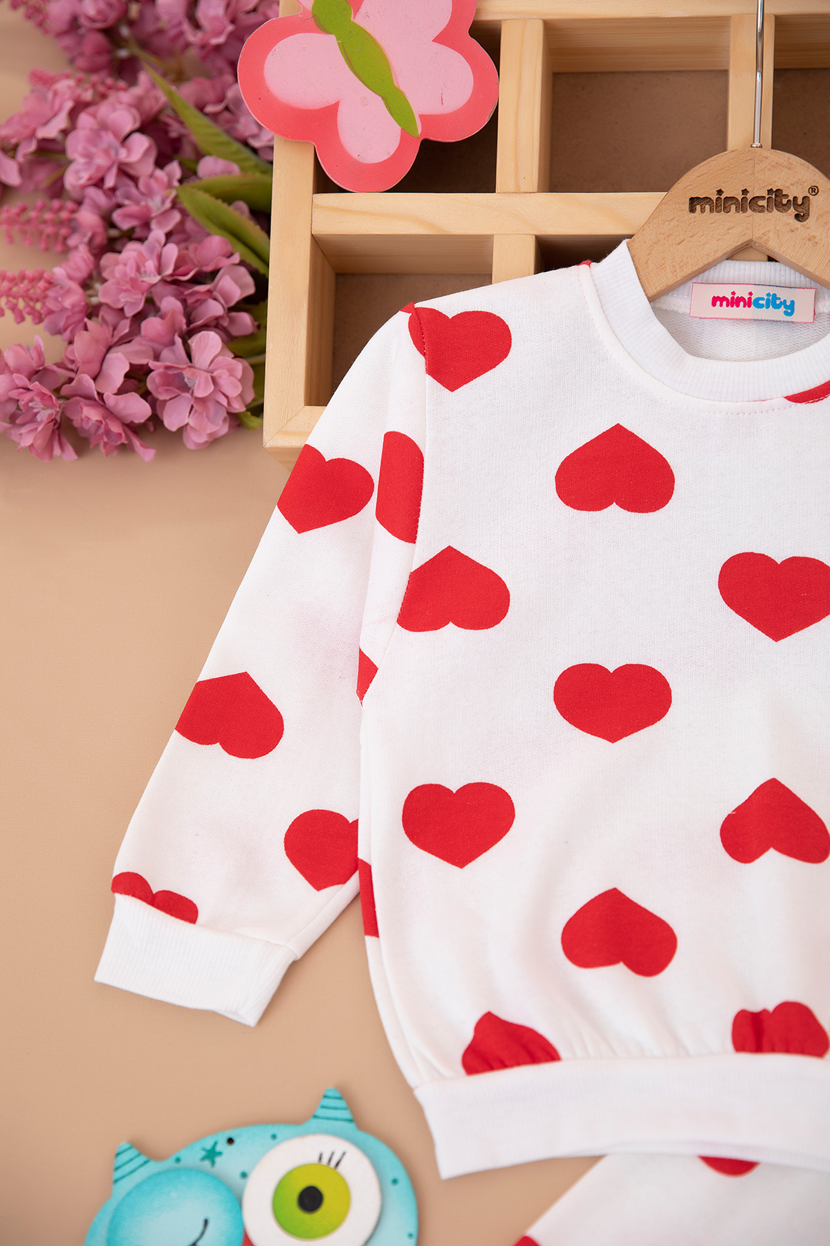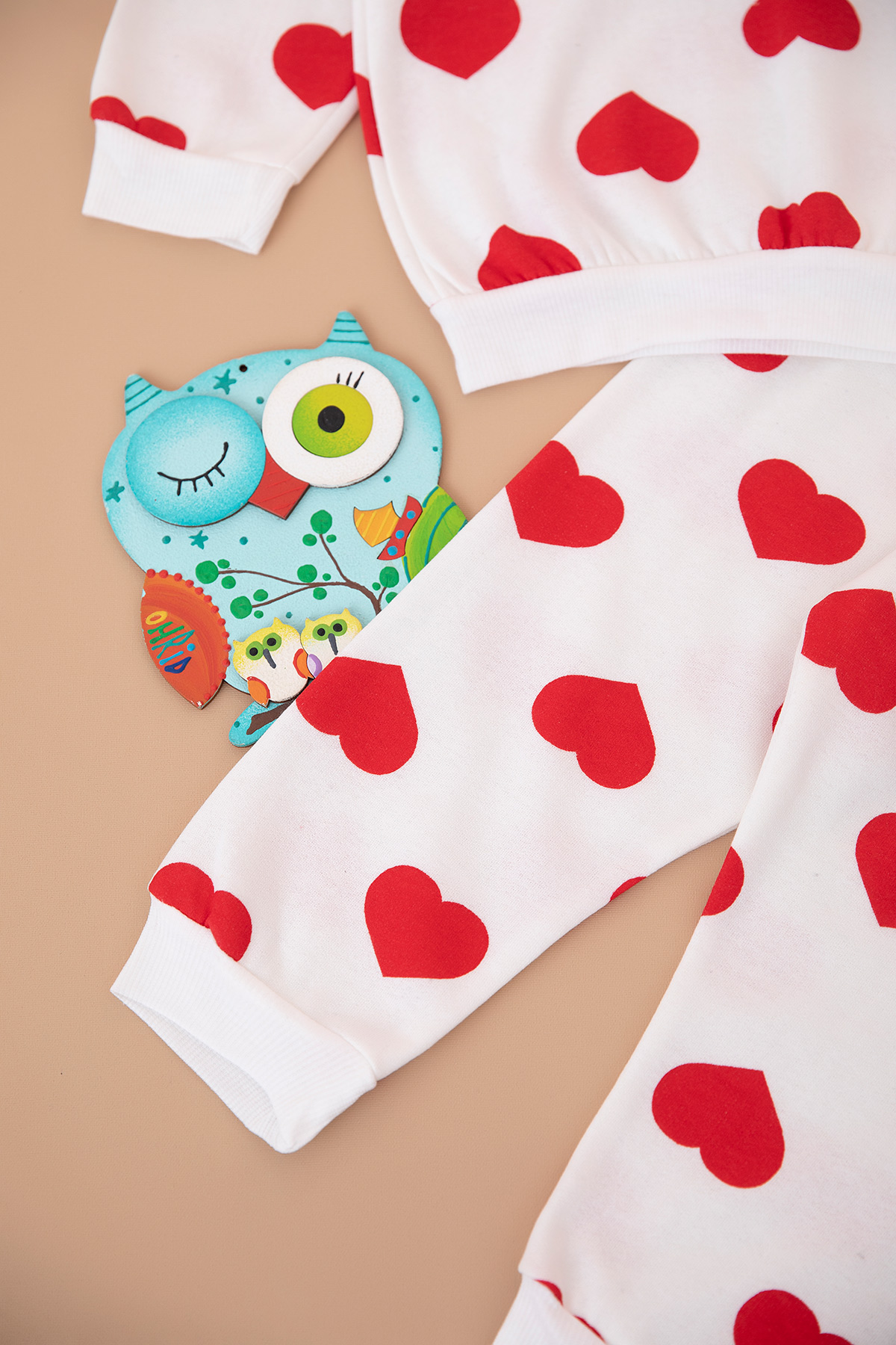 Kız Çocuk Kalp Baskılı Şardonlu Takım (2-5 Yaş)