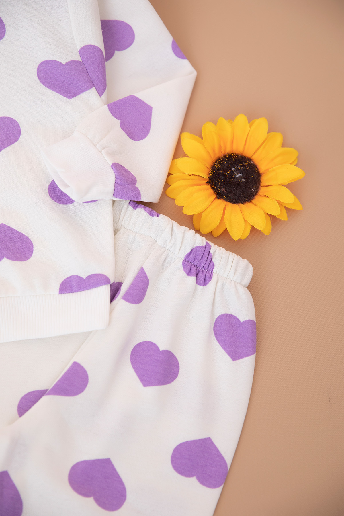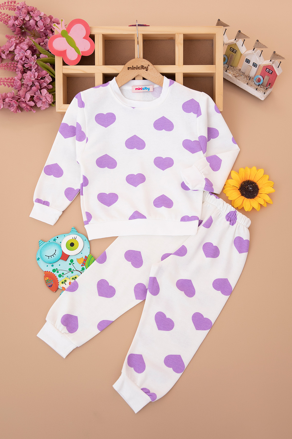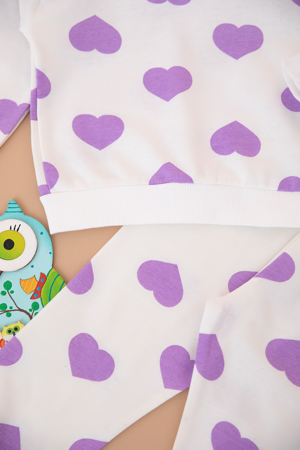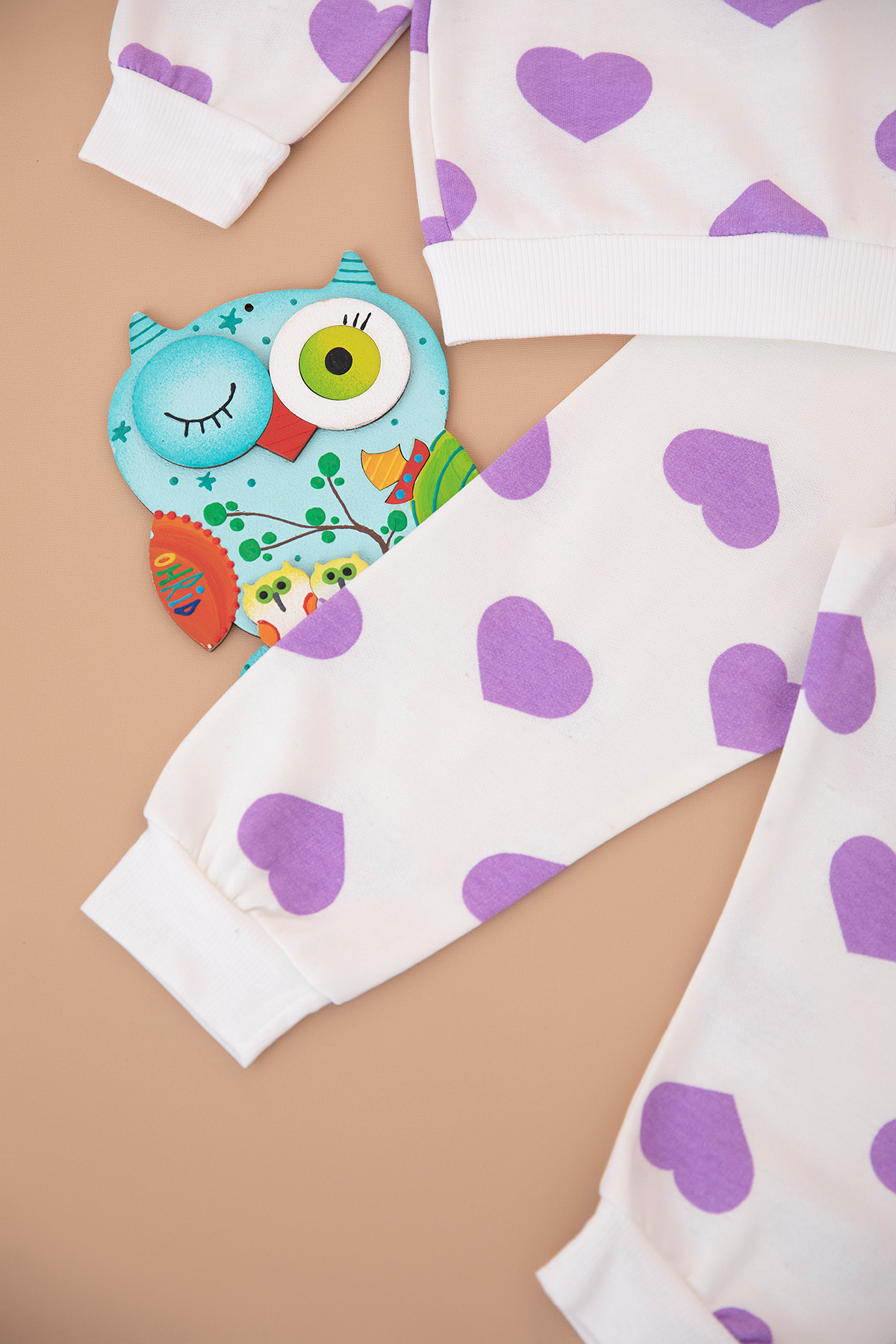Kız Çocuk Kalp Baskılı Şardonlu Takım (2-5 Yaş)