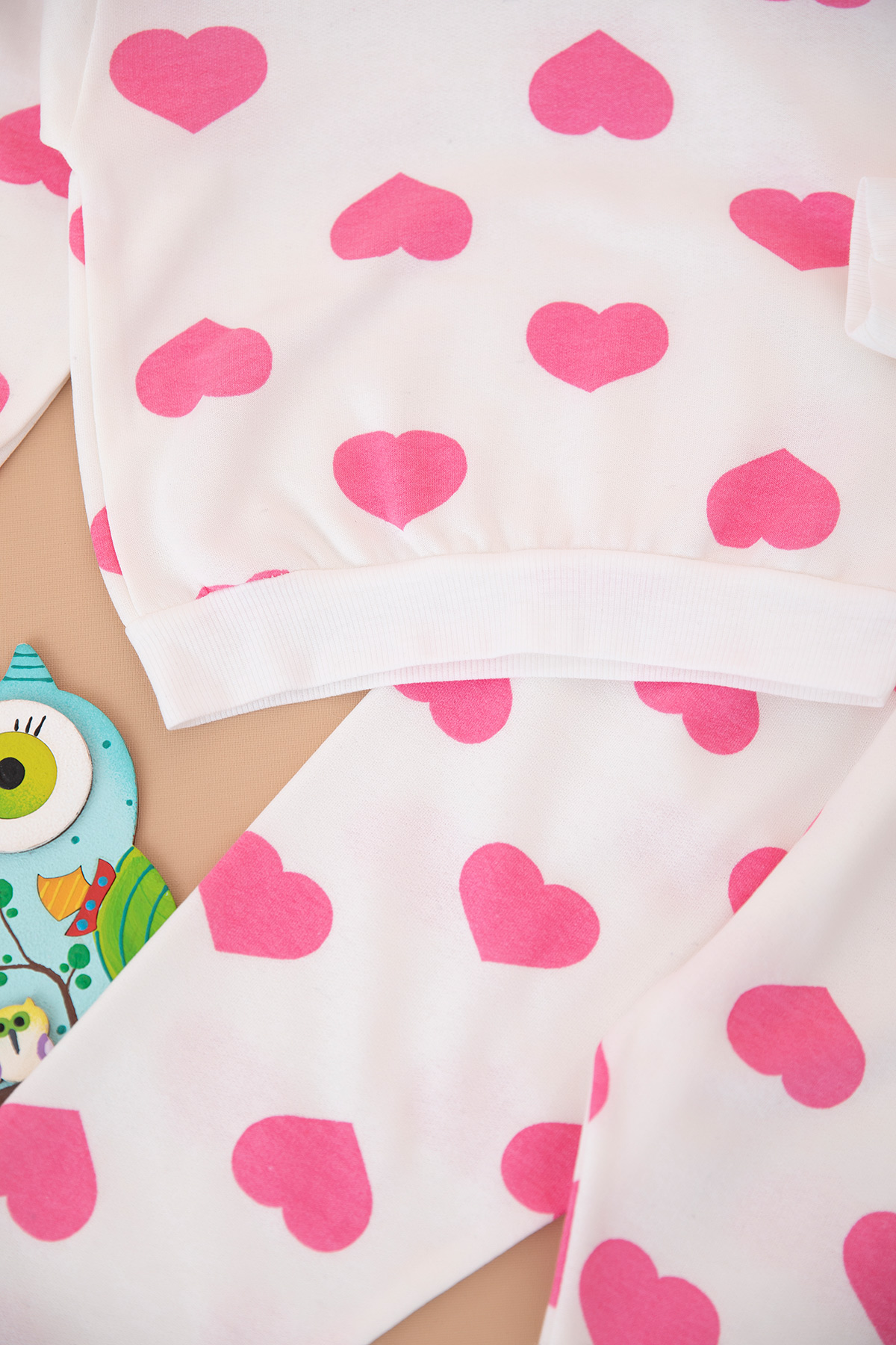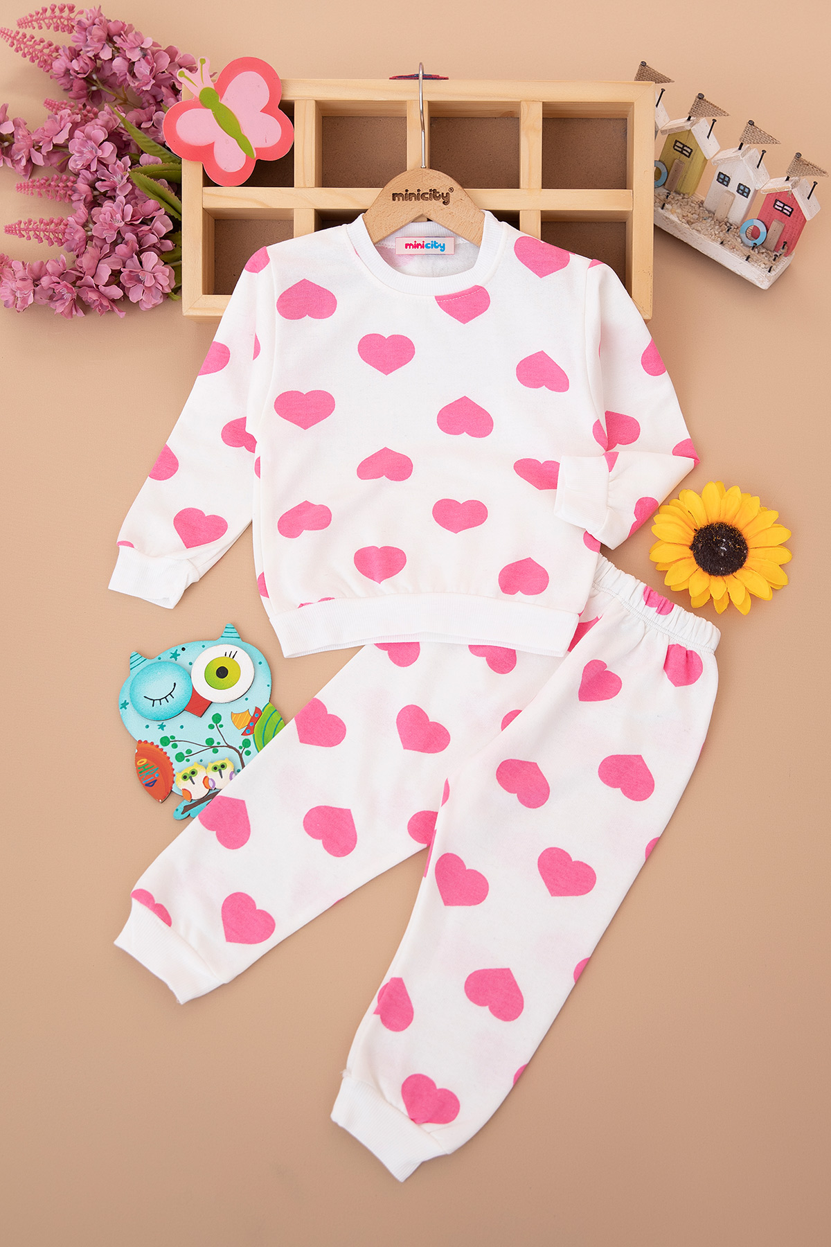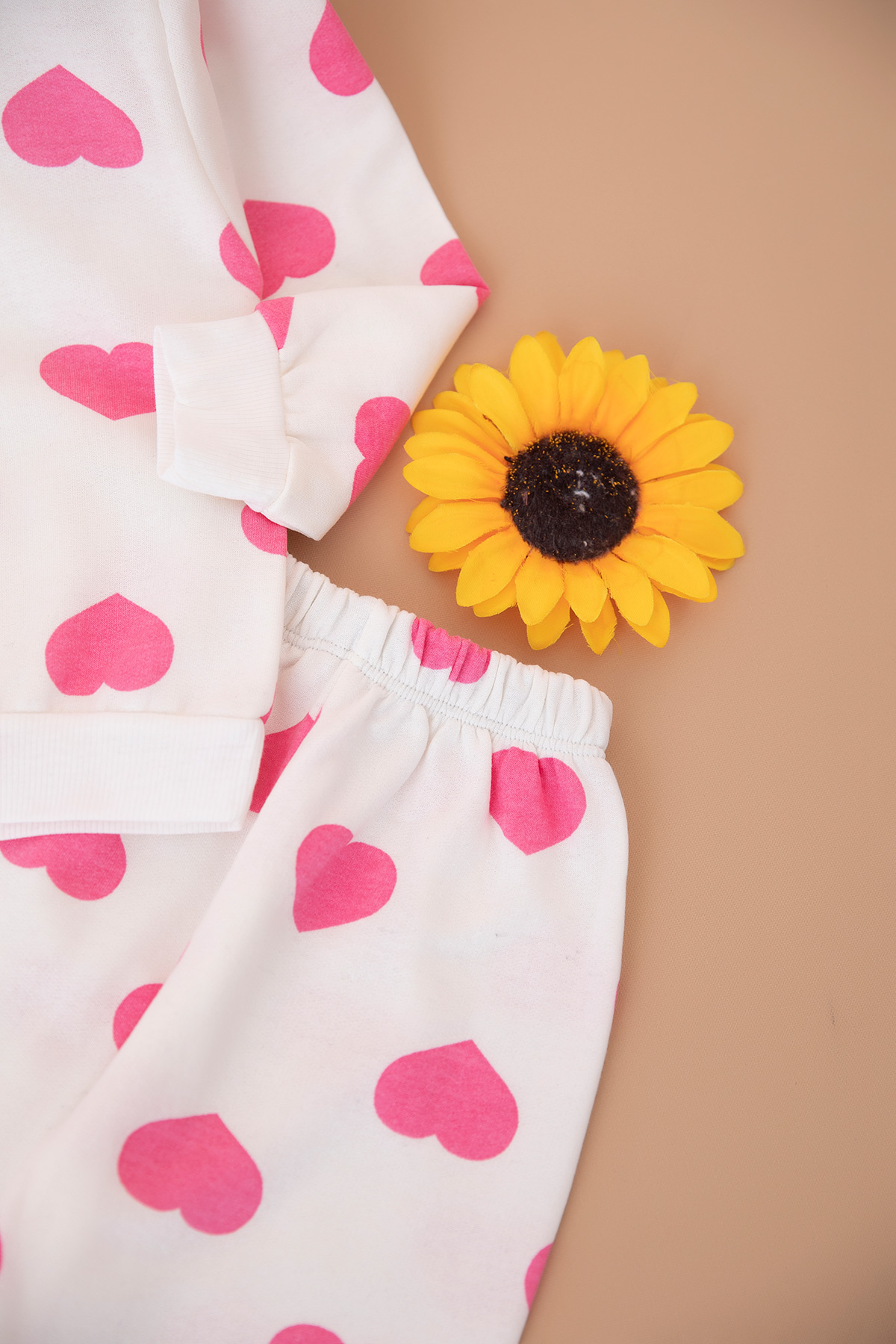 Kız Çocuk Kalp Baskılı Şardonlu Takım (2-5 Yaş)