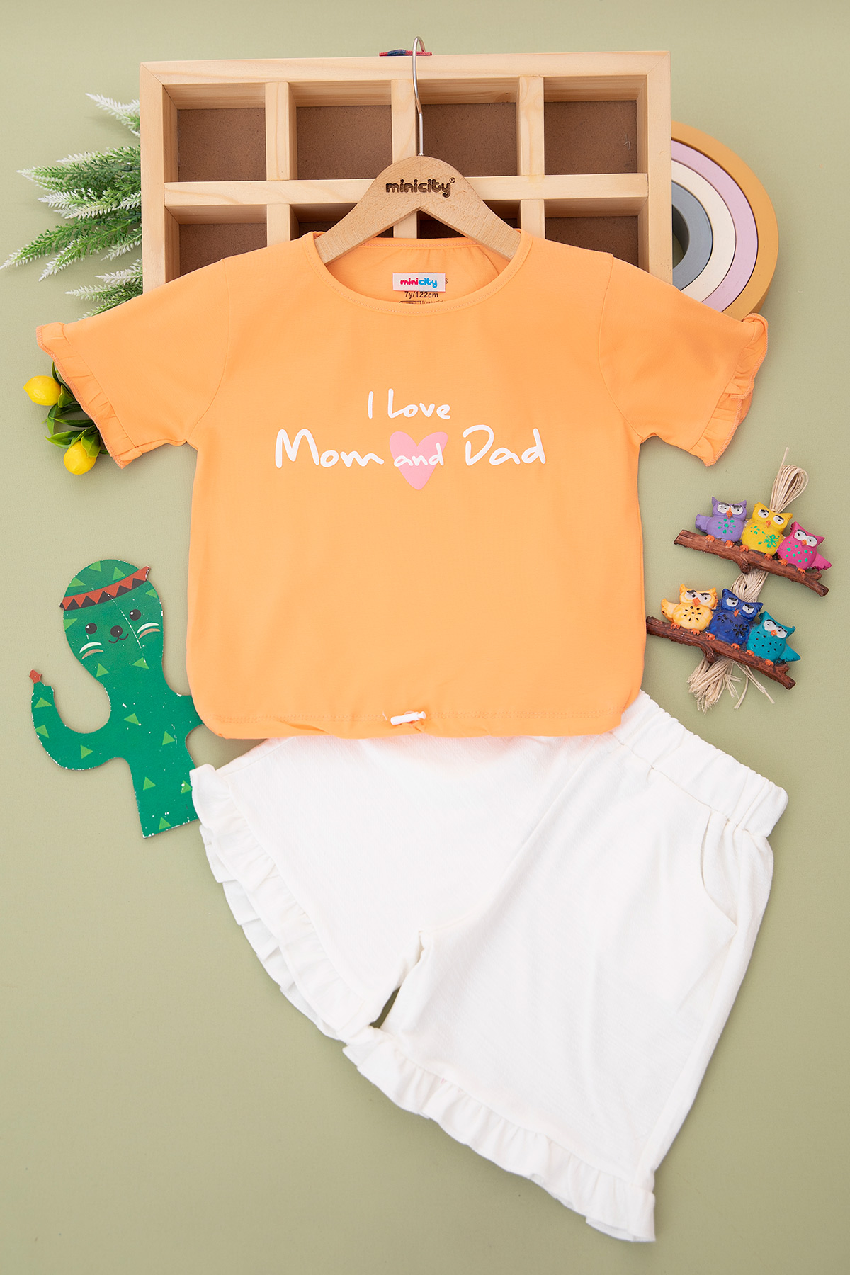 Kız Çocuk Kalp Baskılı Şortlu Takım - 24314 (7-10 Yaş)
