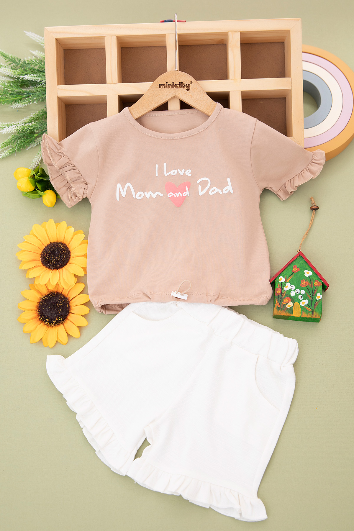 Kız Çocuk Kalp Baskılı Şortlu Takım - 24314 (7-10 Yaş)