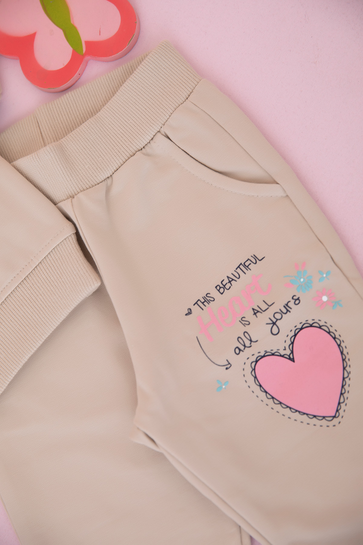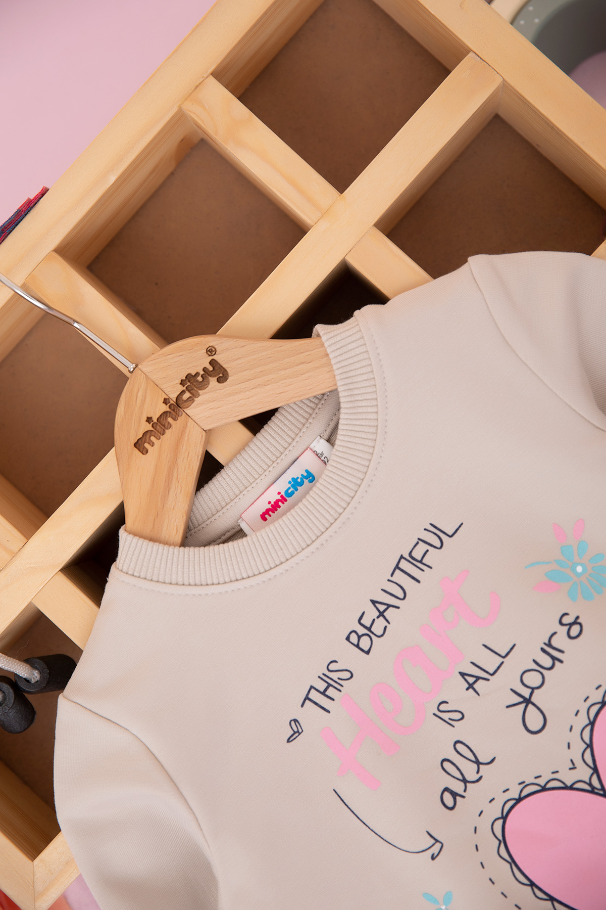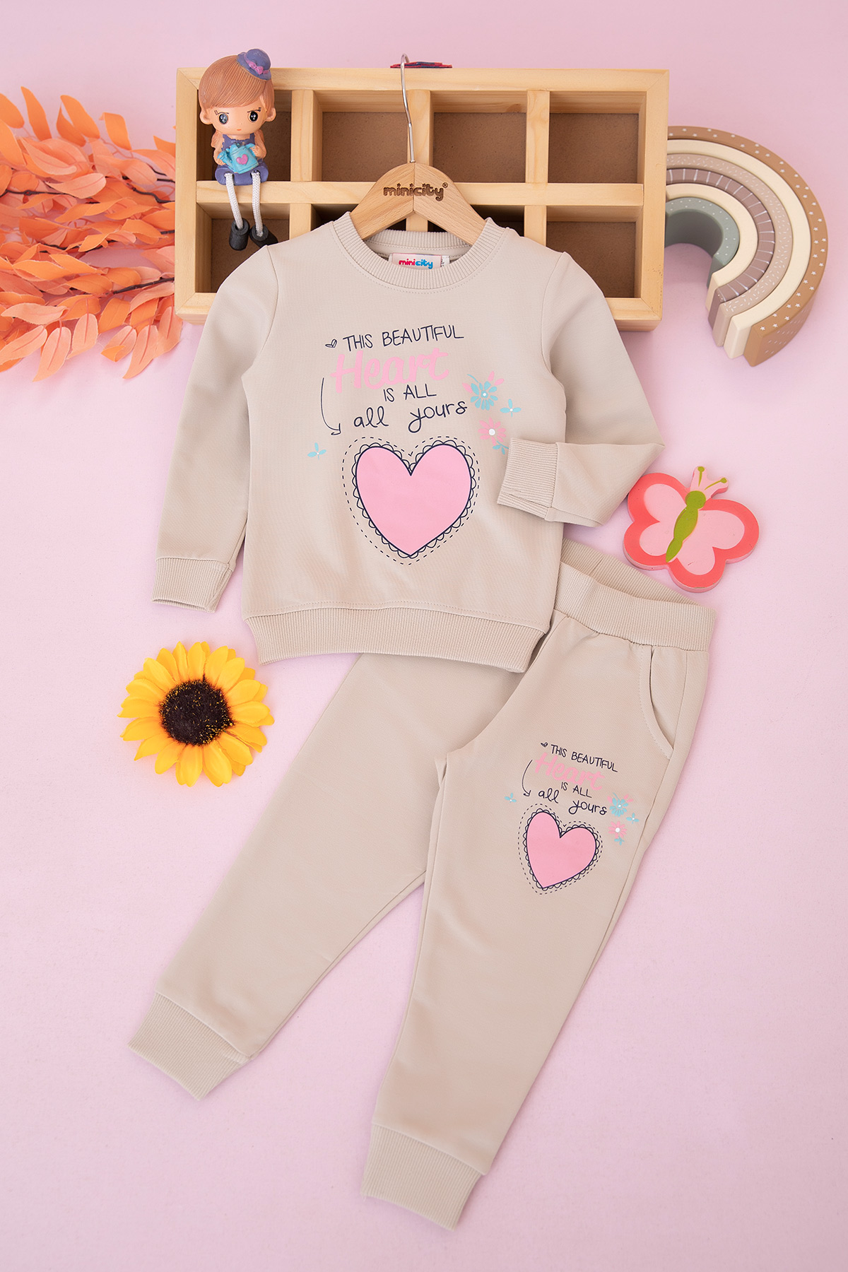Kız Çocuk Kalp Baskılı Takım - 7758 (2-6 Yaş)