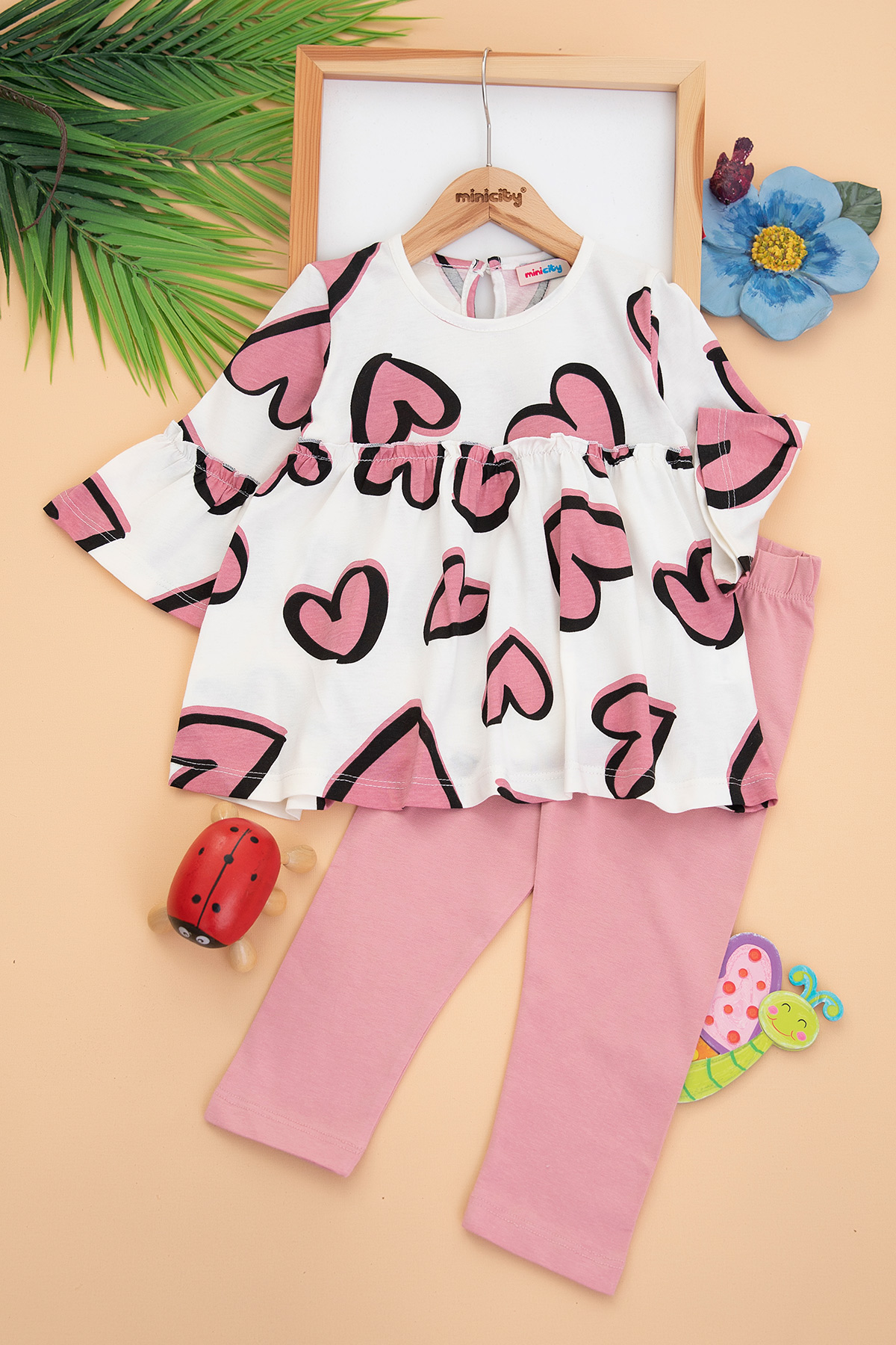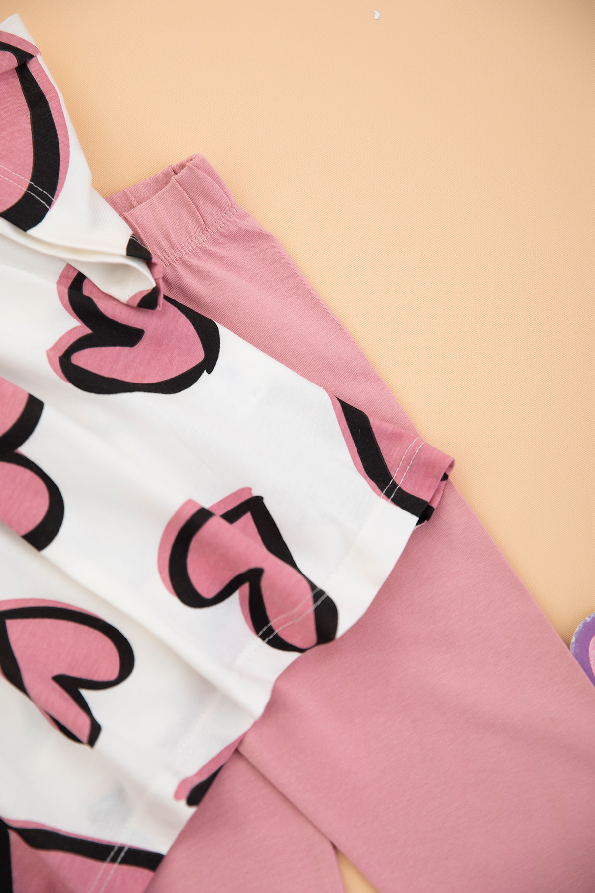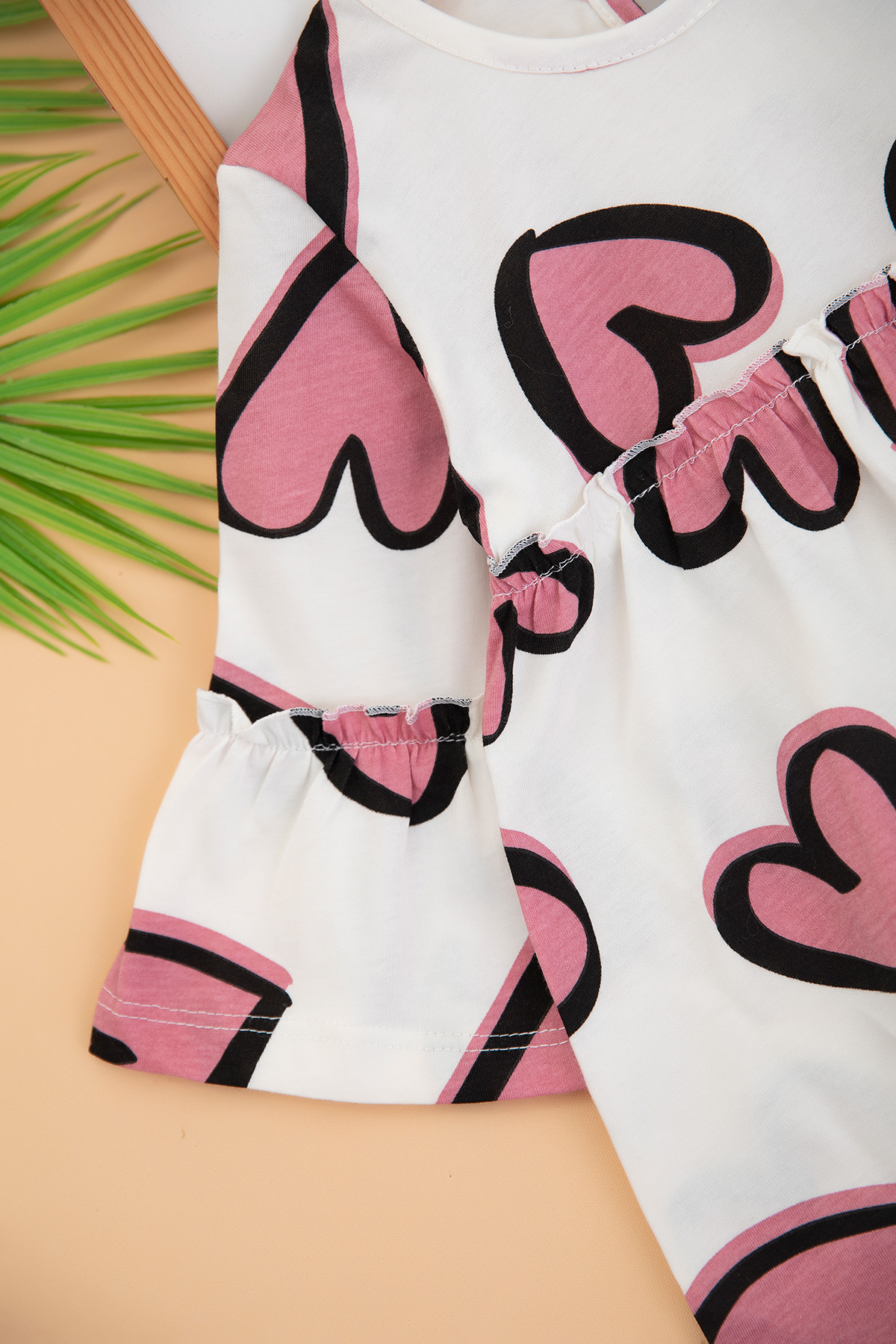 Kız Çocuk Kalp Baskılı Taytlı Takım - 793 (4-8 Yaş)