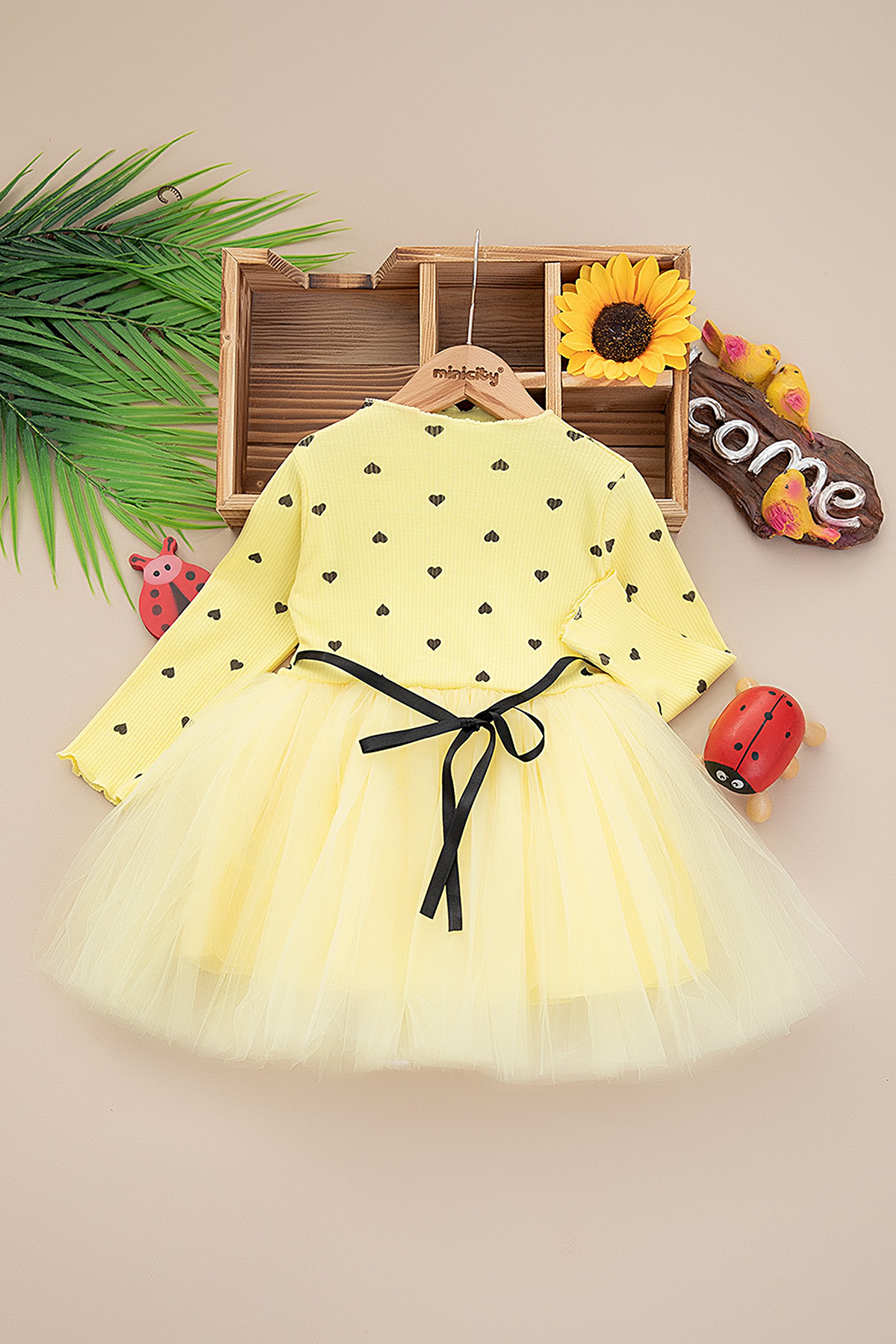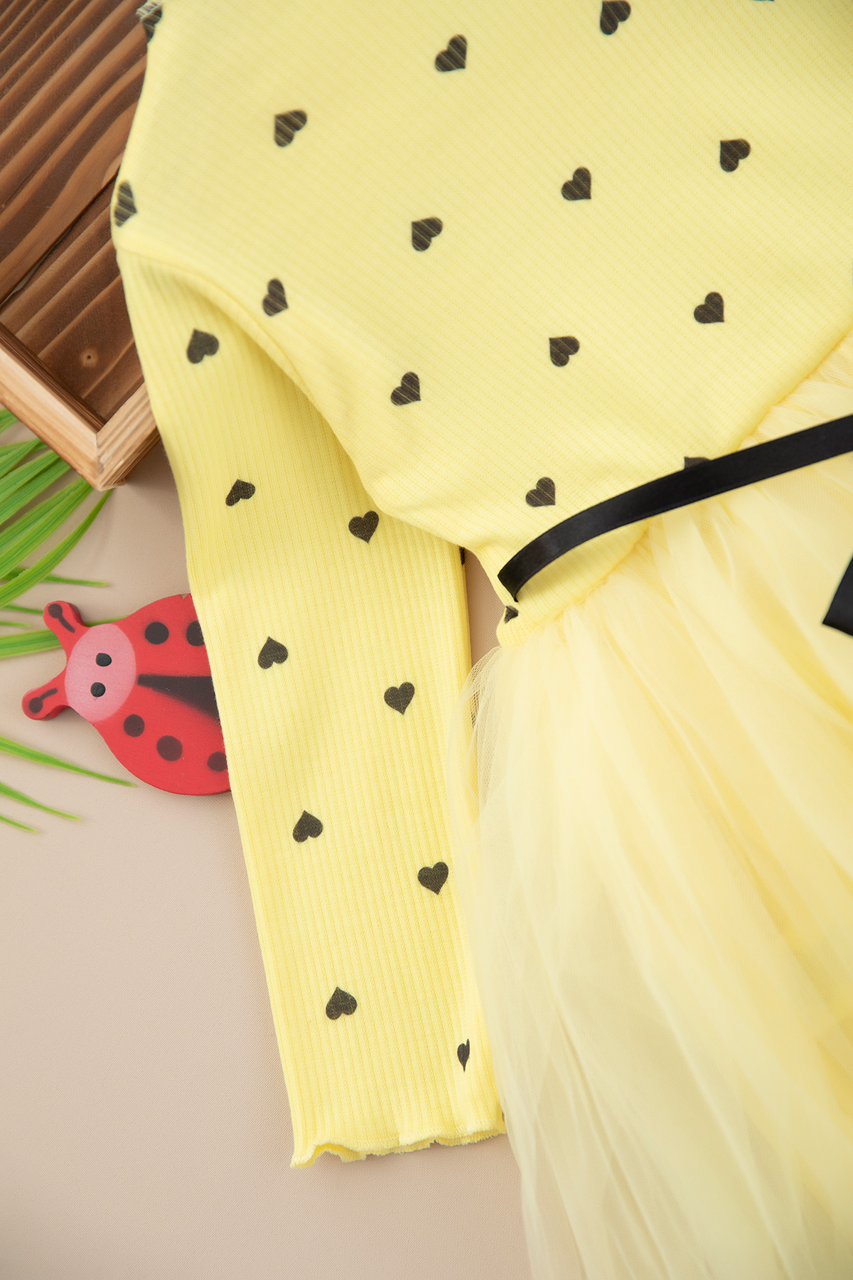 Kız Çocuk Kalp Baskılı Tüllü Elbise - 1023 (2-4 Yaş)