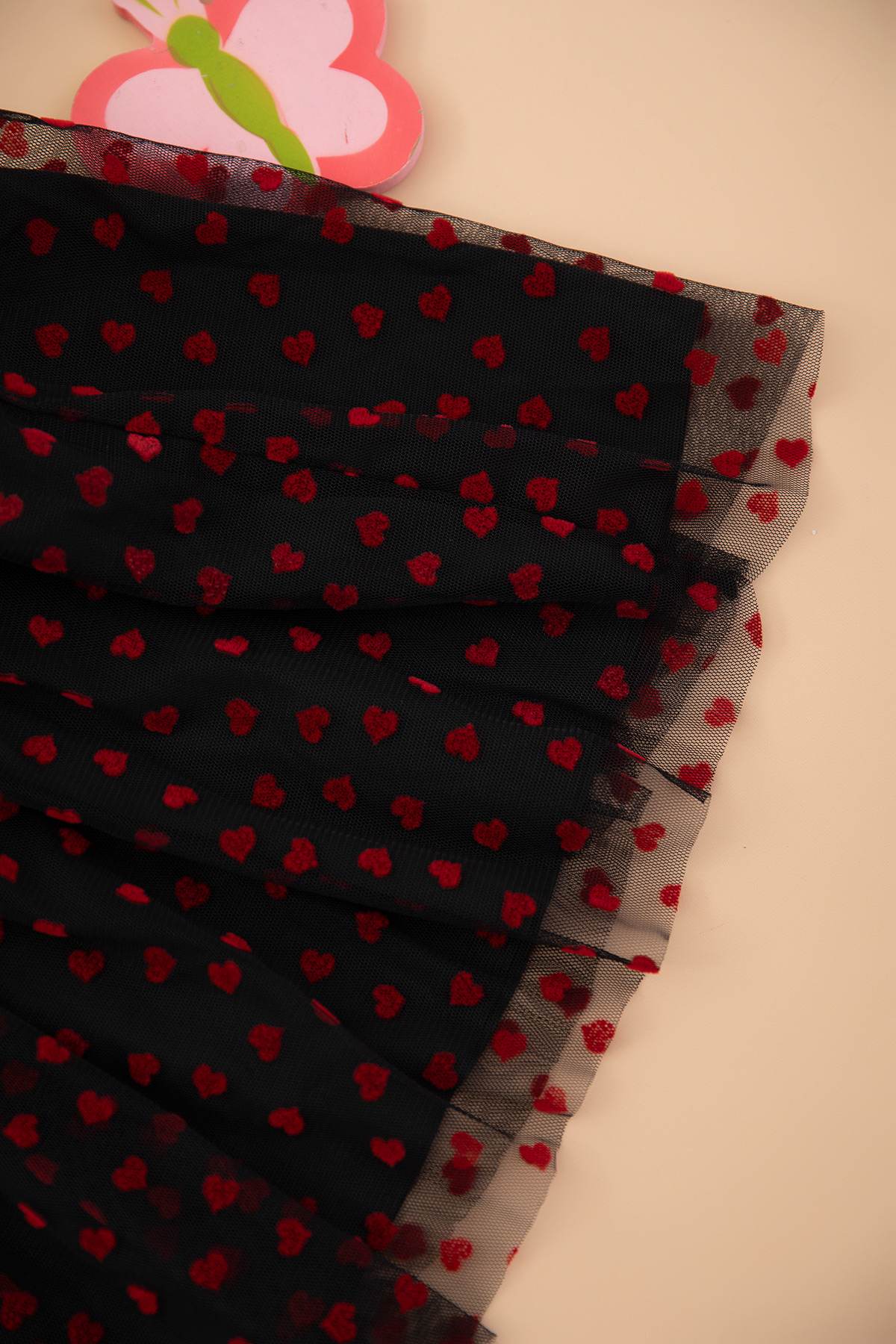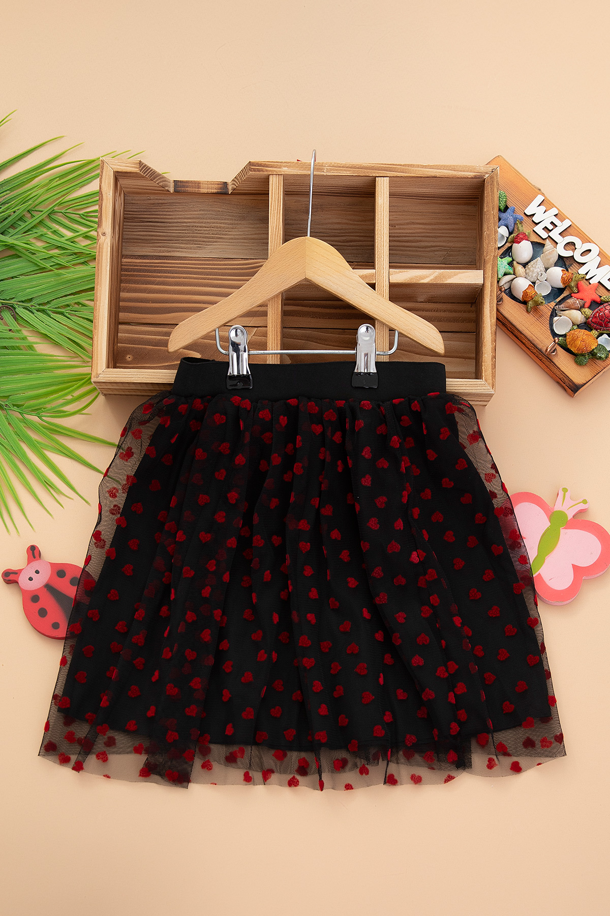 Kız Çocuk Kalp Baskılı Tüllü Etek - M-328 (6-10 Yaş)