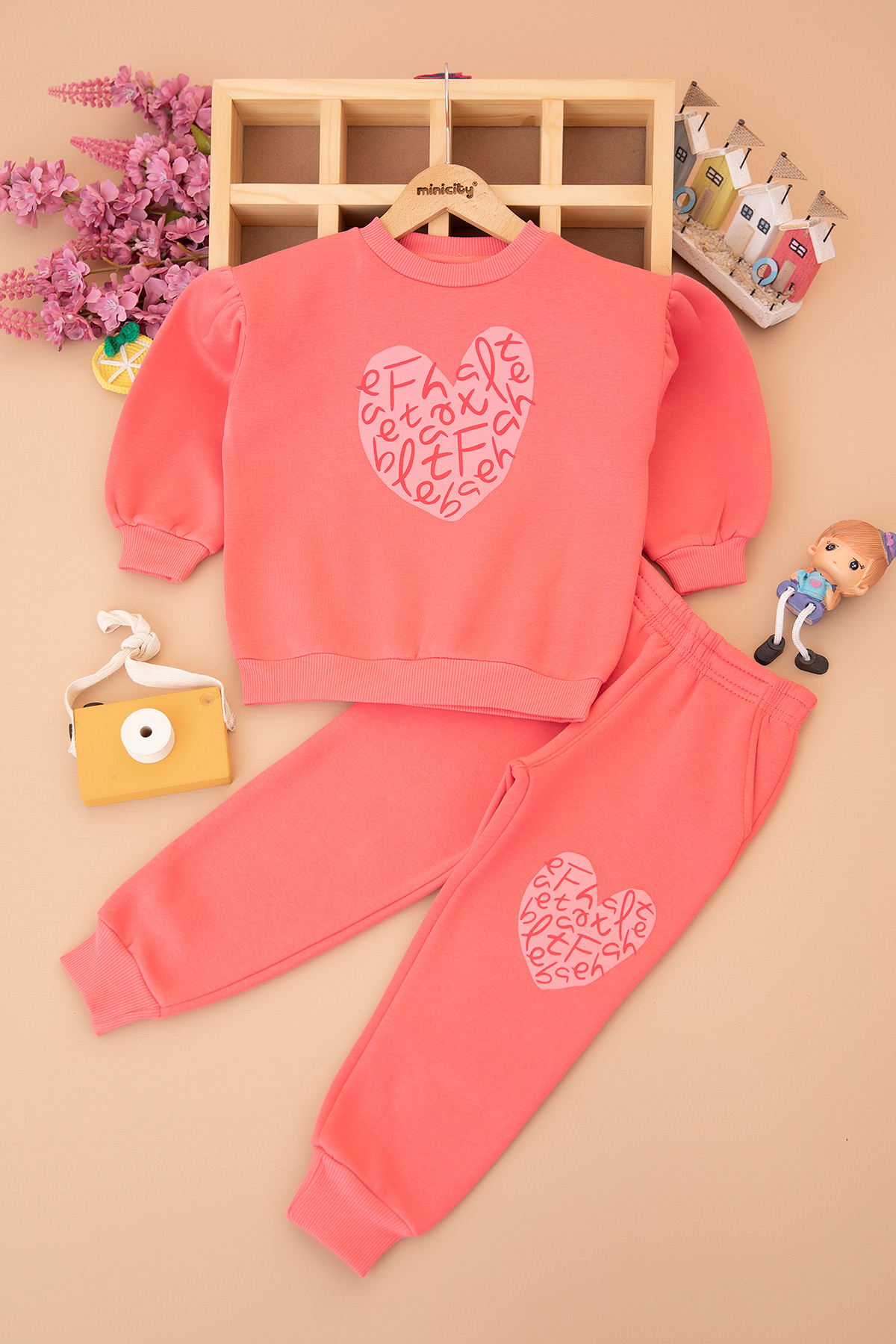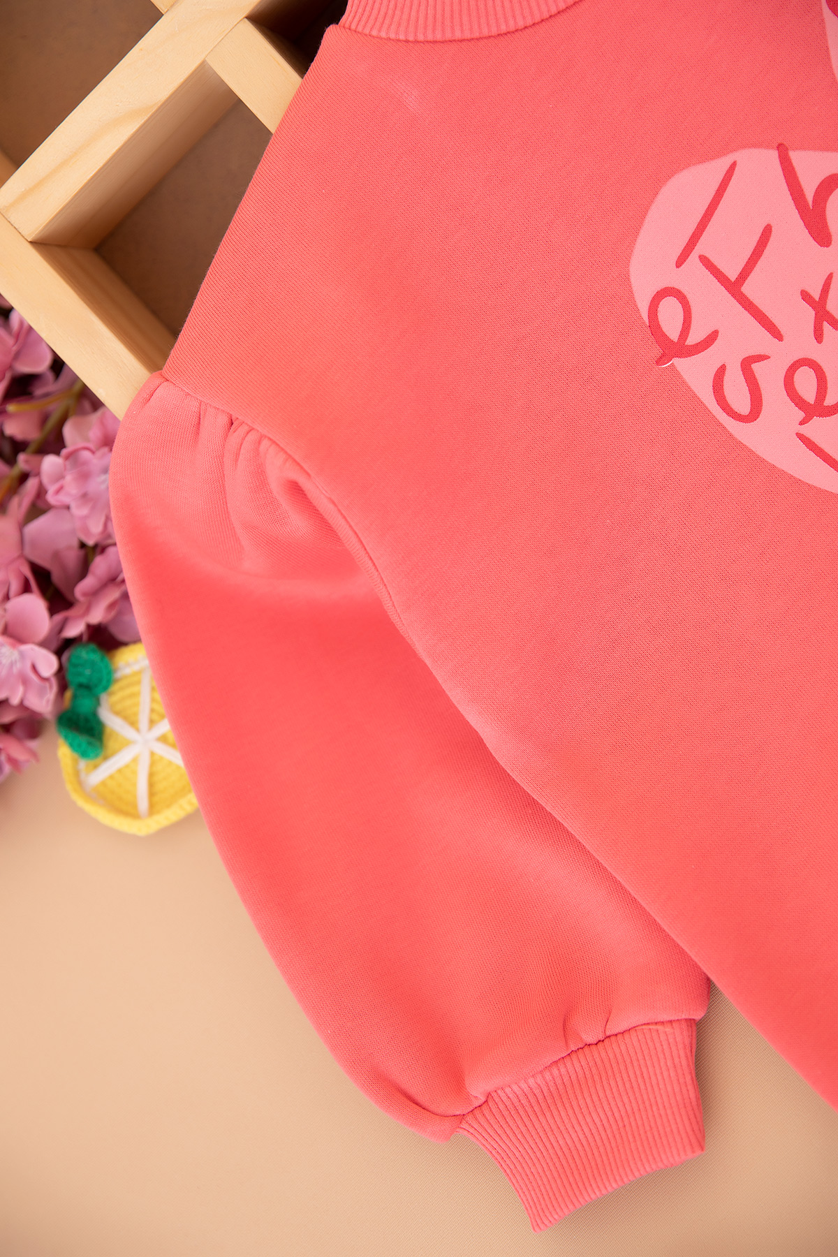 Kız Çocuk Kalp Baskılı Üçip Takım - 25963 (3-6 Yaş)