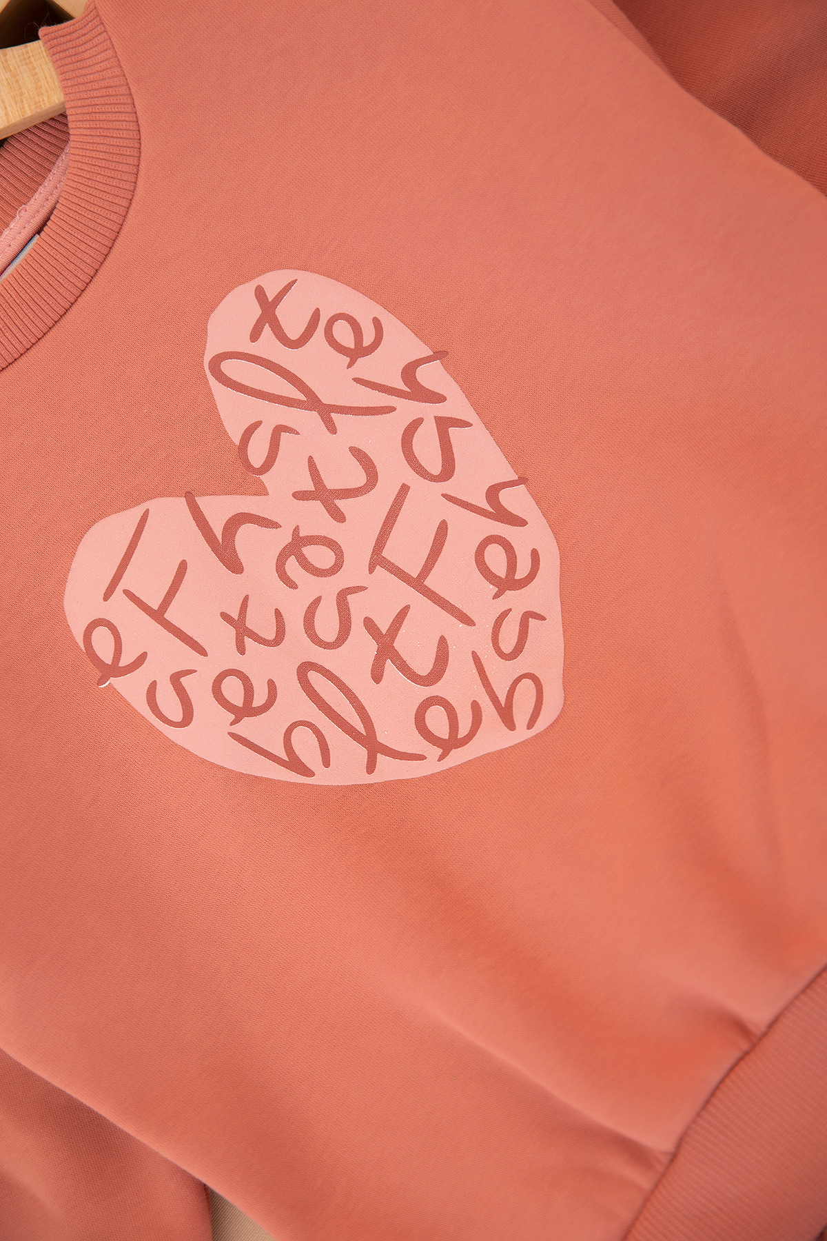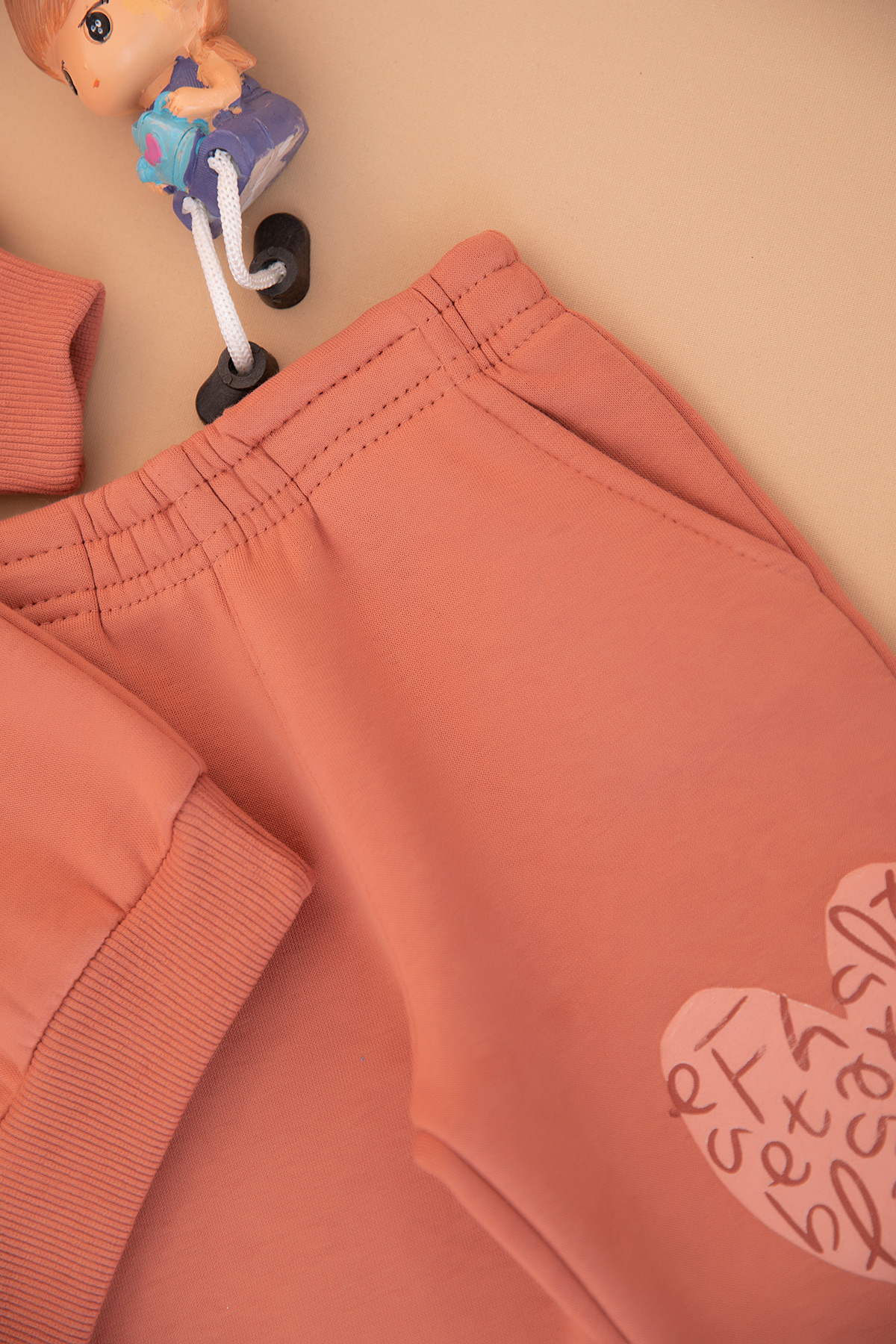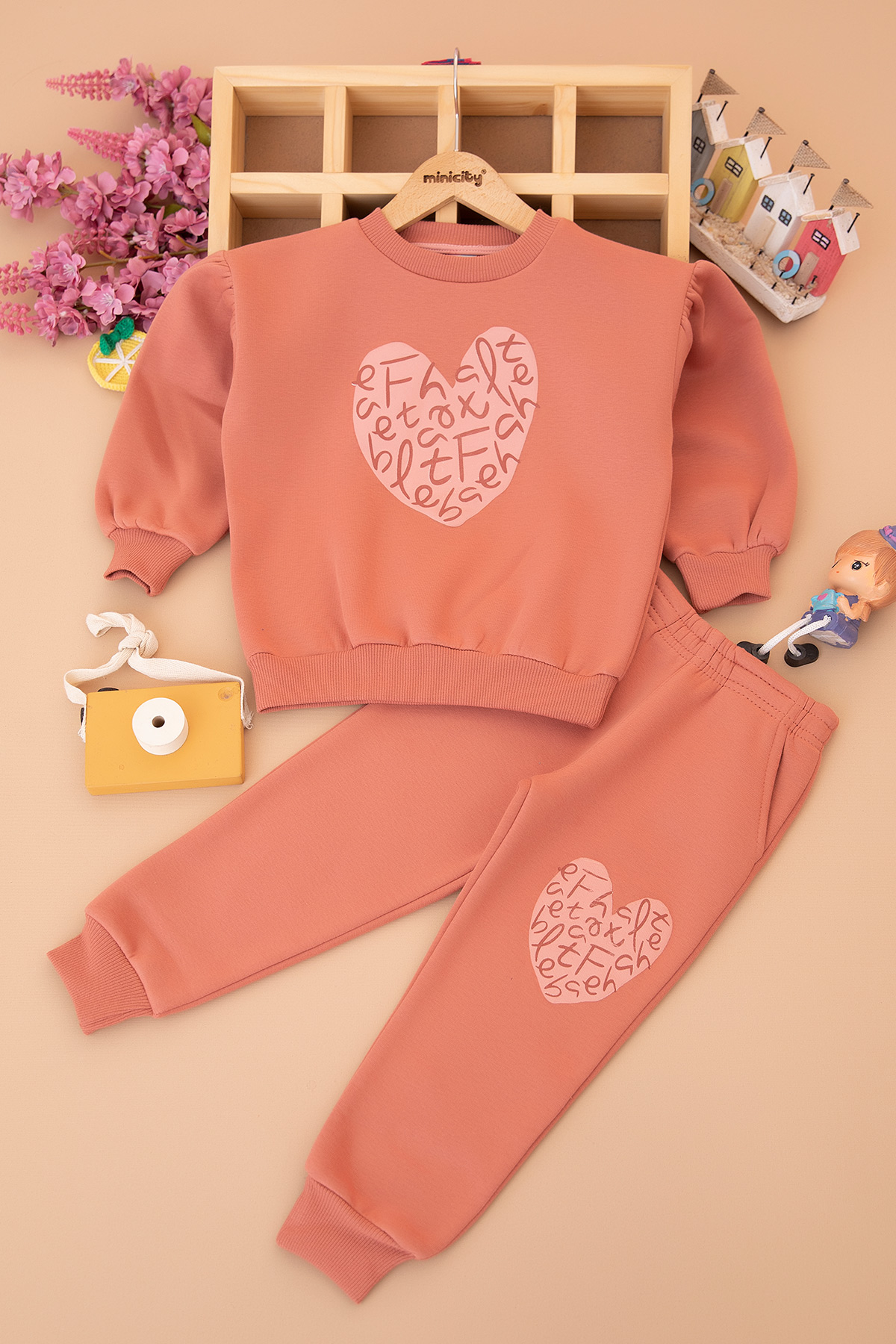 Kız Çocuk Kalp Baskılı Üçip Takım - 25963 (3-6 Yaş)