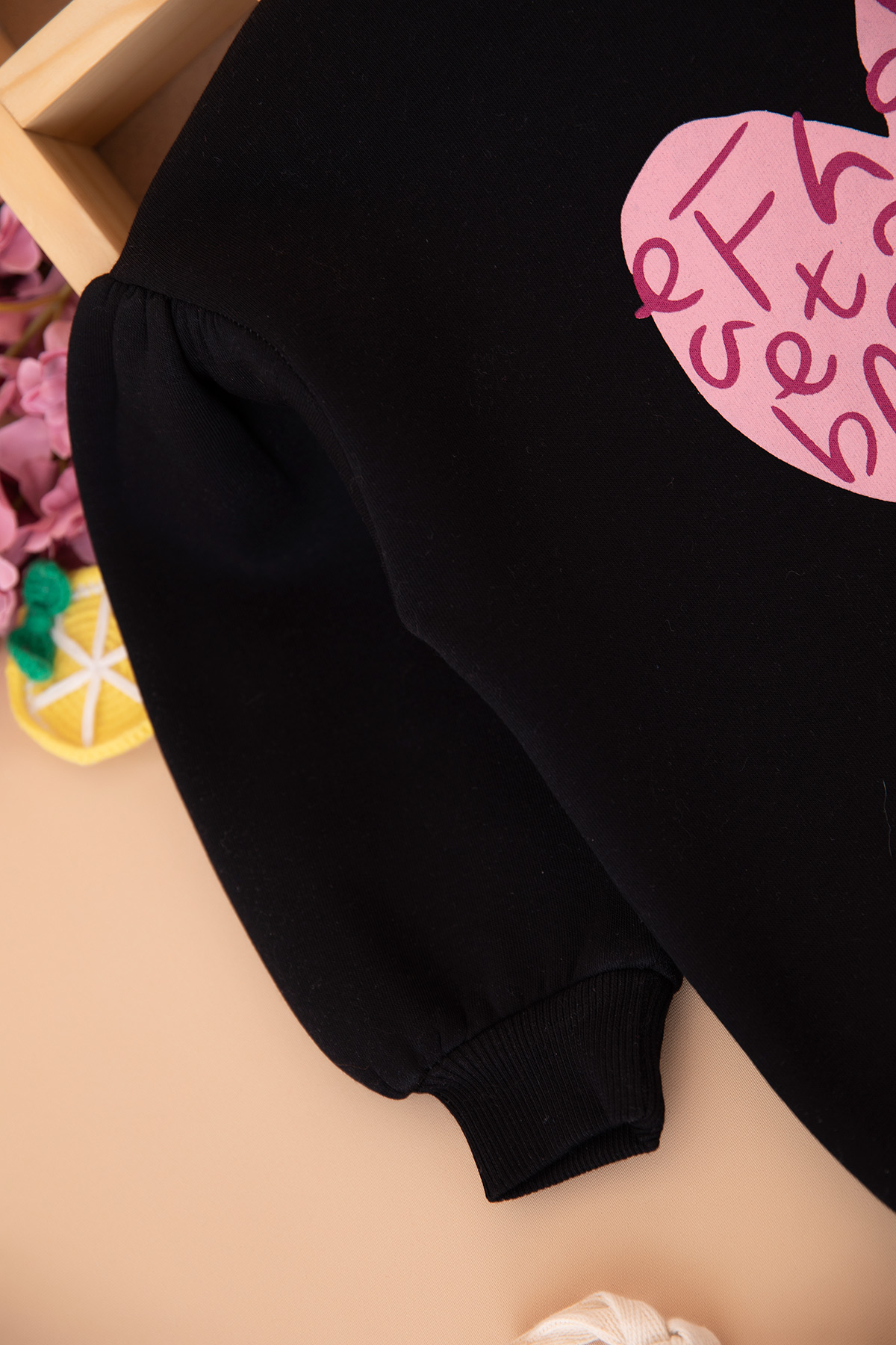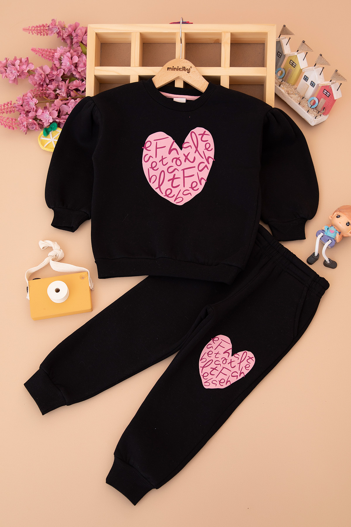 Kız Çocuk Kalp Baskılı Üçip Takım - 25963 (3-6 Yaş)