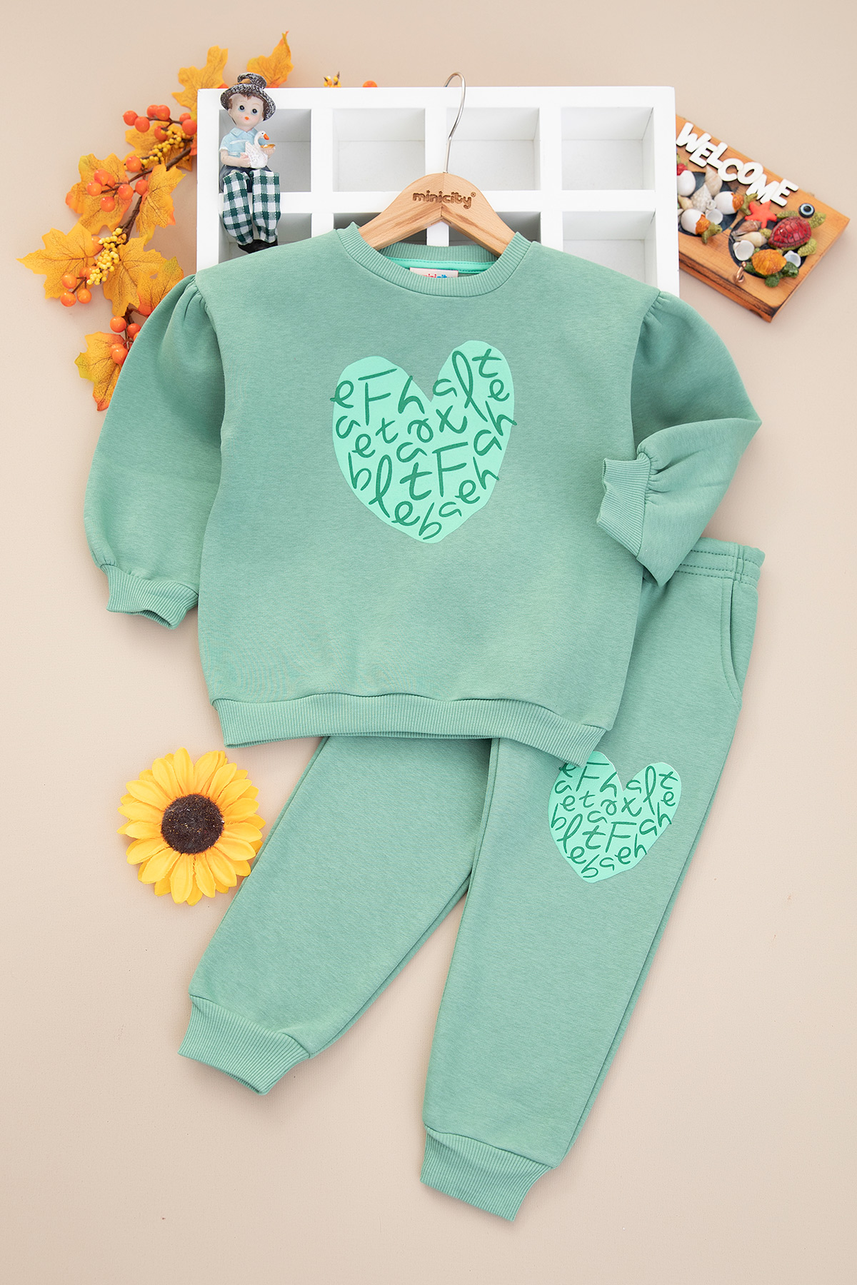Kız Çocuk Kalp Baskılı Üçip Takım - 25963 (3-6 Yaş)