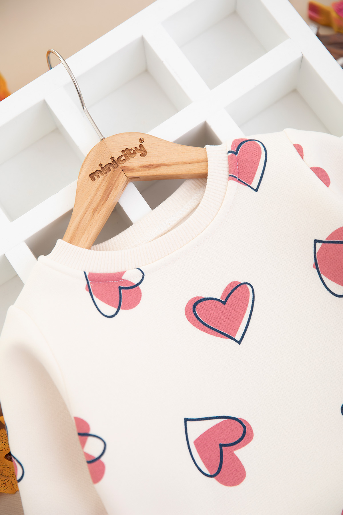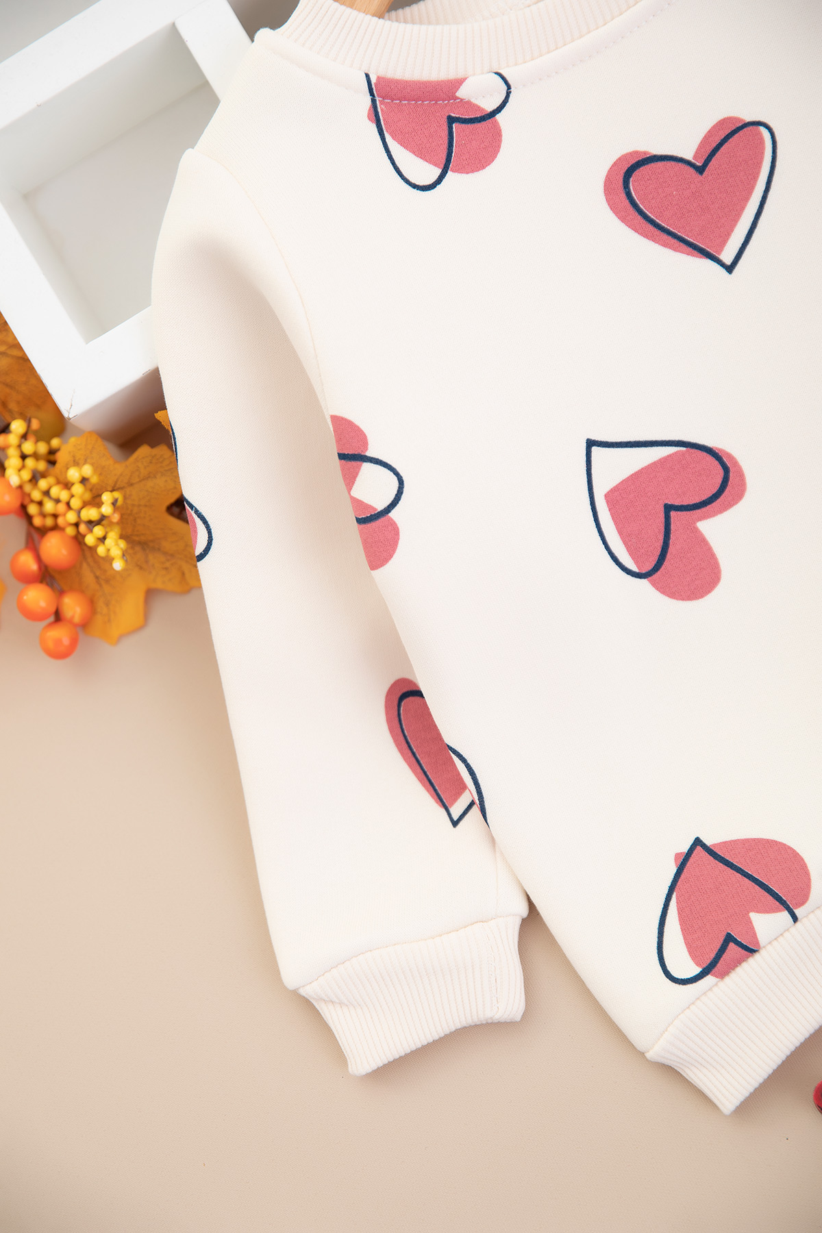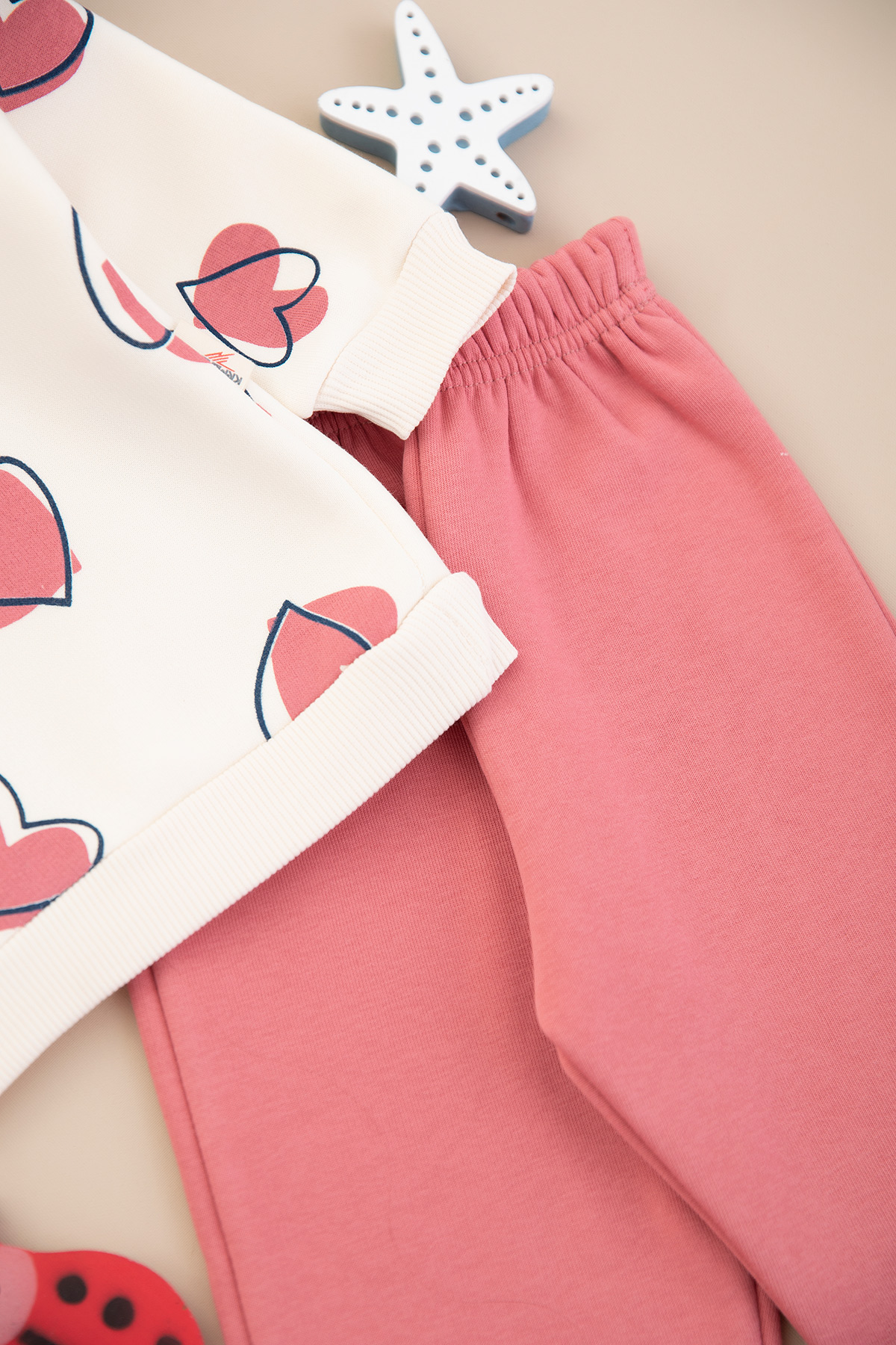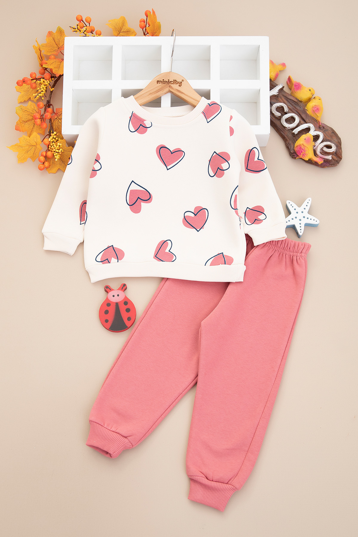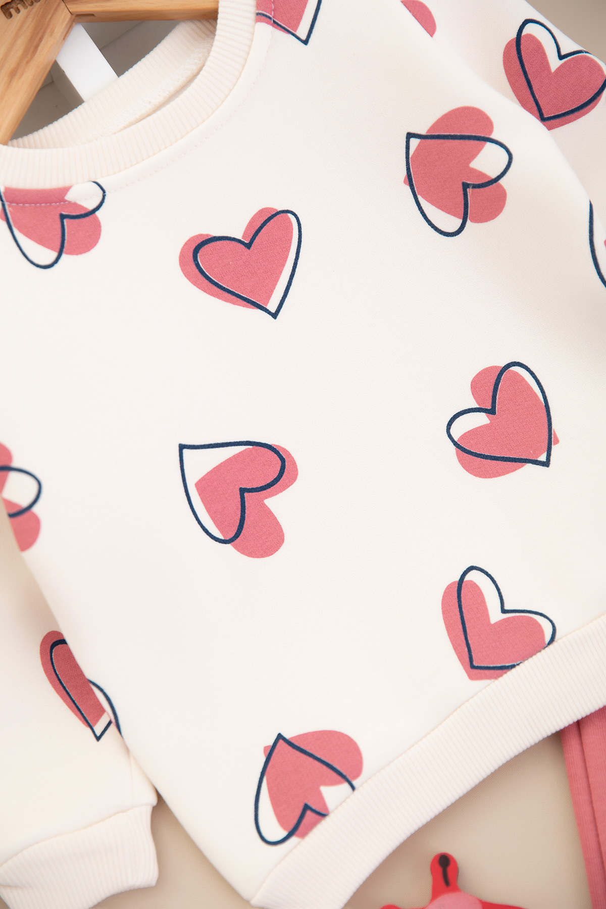 Kız Çocuk Kalp Baskılı Üçip Takım - 846 (2-5 Yaş)