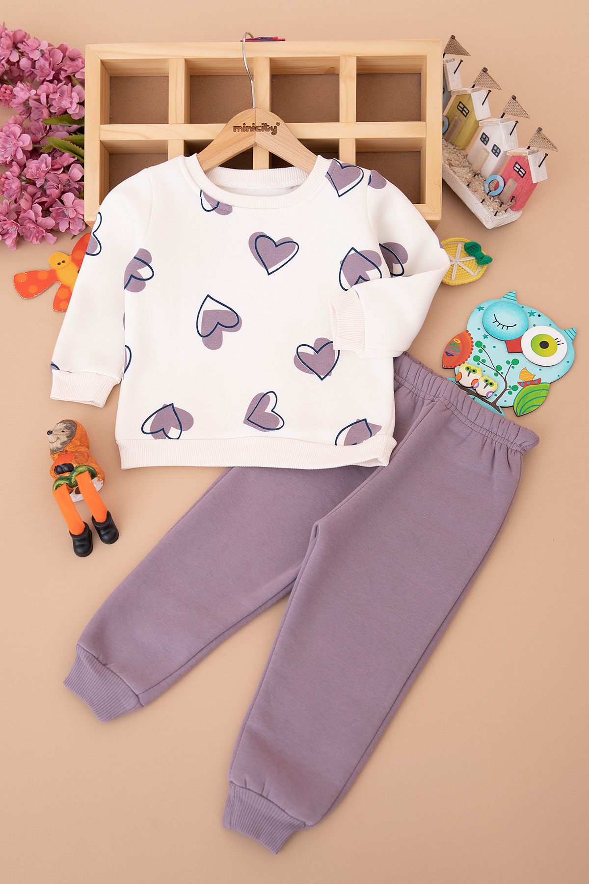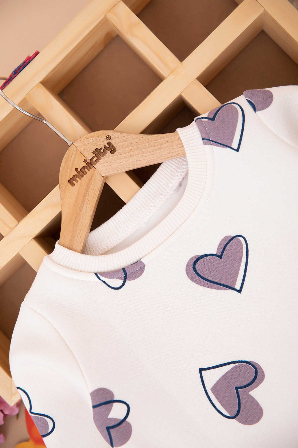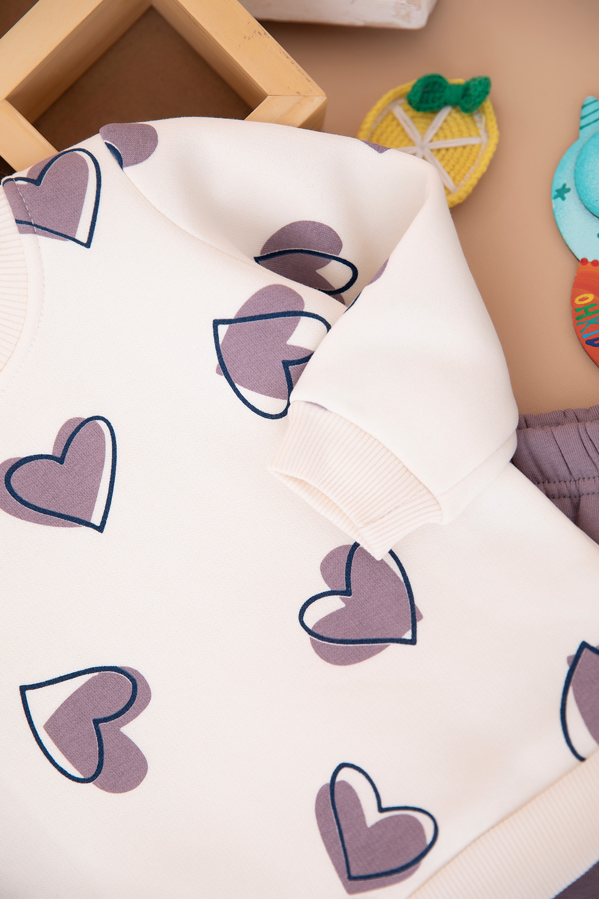 Kız Çocuk Kalp Baskılı Üçip Takım - 846 (2-5 Yaş)