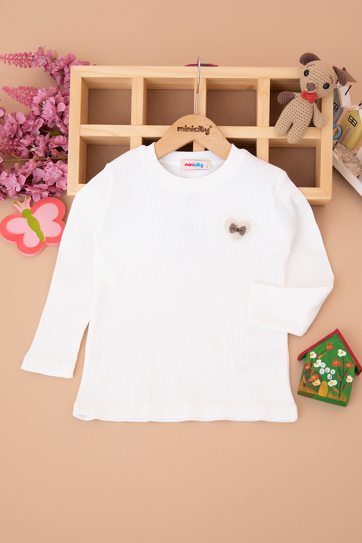 Kız Çocuk Kalp Broşlu Fitilli Body - 22350 (5-10 Yaş)