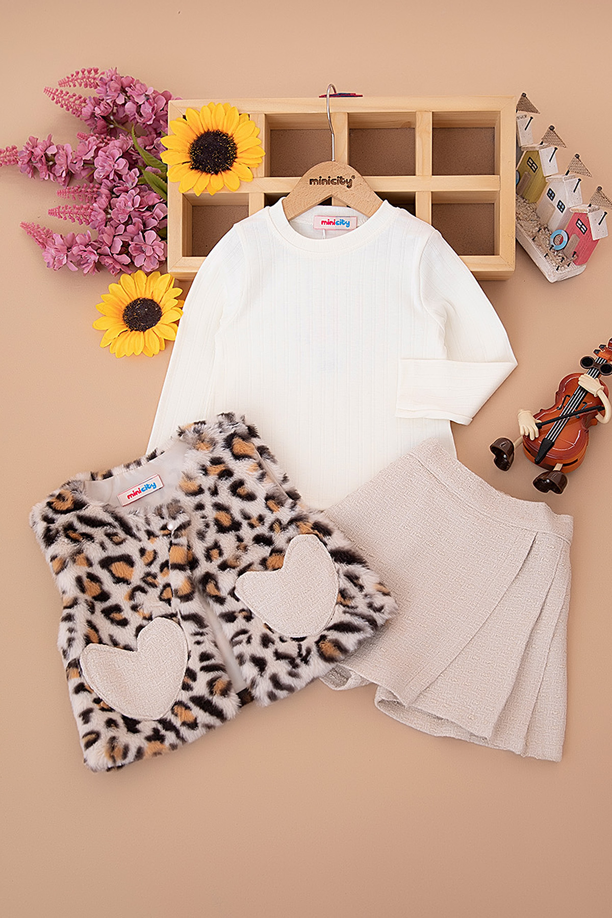 Kız Çocuk Kalp Cep Leopar Peluş Takım - 1749 (2-5 Yaş)