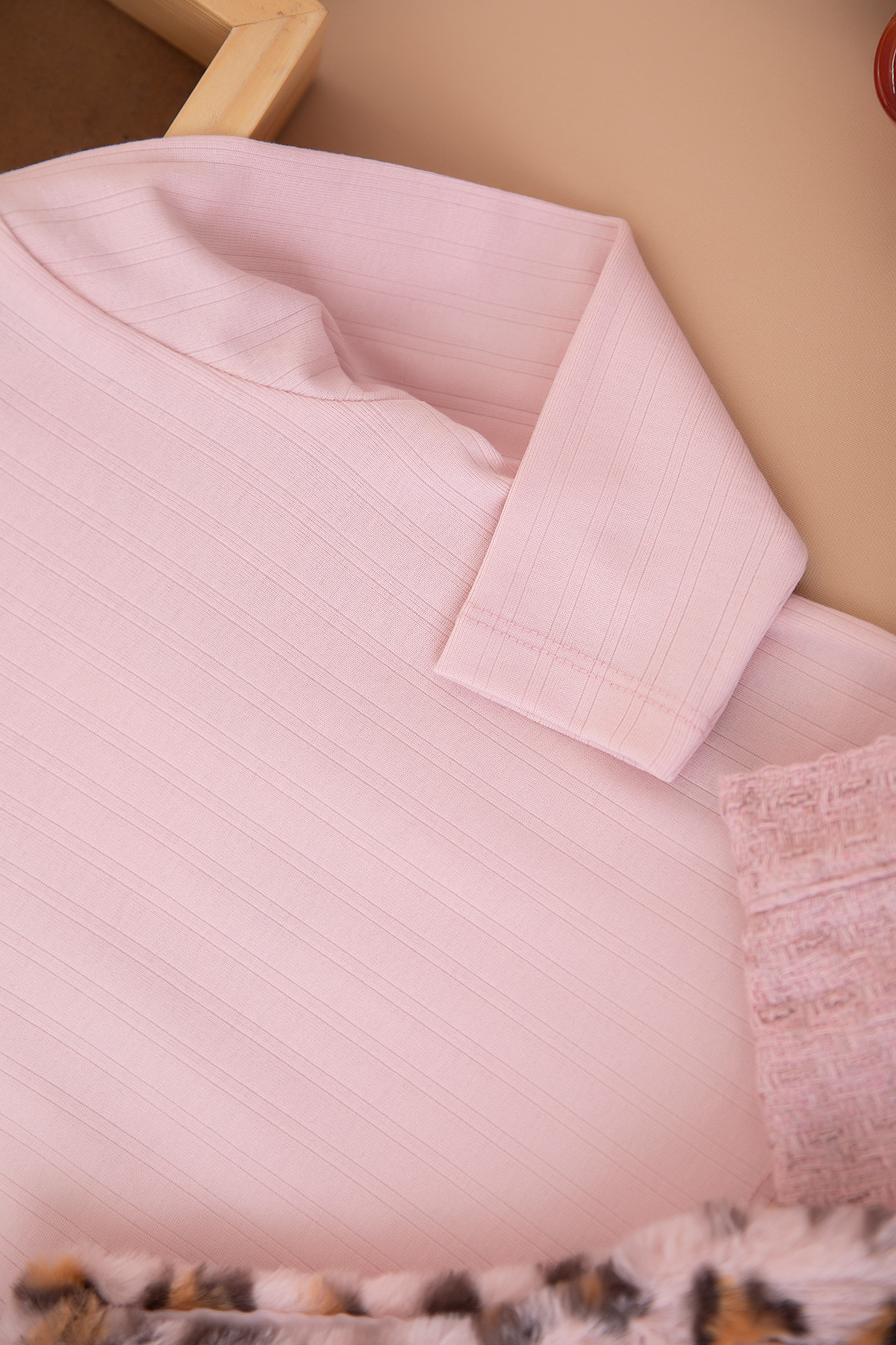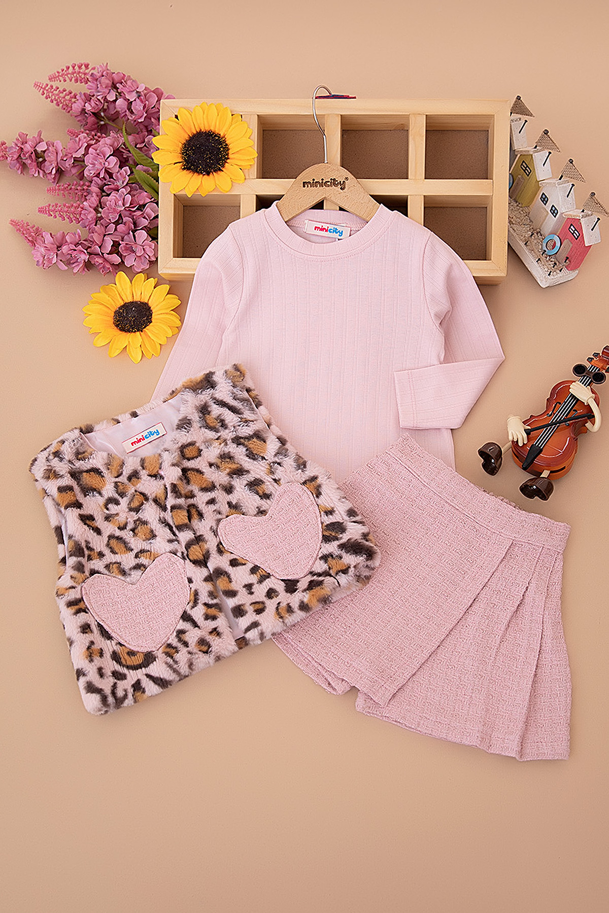 Kız Çocuk Kalp Cep Leopar Peluş Takım - 1749 (2-5 Yaş)