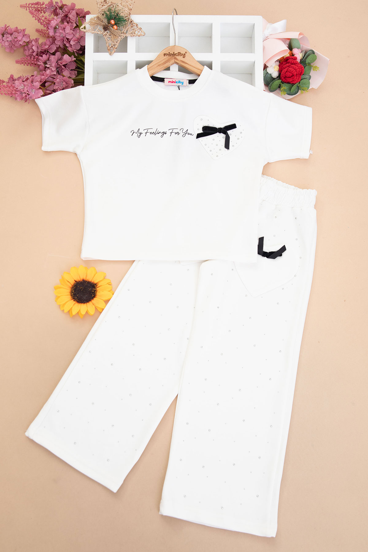 Kız Çocuk Kalp Cepli Taşlı Takım - 71138 (5-14 Yaş)