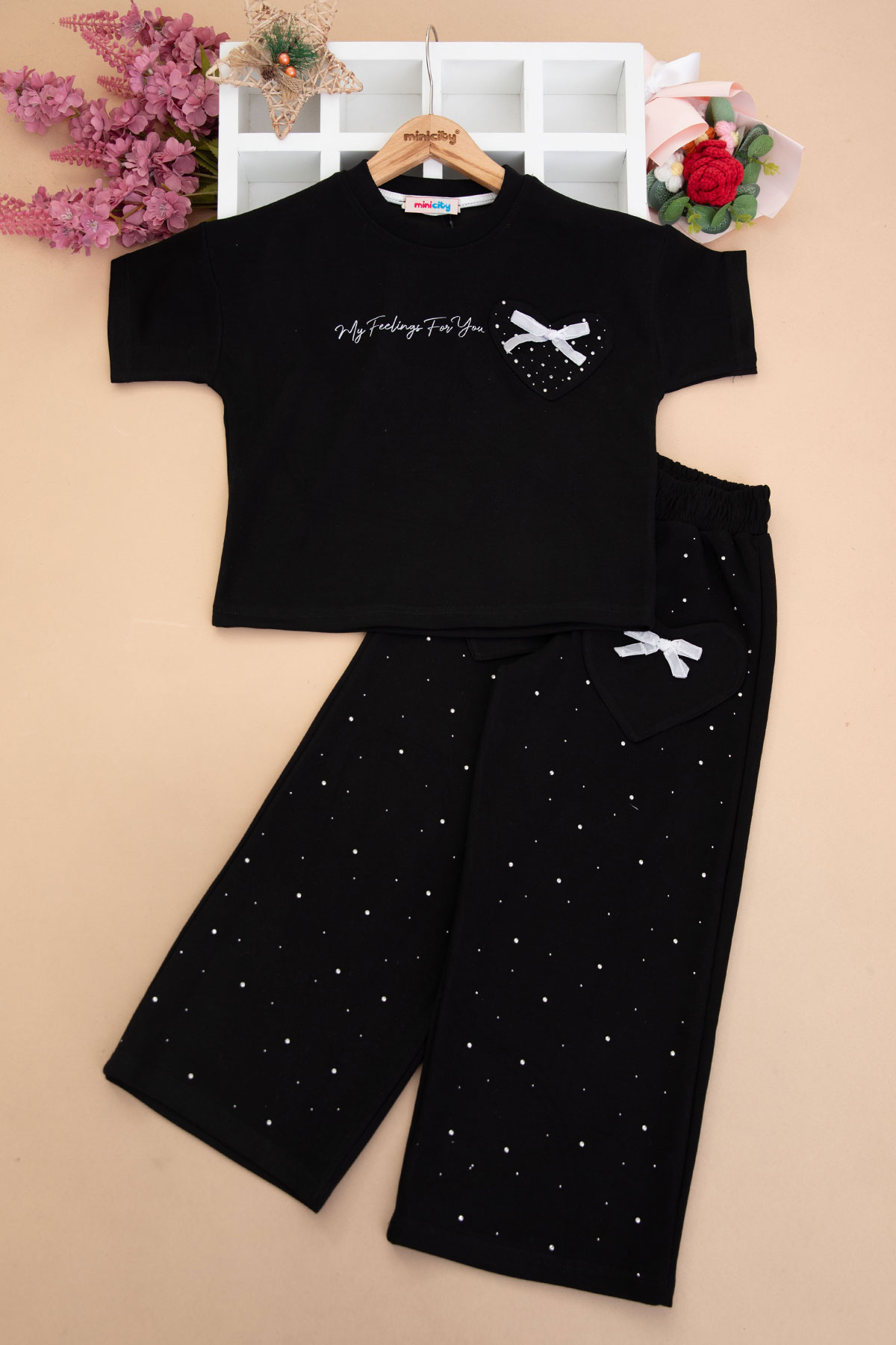 Kız Çocuk Kalp Cepli Taşlı Takım - 71138 (5-14 Yaş)