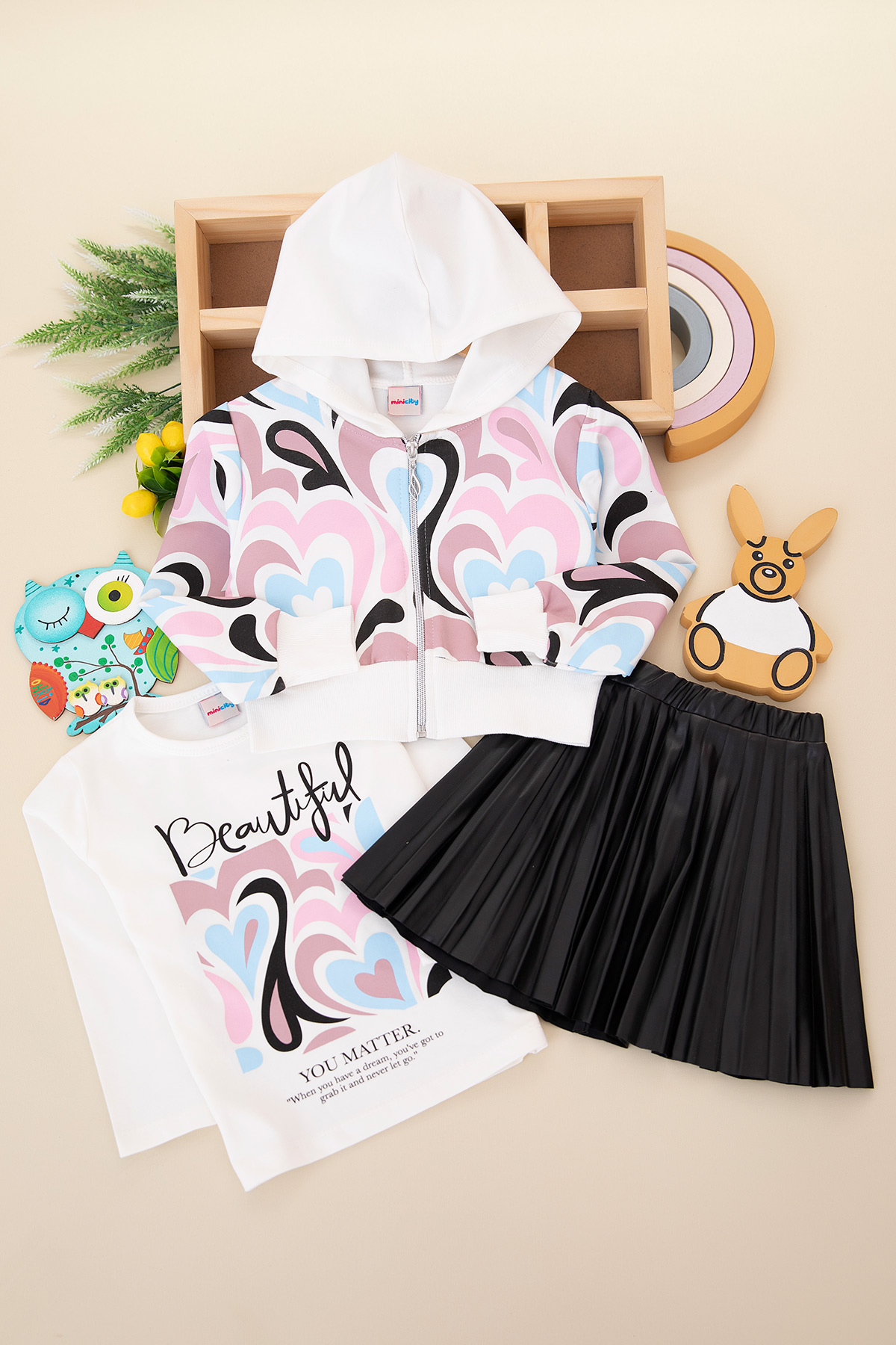 Kız Çocuk Kalp Desenli Etekli Takım - 6004 (3-10 Yaş)