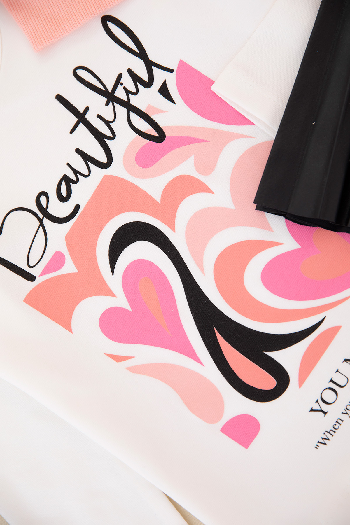 Kız Çocuk Kalp Desenli Etekli Takım - 6004 (3-10 Yaş)