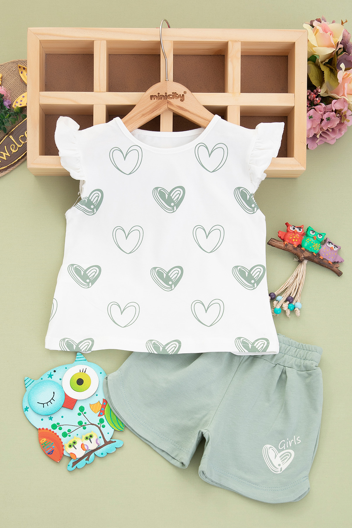 Kız Çocuk Kalp Girls Baskılı Şortlu Takım - 631 (2-5 Yaş)