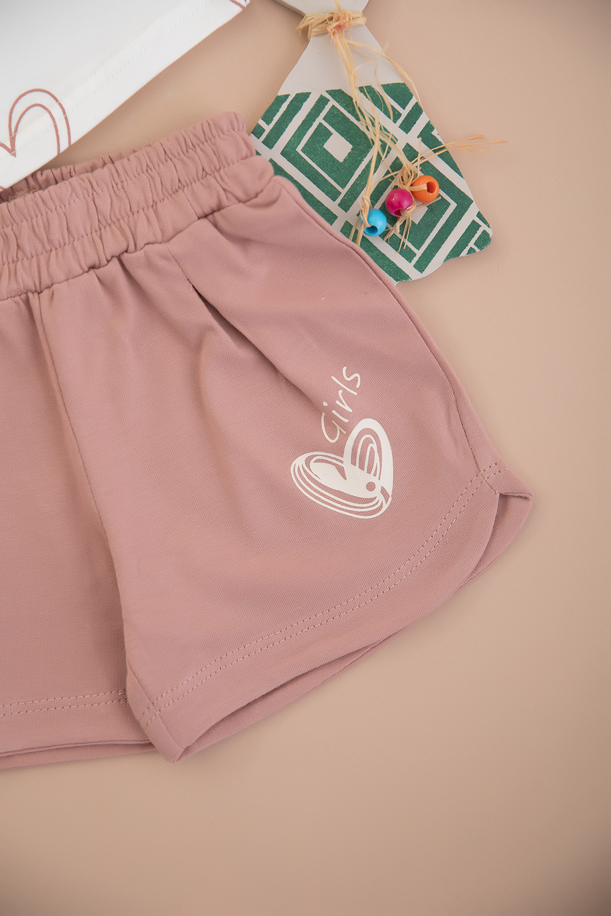 Kız Çocuk Kalp Girls Baskılı Şortlu Takım - 631 (2-5 Yaş)