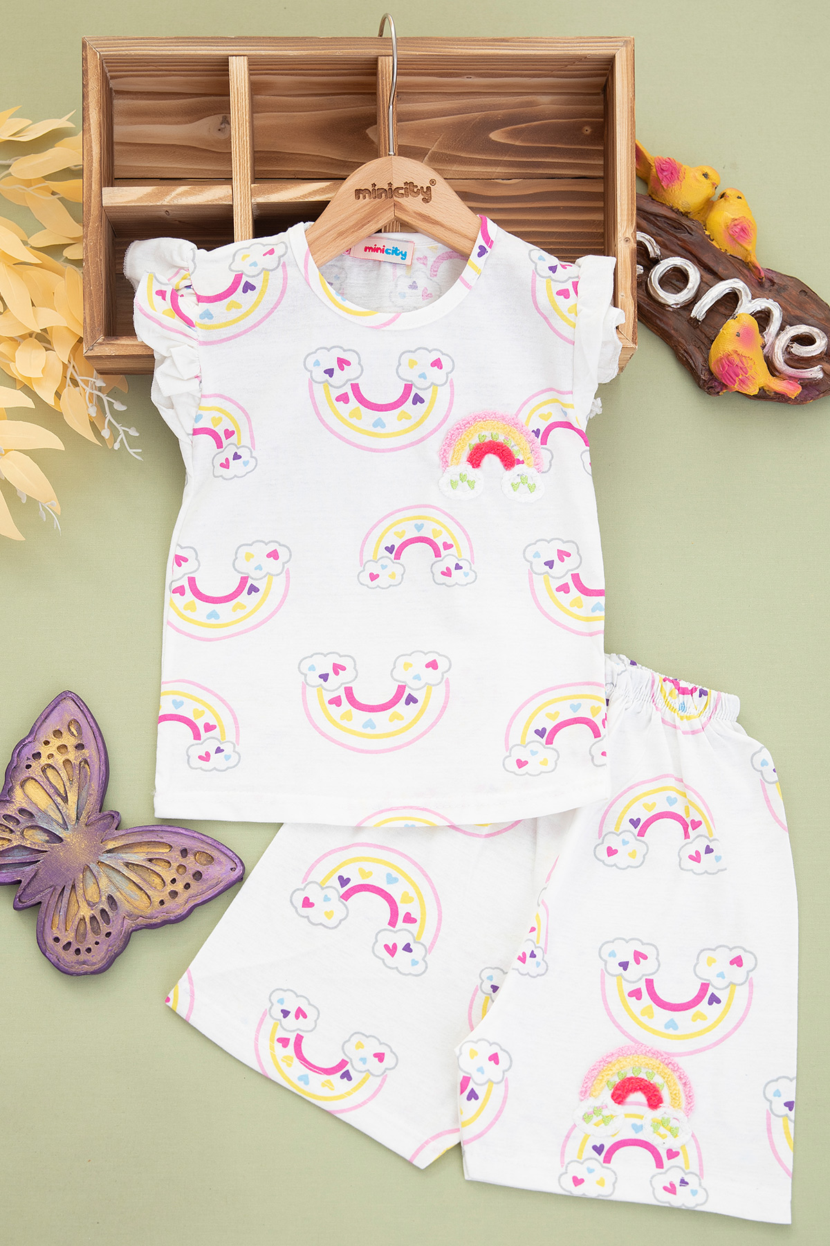 Kız Çocuk Kalp Gökkuşağı Şortlu Takım (2-5 Yaş)