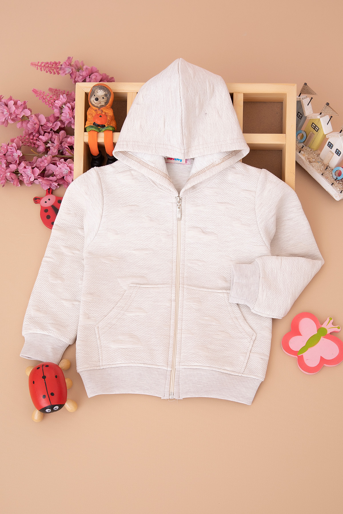 Kız Çocuk Kalp Kabartmalı Kapüşon Hırka - 60040 (3-12 Yaş)