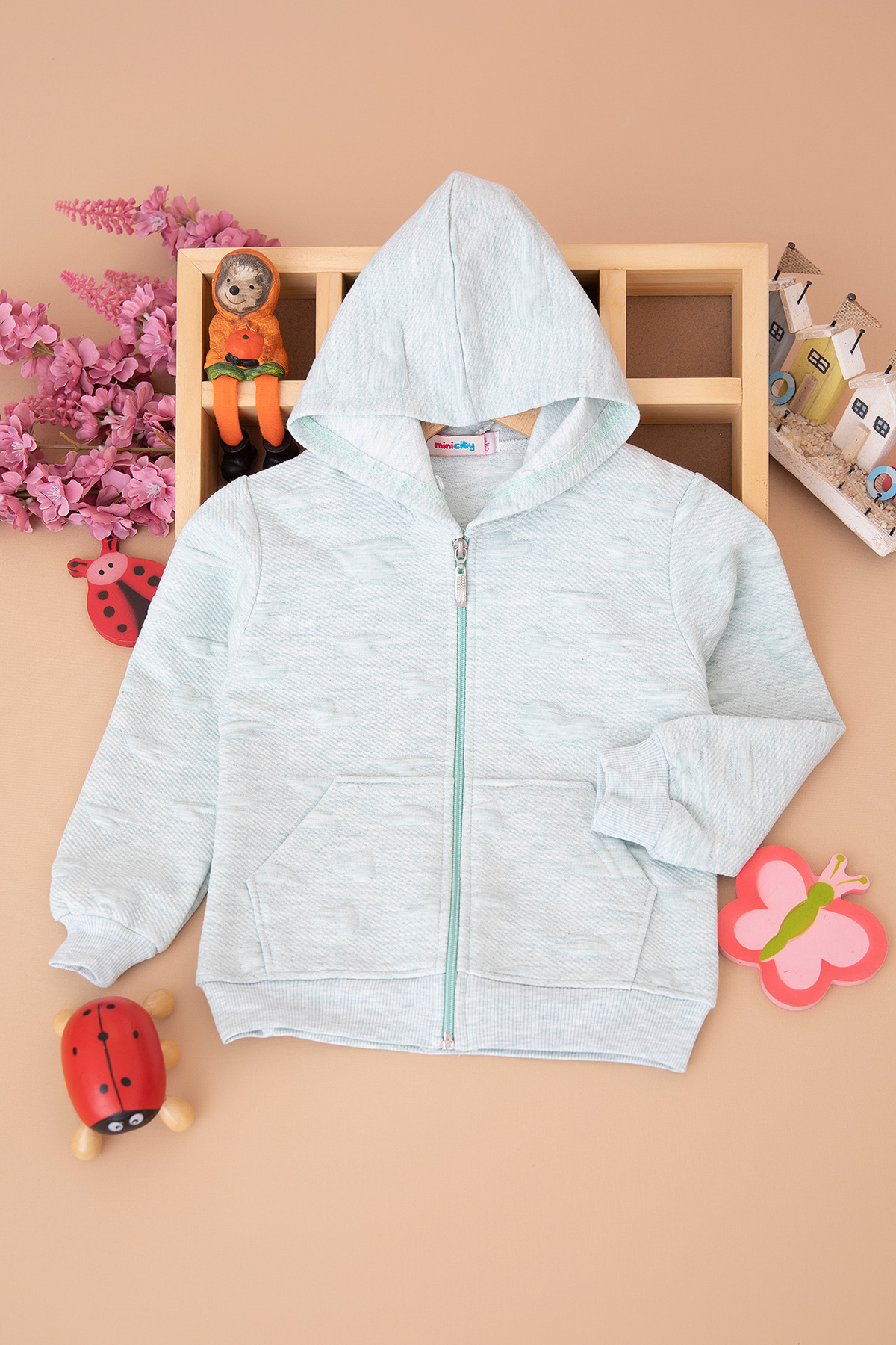 Kız Çocuk Kalp Kabartmalı Kapüşon Hırka - 60040 (3-12 Yaş)