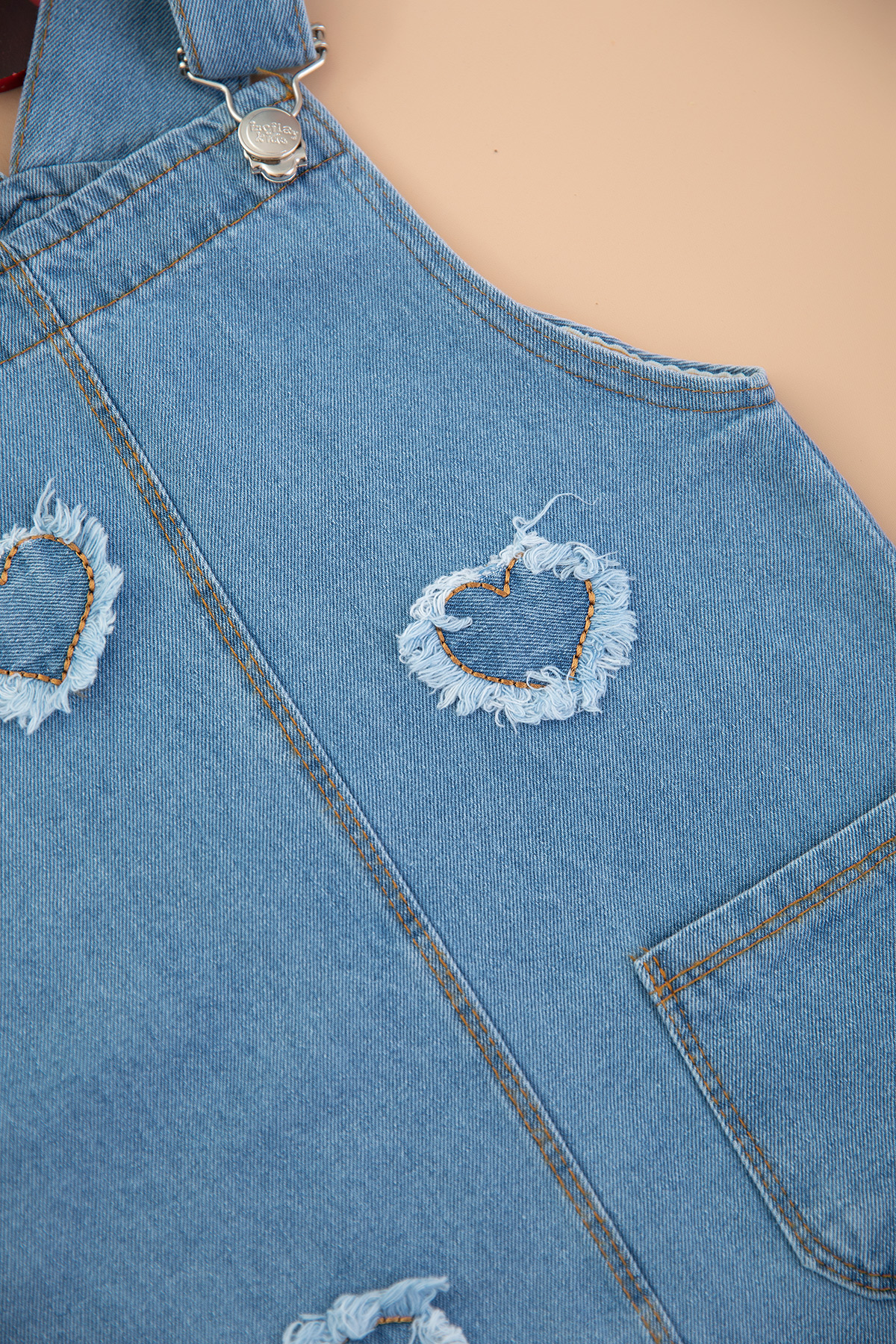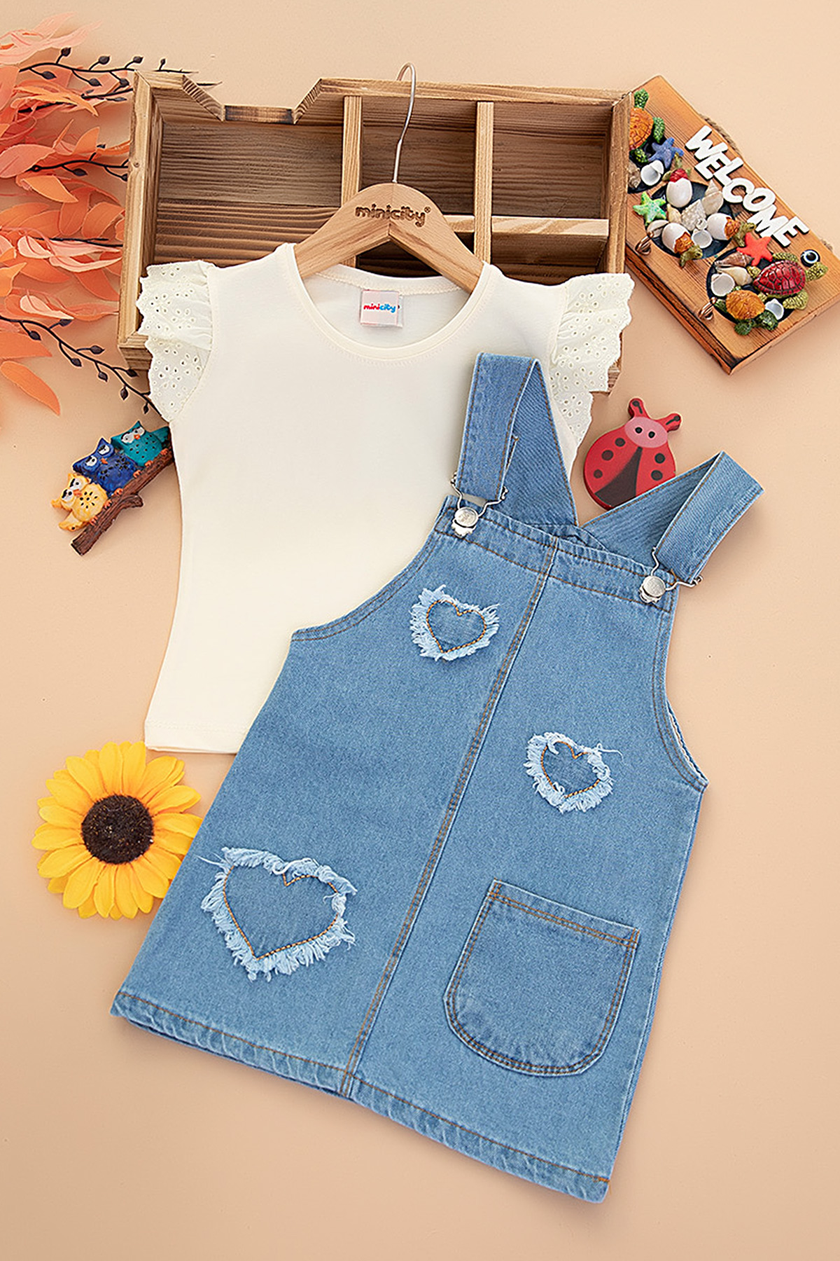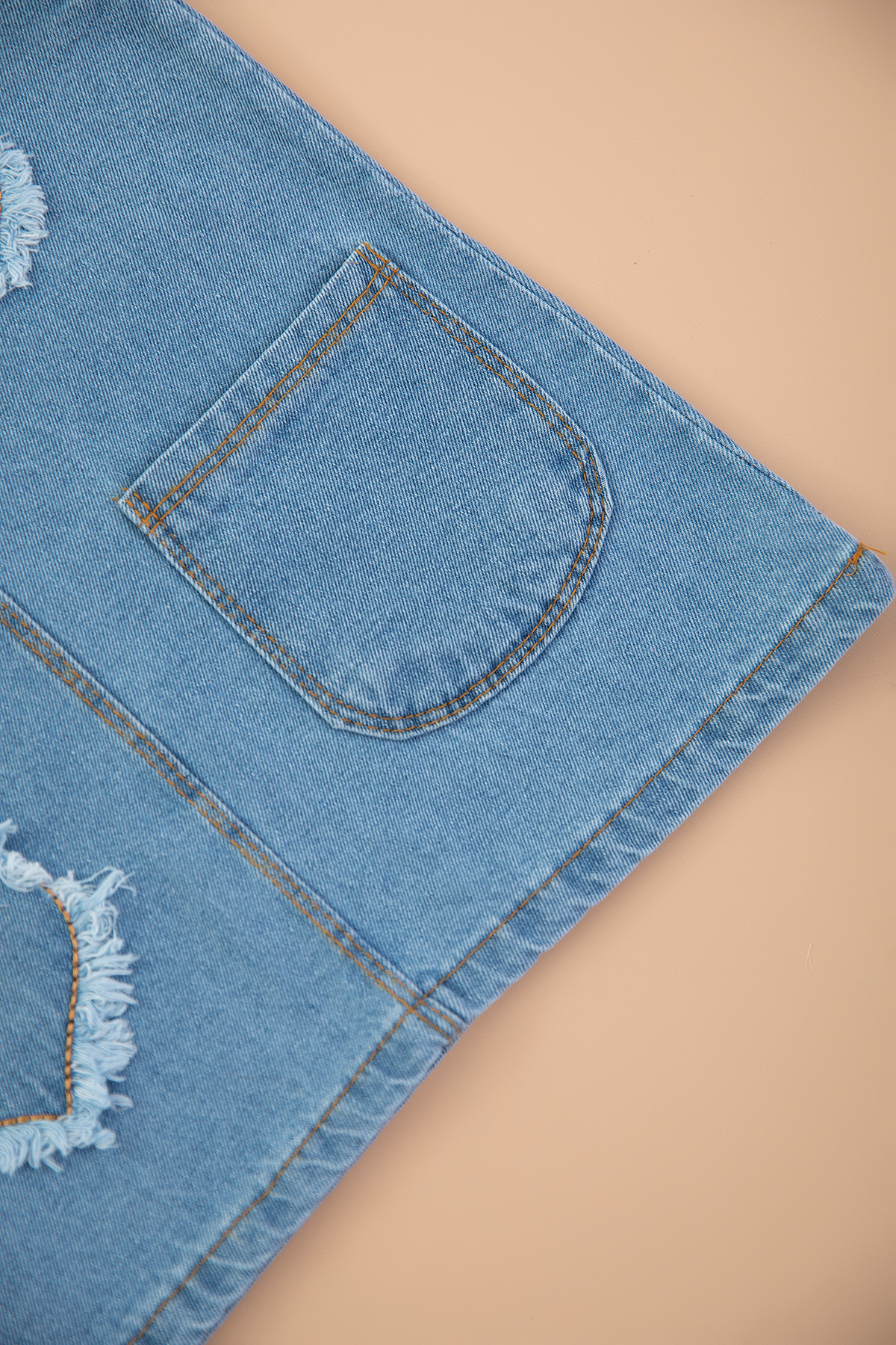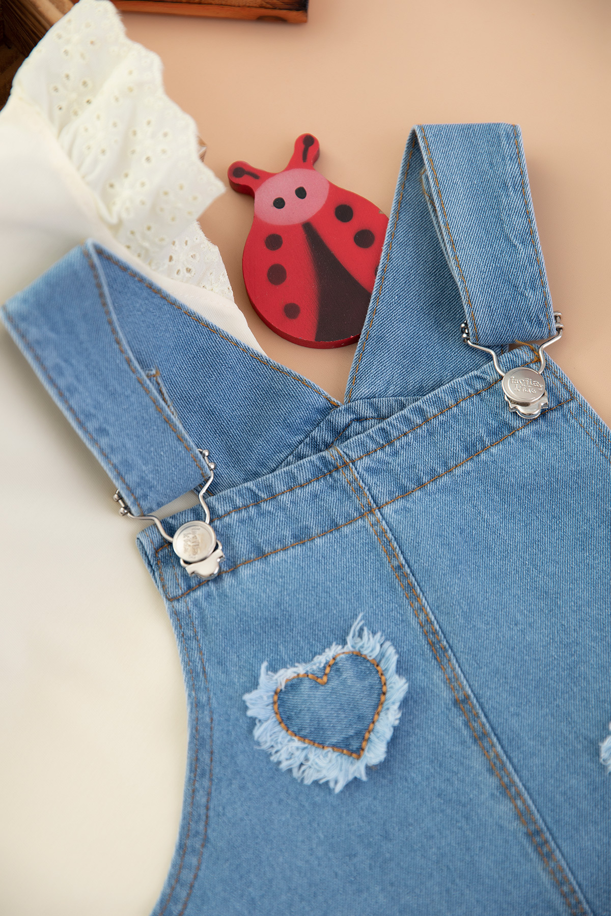 Kız Çocuk Kalp Nakışlı Badili Kot Jile - 2518 (3-7 Yaş)