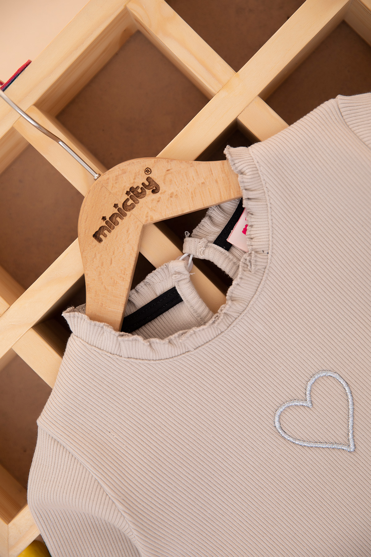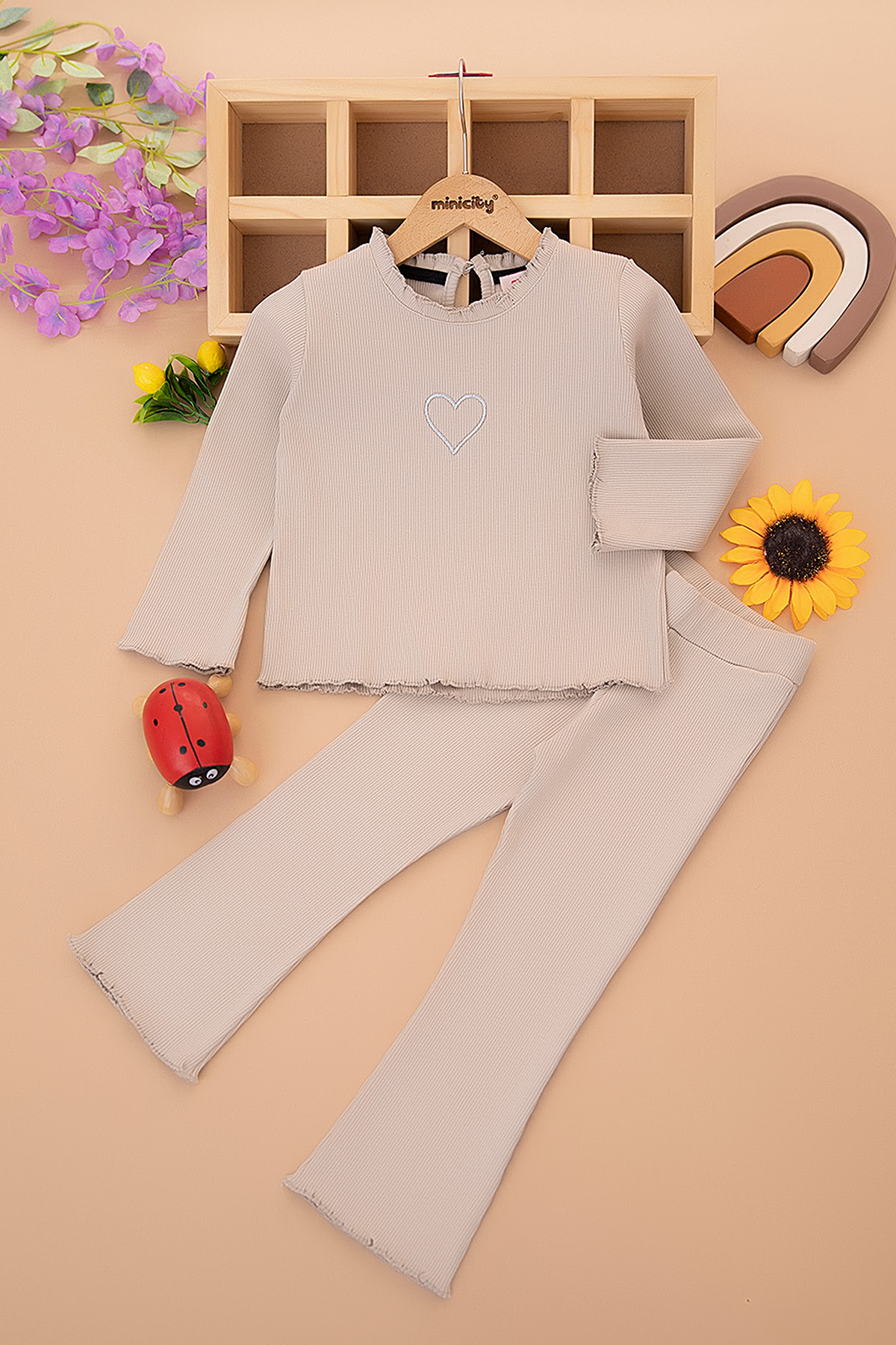 Kız Çocuk Kalp Nakışlı Fırfır Yaka Takım - 33101 (4-8 Yaş)