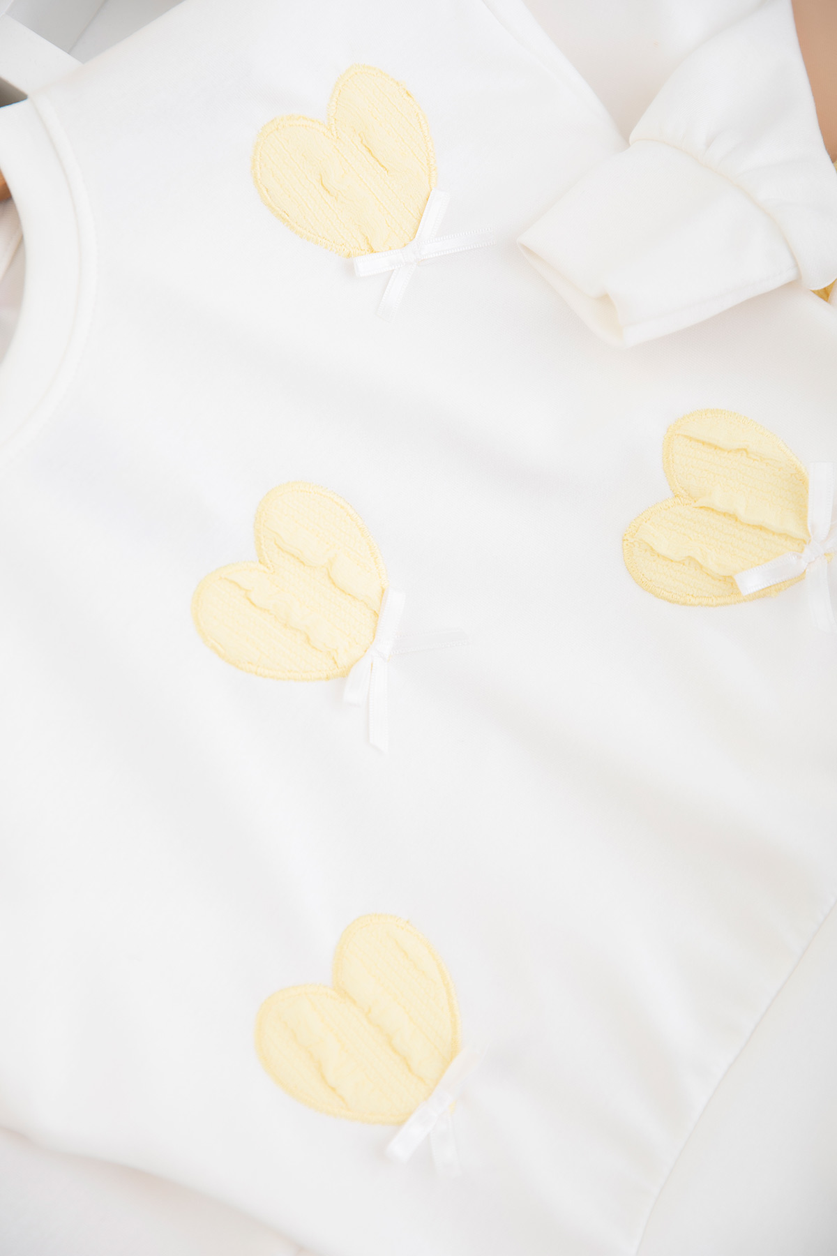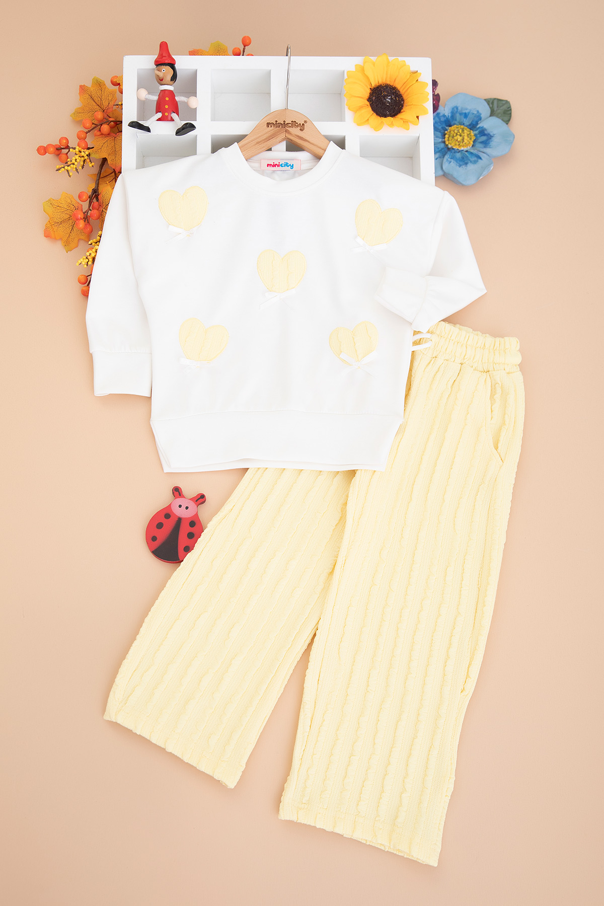 Kız Çocuk Kalp Nakışlı Fiyonklu Takım - 5123 (4-11 Yaş)