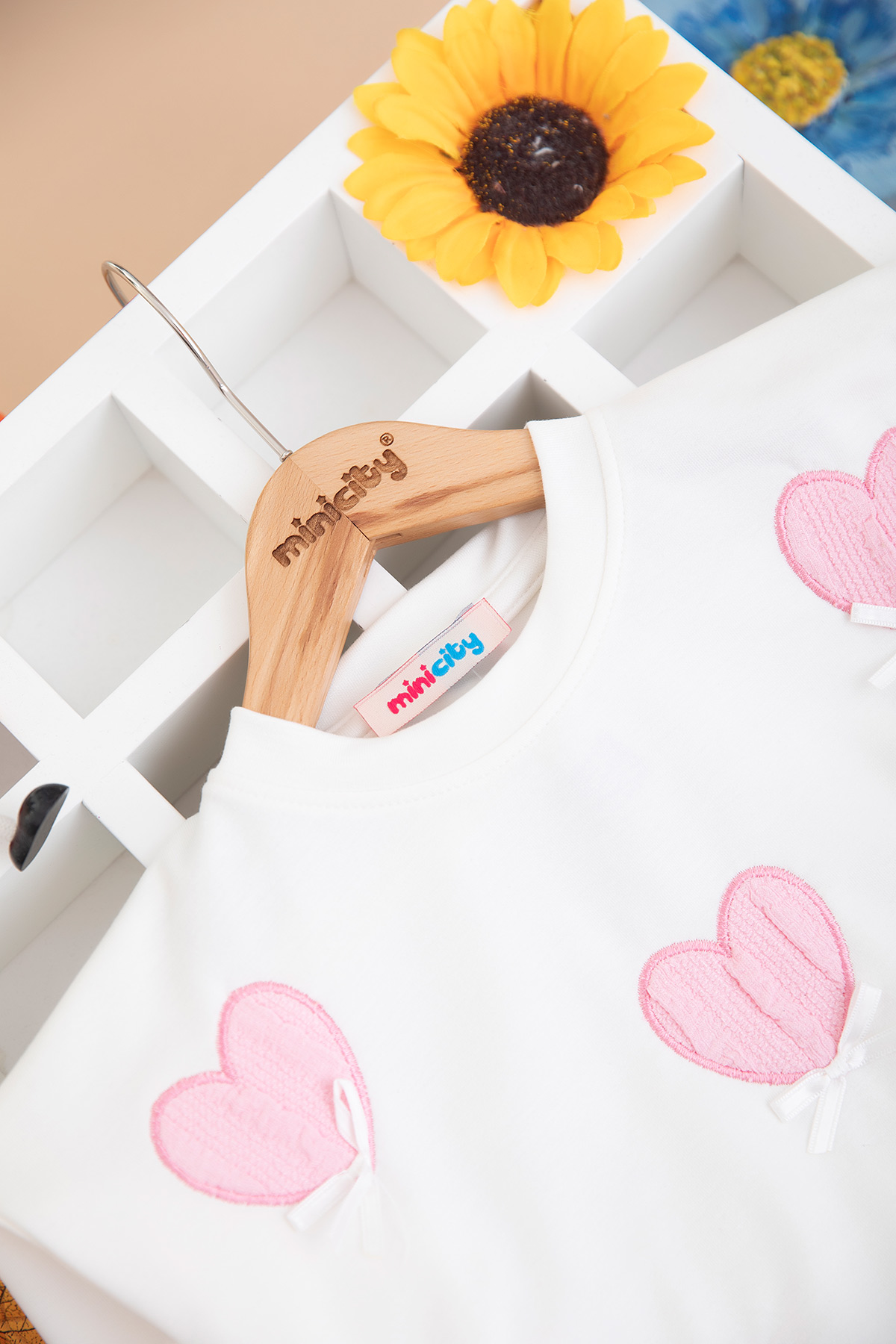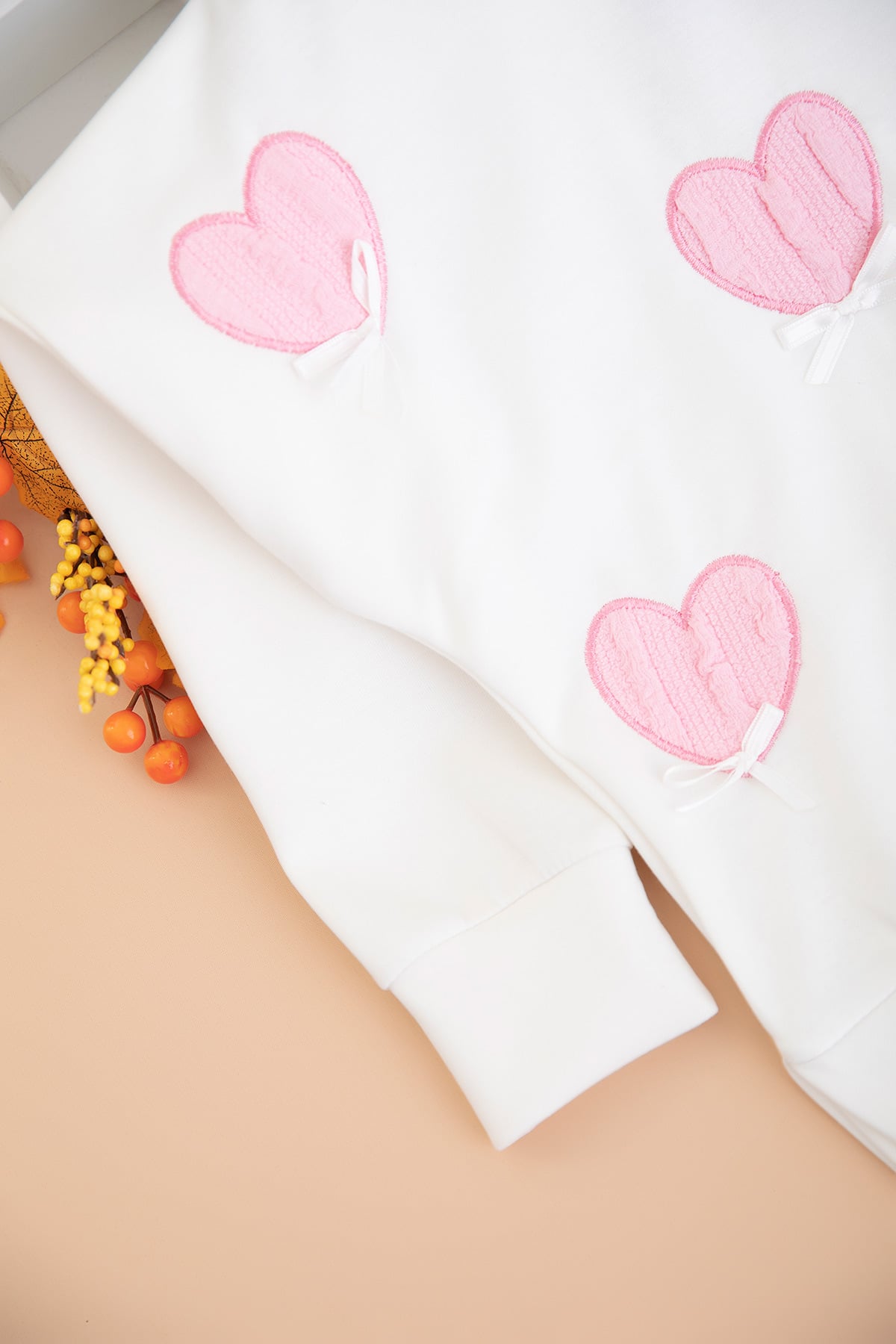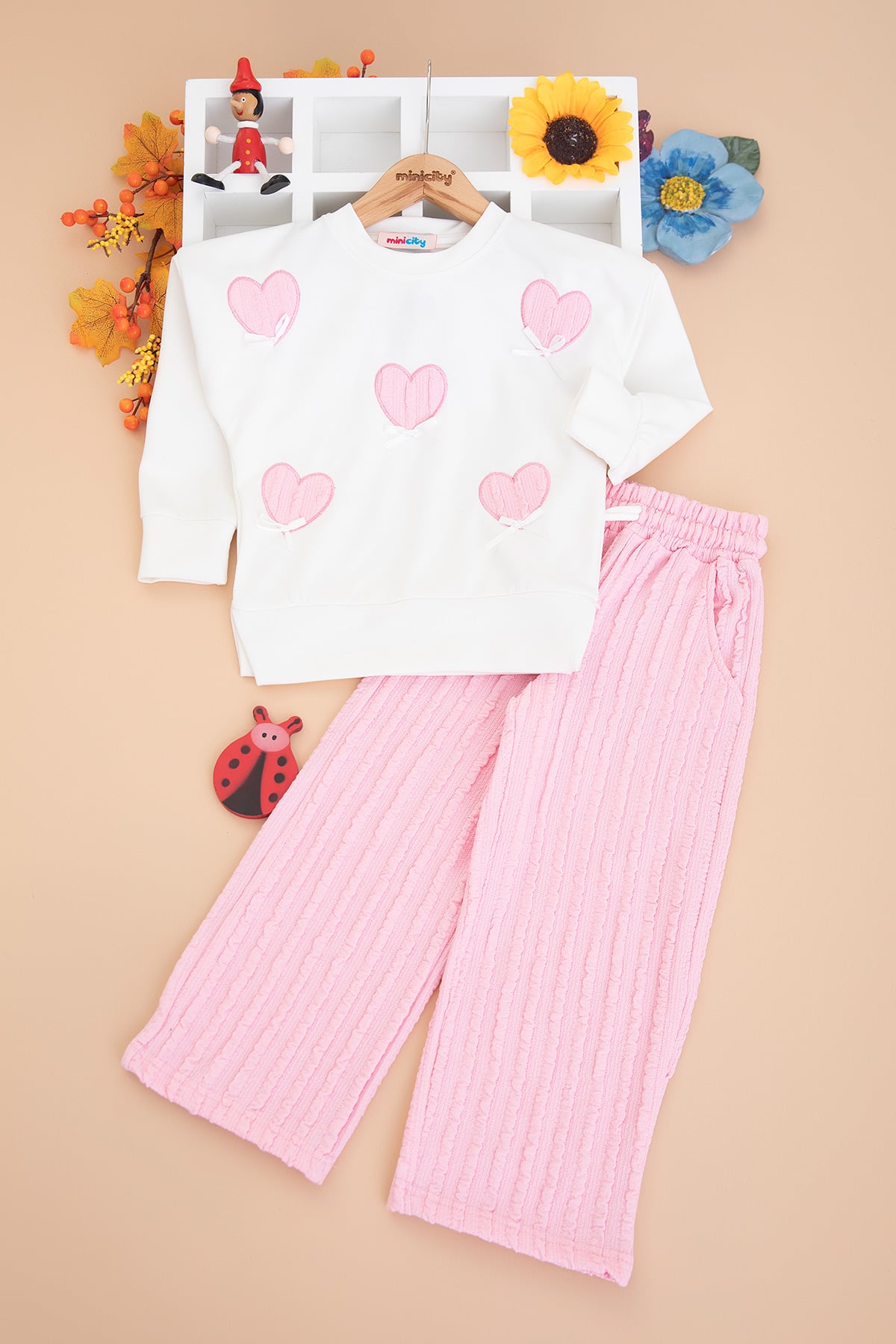 Kız Çocuk Kalp Nakışlı Fiyonklu Takım - 5123 (4-11 Yaş)
