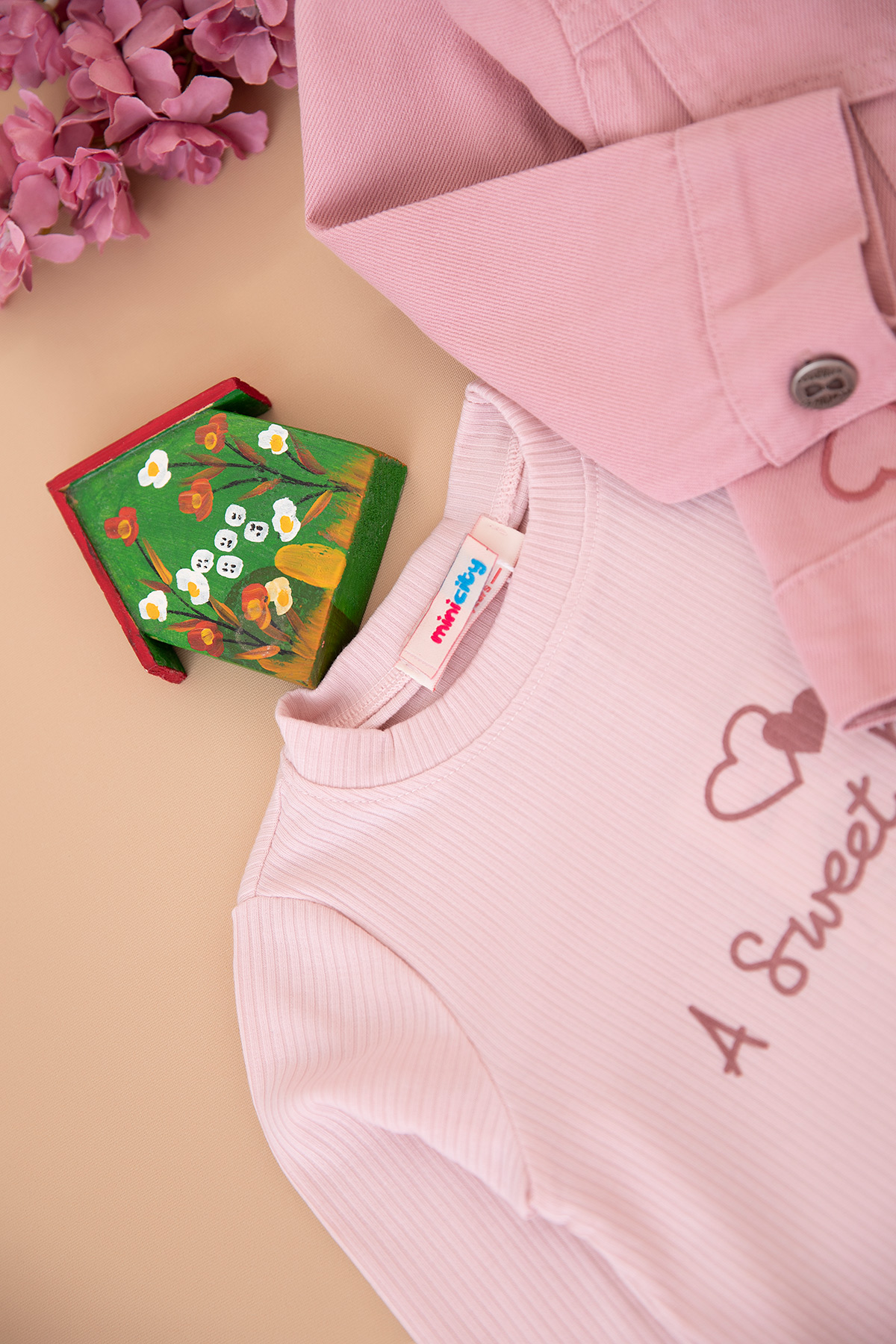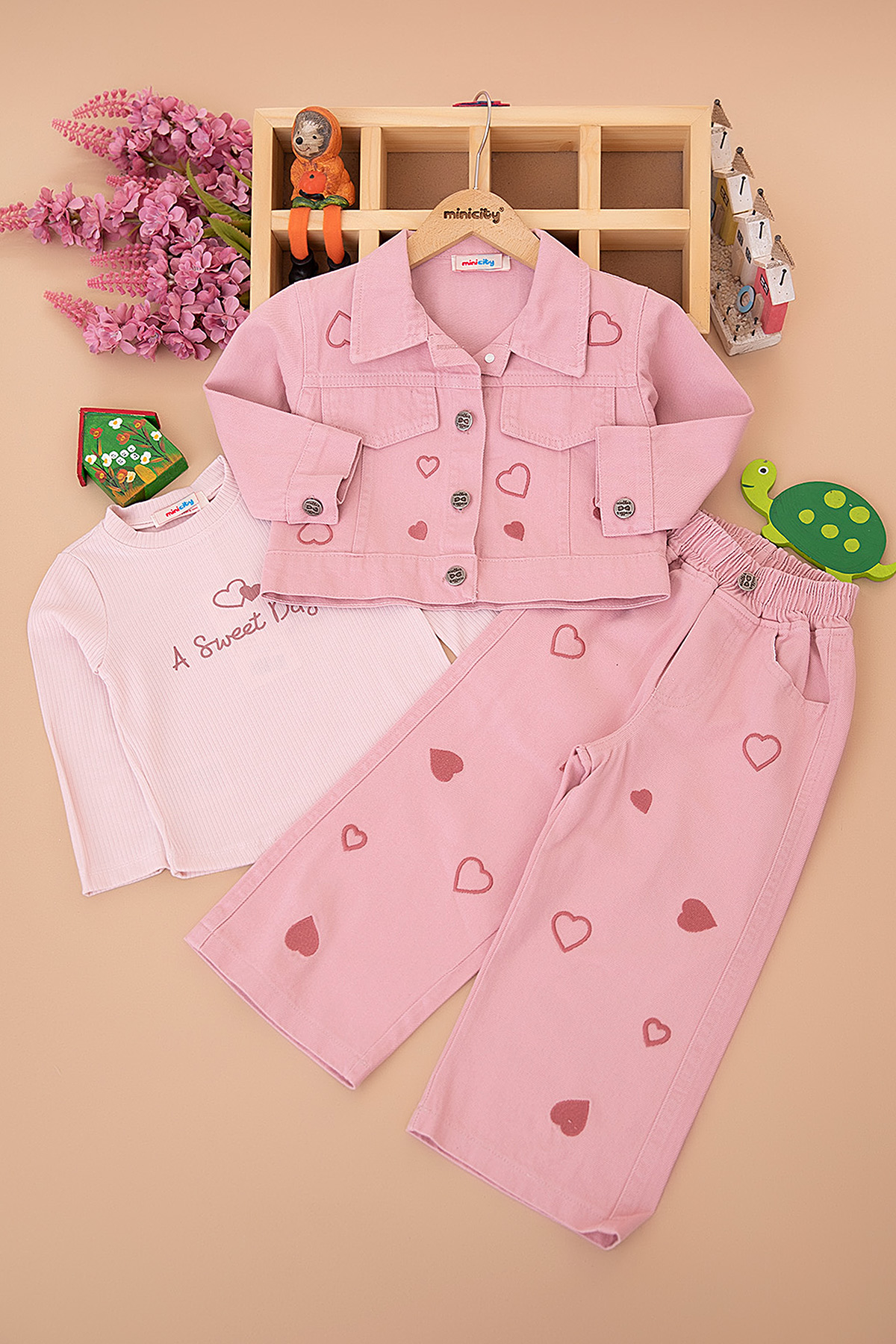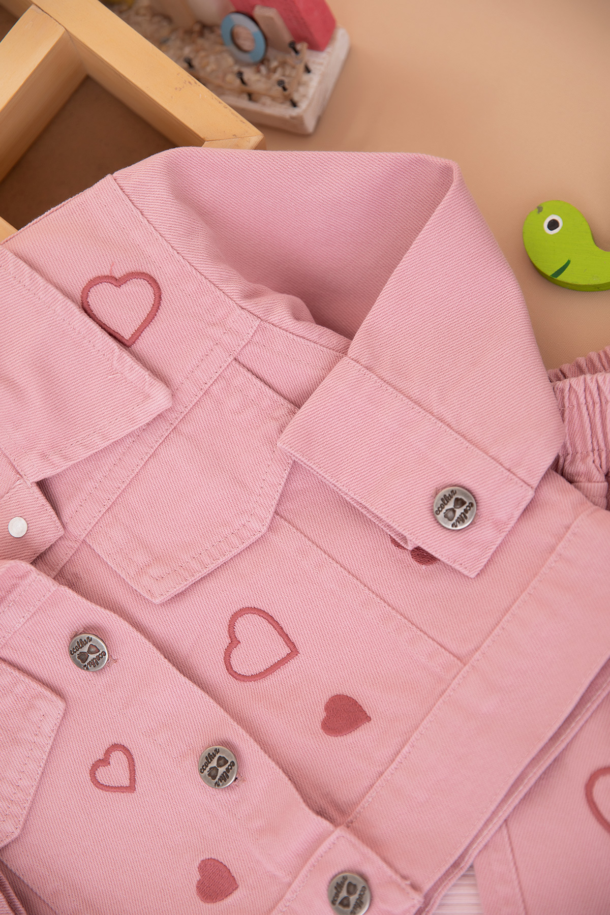 Kız Çocuk Kalp Nakışlı Gabardin Takım - 1720 (2-5 Yaş)