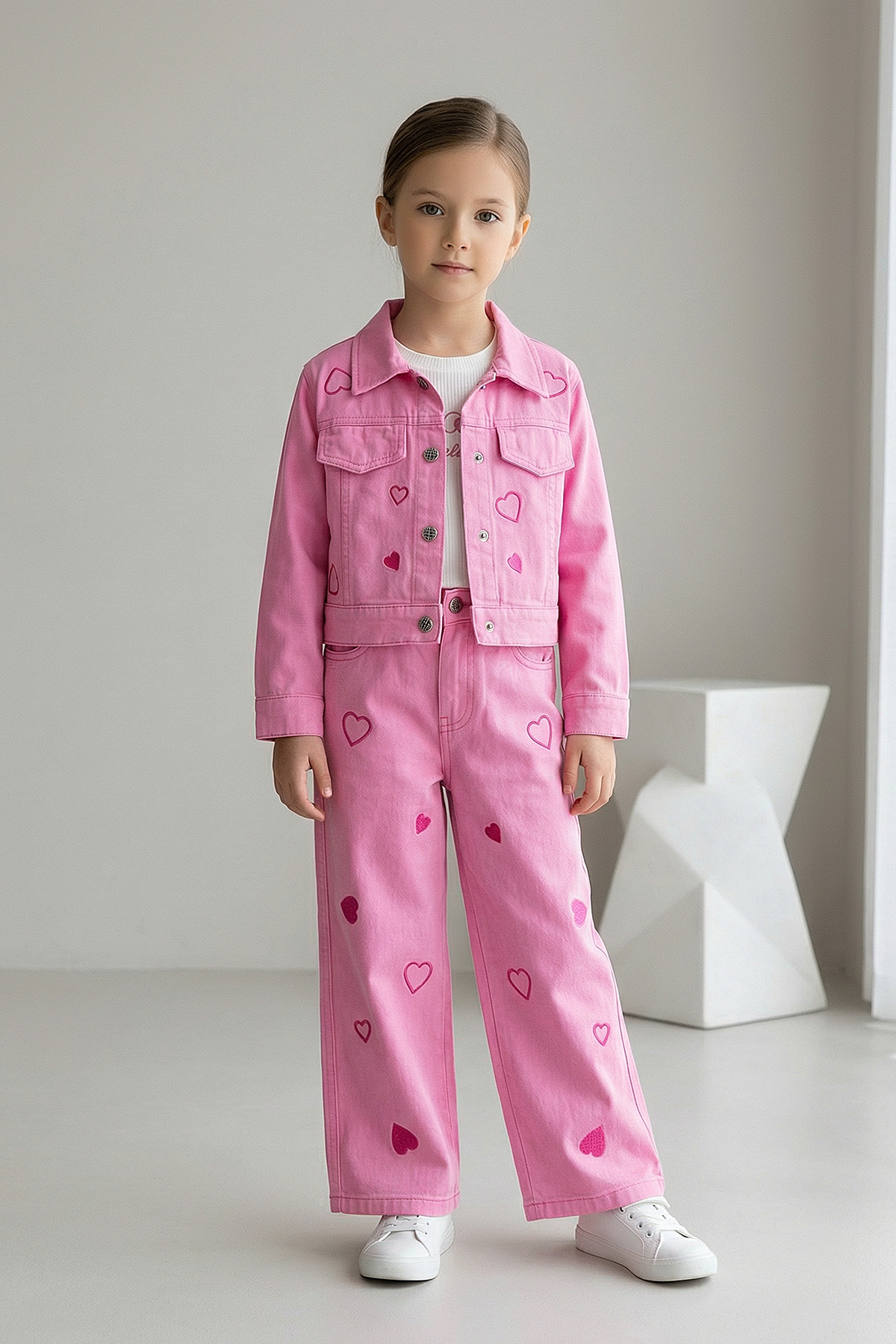 Kız Çocuk Kalp Nakışlı Gabardin Takım - 1720 (2-5 Yaş)