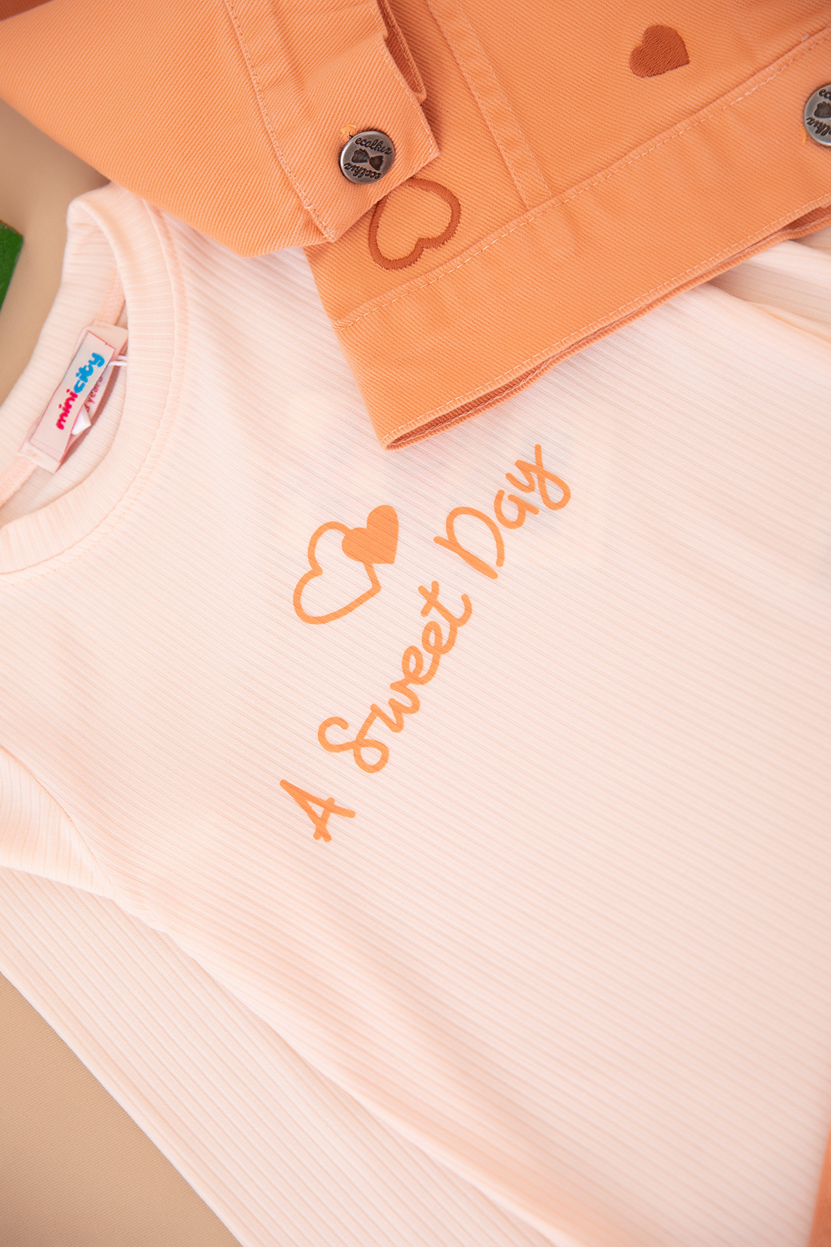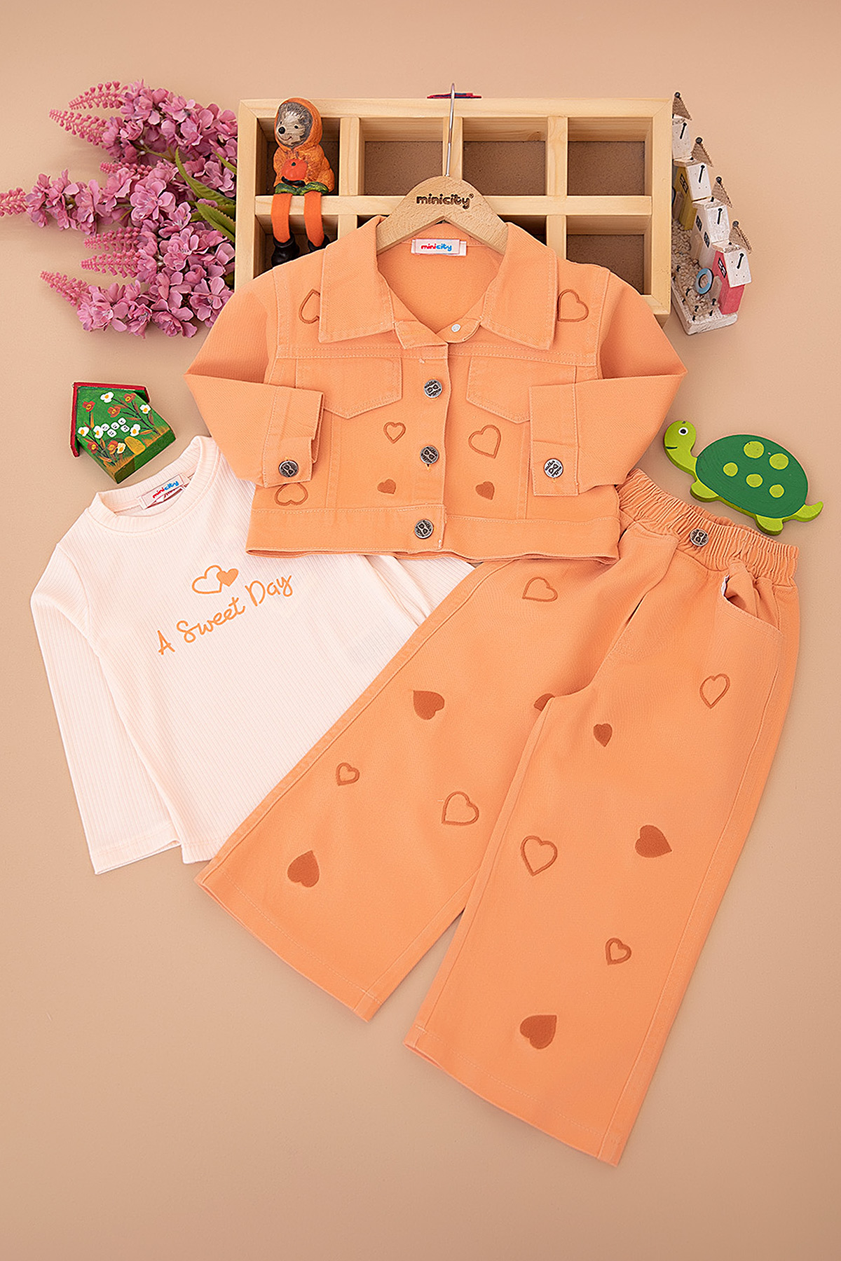 Kız Çocuk Kalp Nakışlı Gabardin Takım - 1720 (2-5 Yaş)