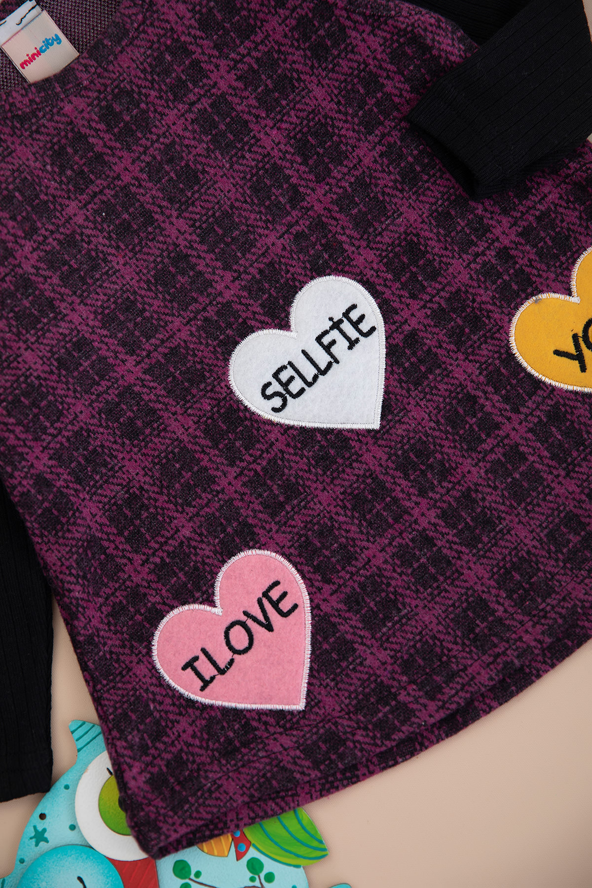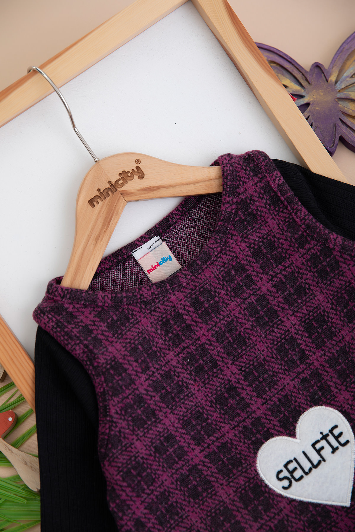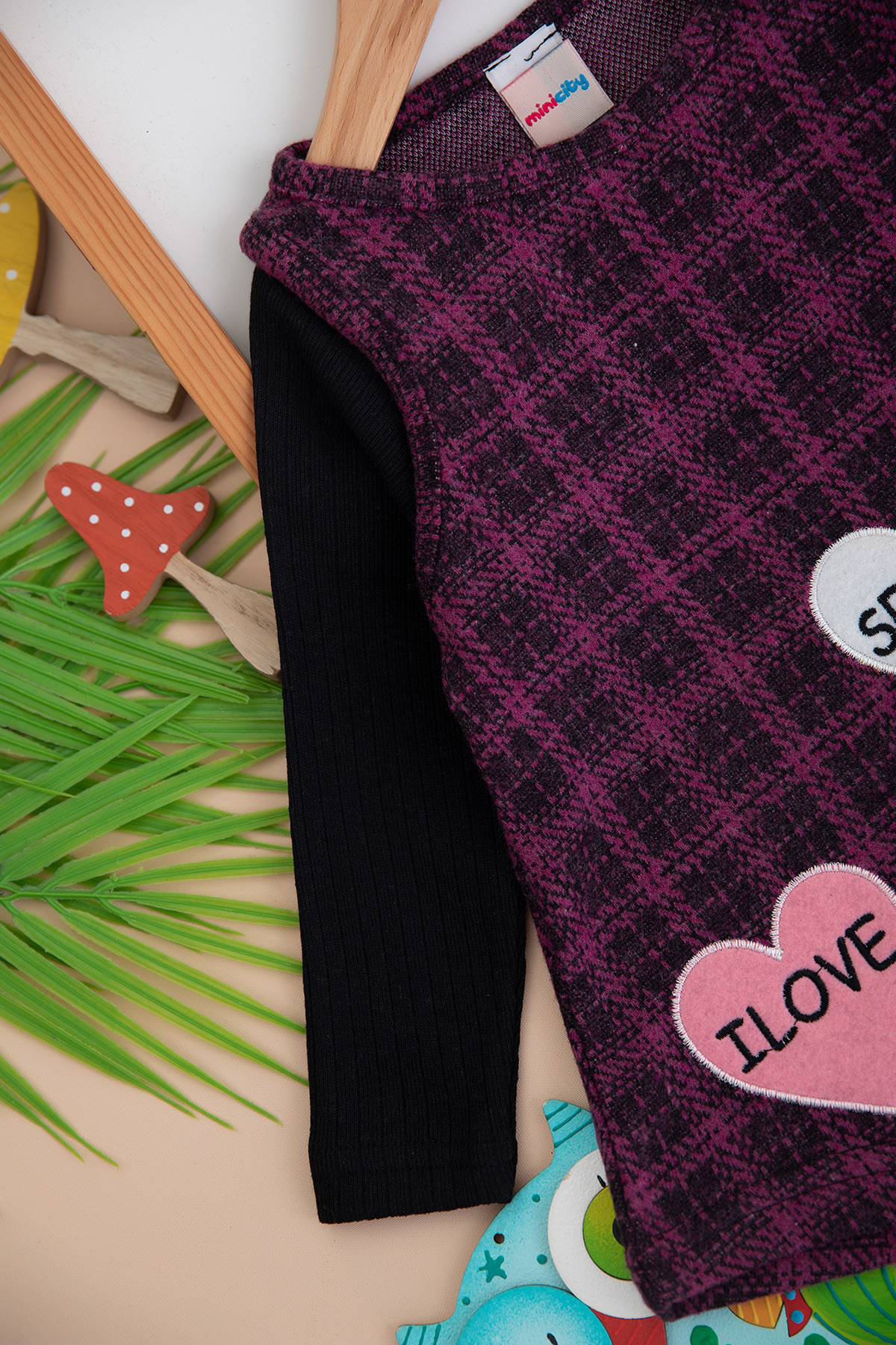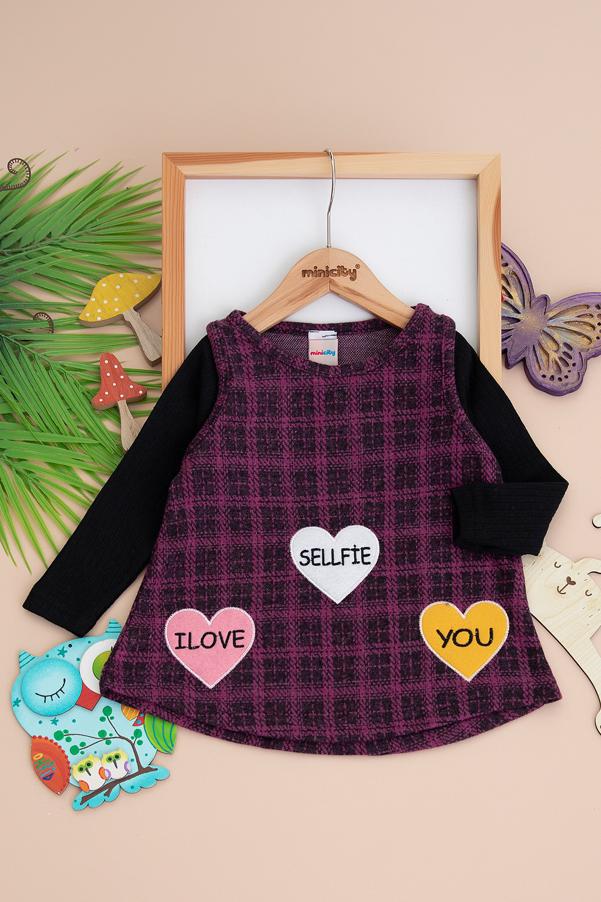 Kız Çocuk Kalp Nakışlı Oduncu Jile Elbise - 0138 (1-5 Yaş)