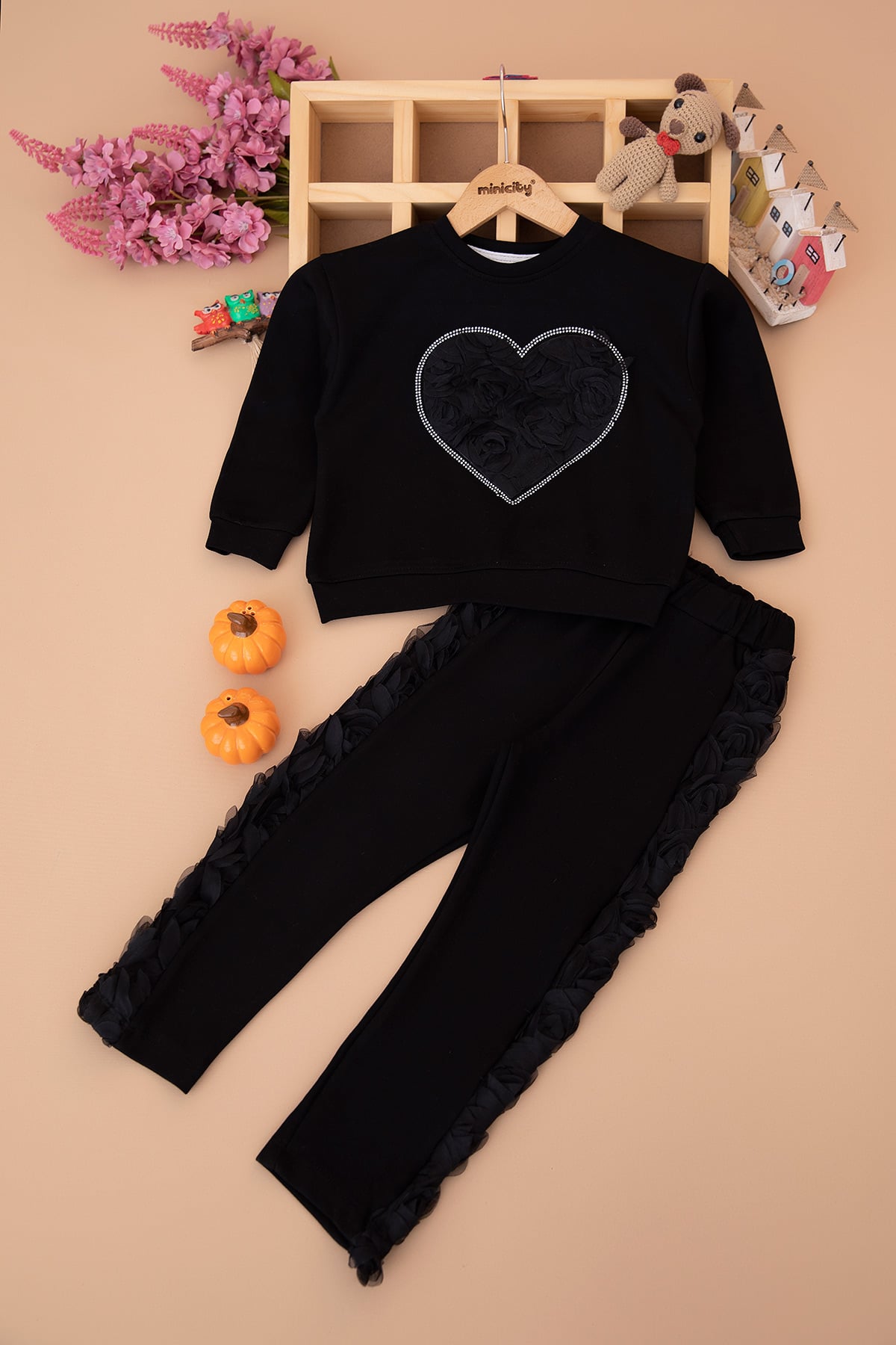 Kız Çocuk Kalp Nakışlı Oysho Takım - 2062 (3-8 Yaş)