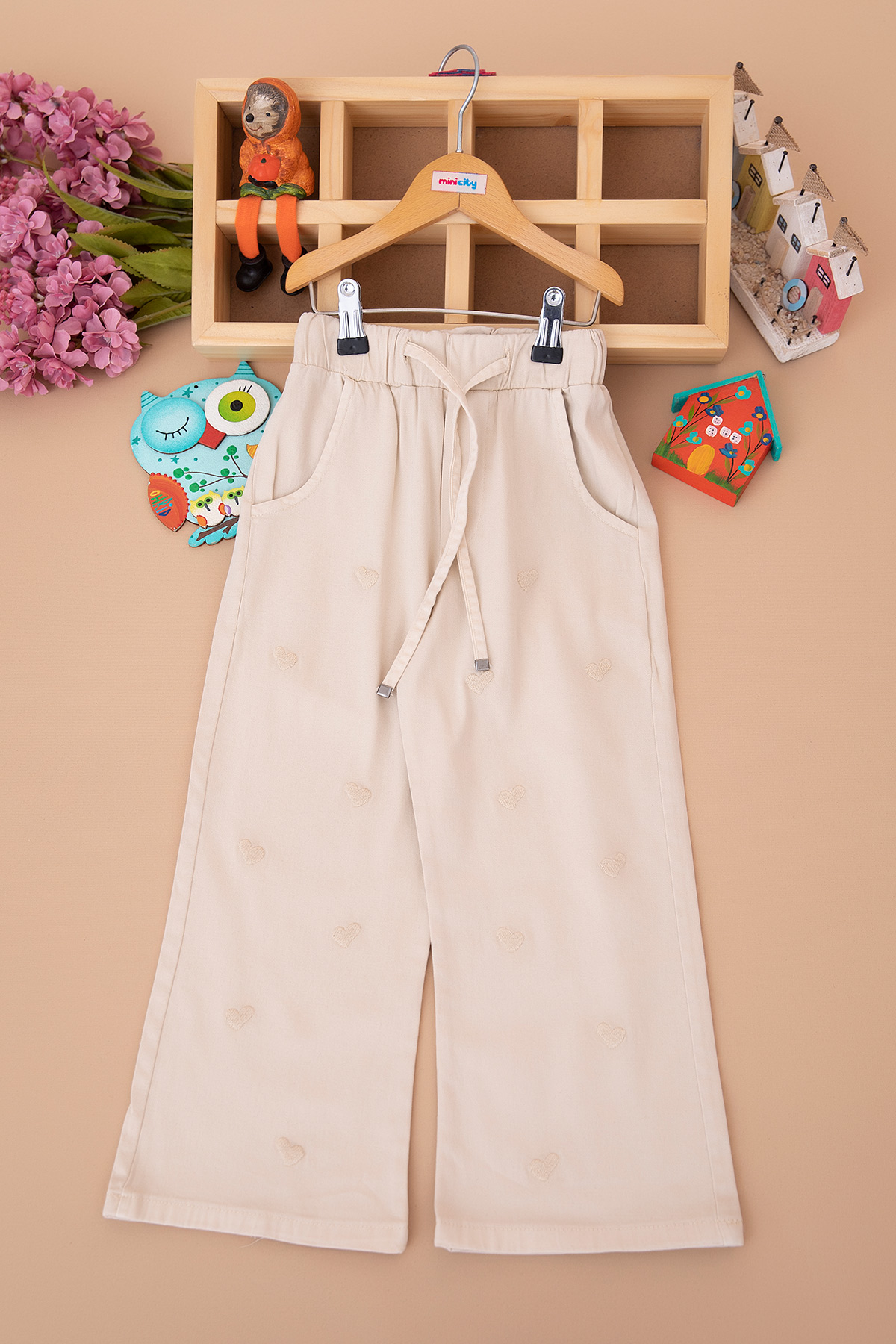 Kız Çocuk Kalp Nakışlı Pantolon - 1678-1 (6-10 Yaş)