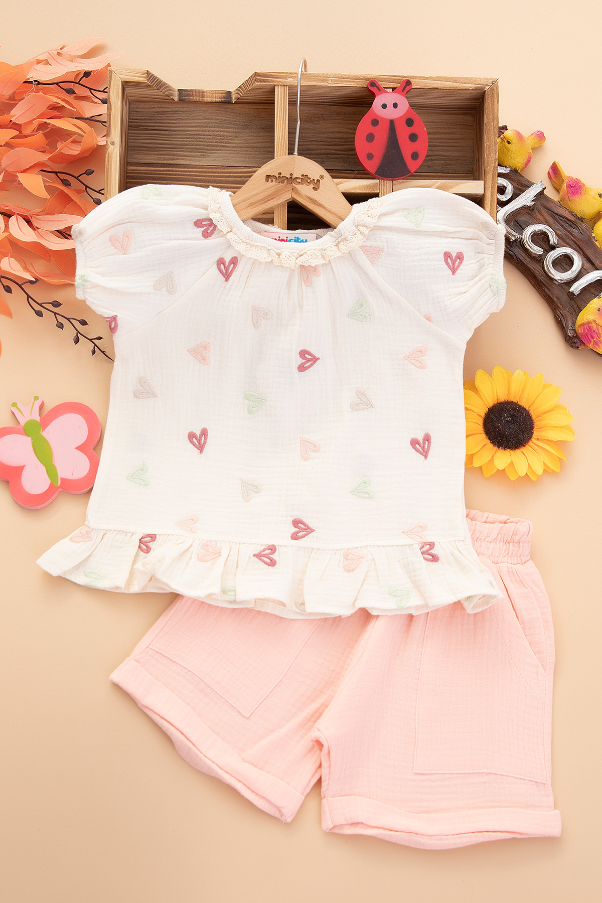 Kız Çocuk Kalp Nakışlı Şortlu Takım - 226 (3-6 Yaş)