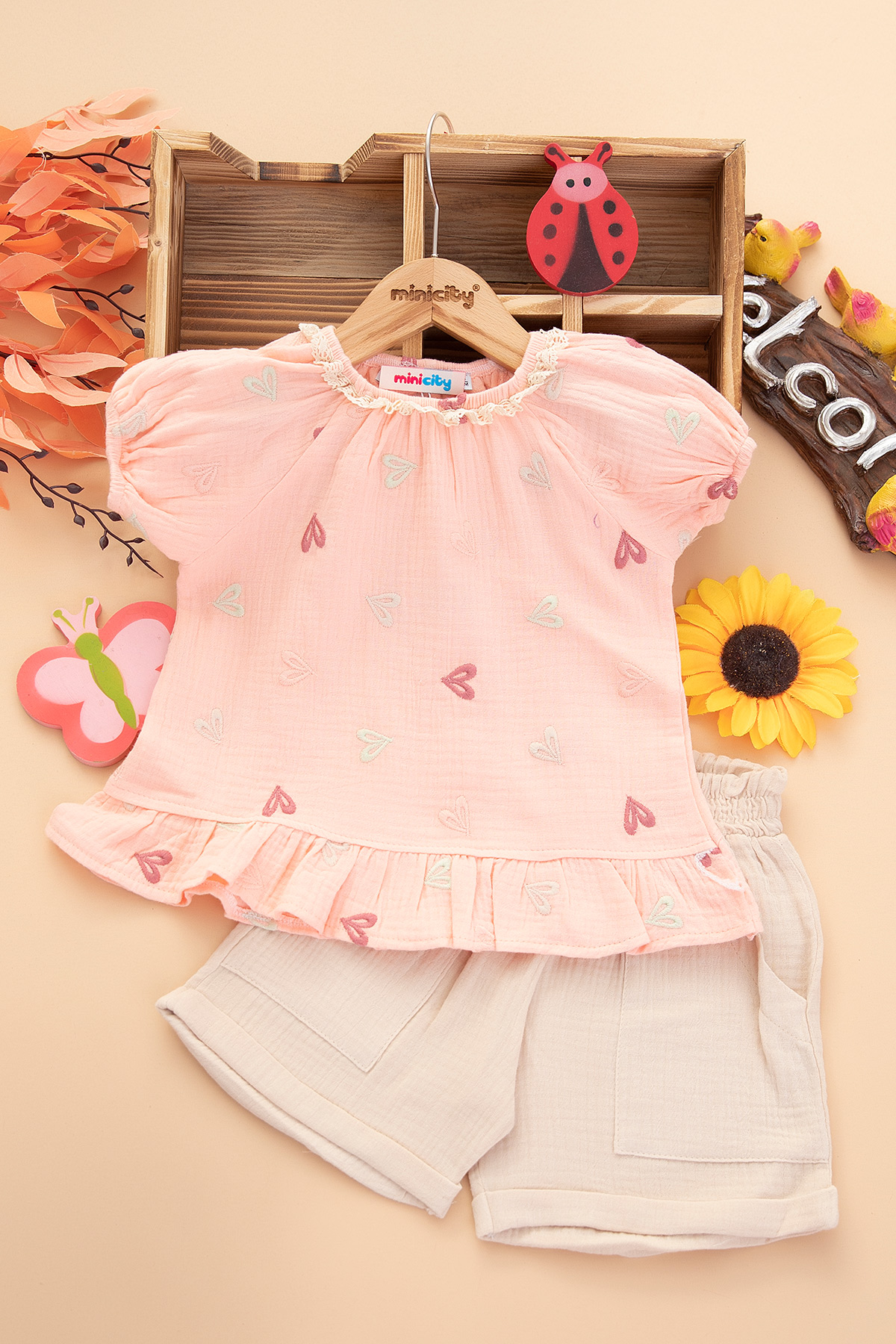 Kız Çocuk Kalp Nakışlı Şortlu Takım - 226 (3-6 Yaş)
