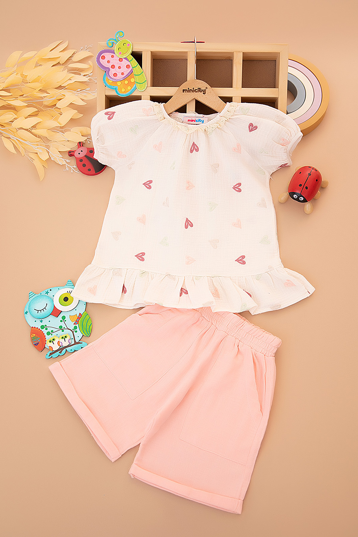 Kız Çocuk Kalp Nakışlı Şortlu Takım - 227 (7-10 Yaş)