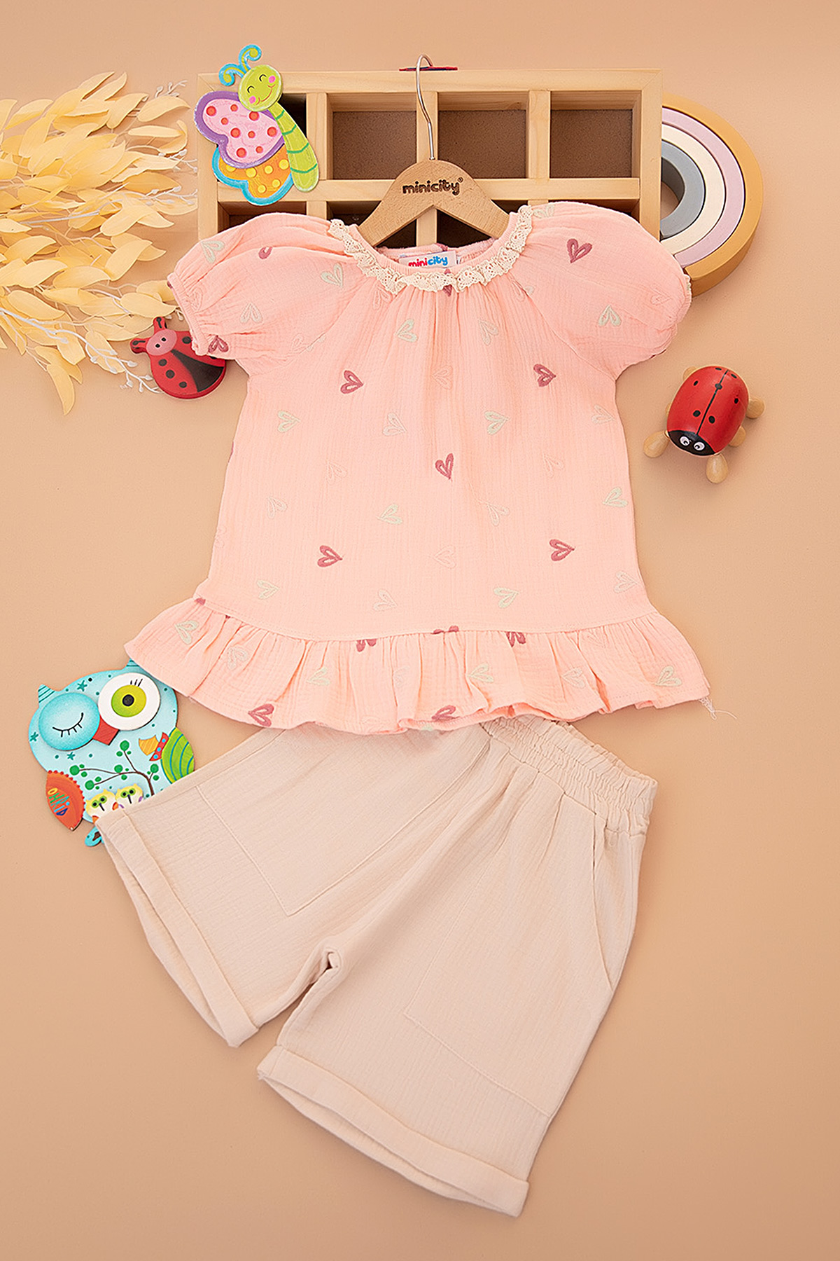 Kız Çocuk Kalp Nakışlı Şortlu Takım - 227 (7-10 Yaş)