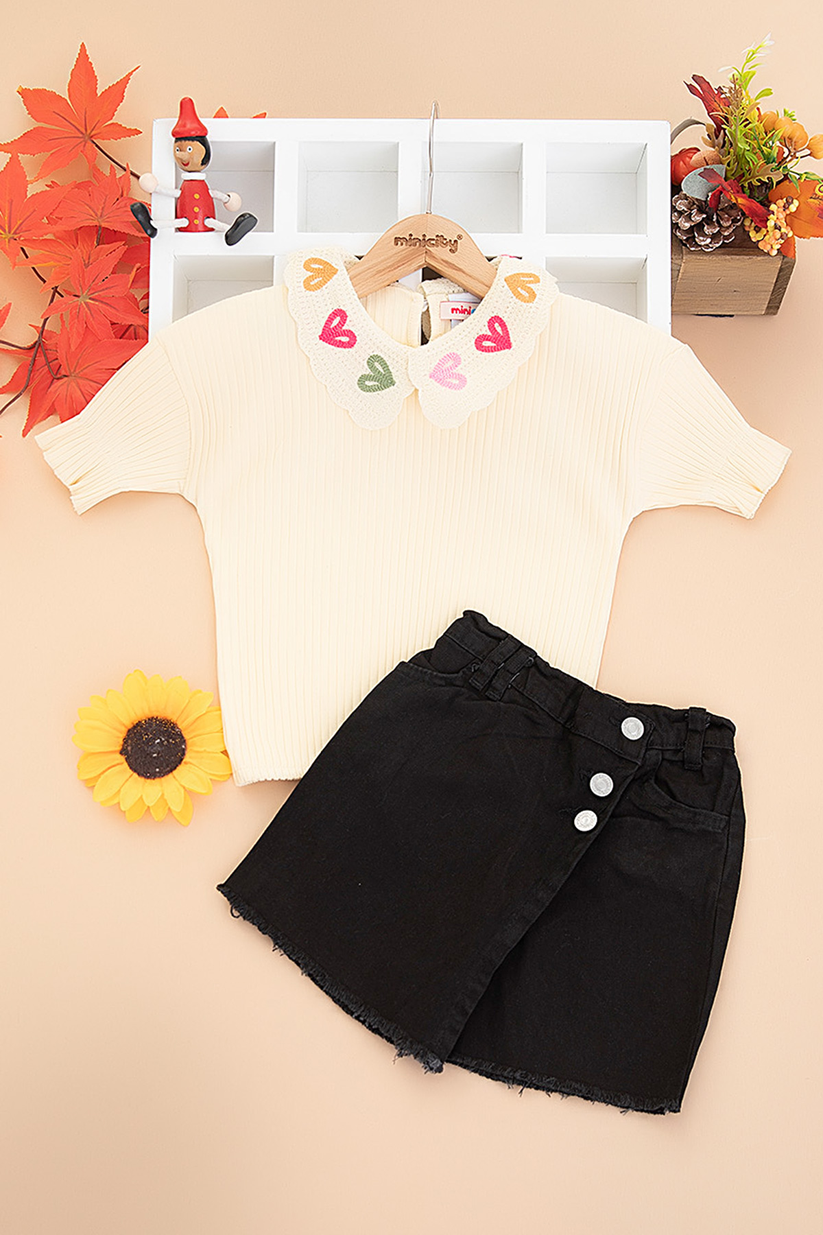 Kız Çocuk Kalp Nakışlı Şortlu Takım - K-5807 (3-10 Yaş)