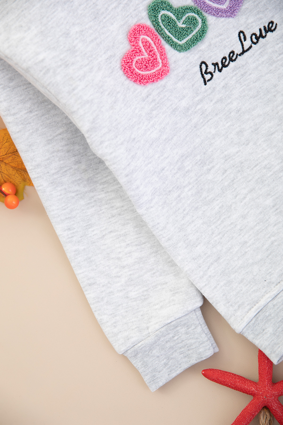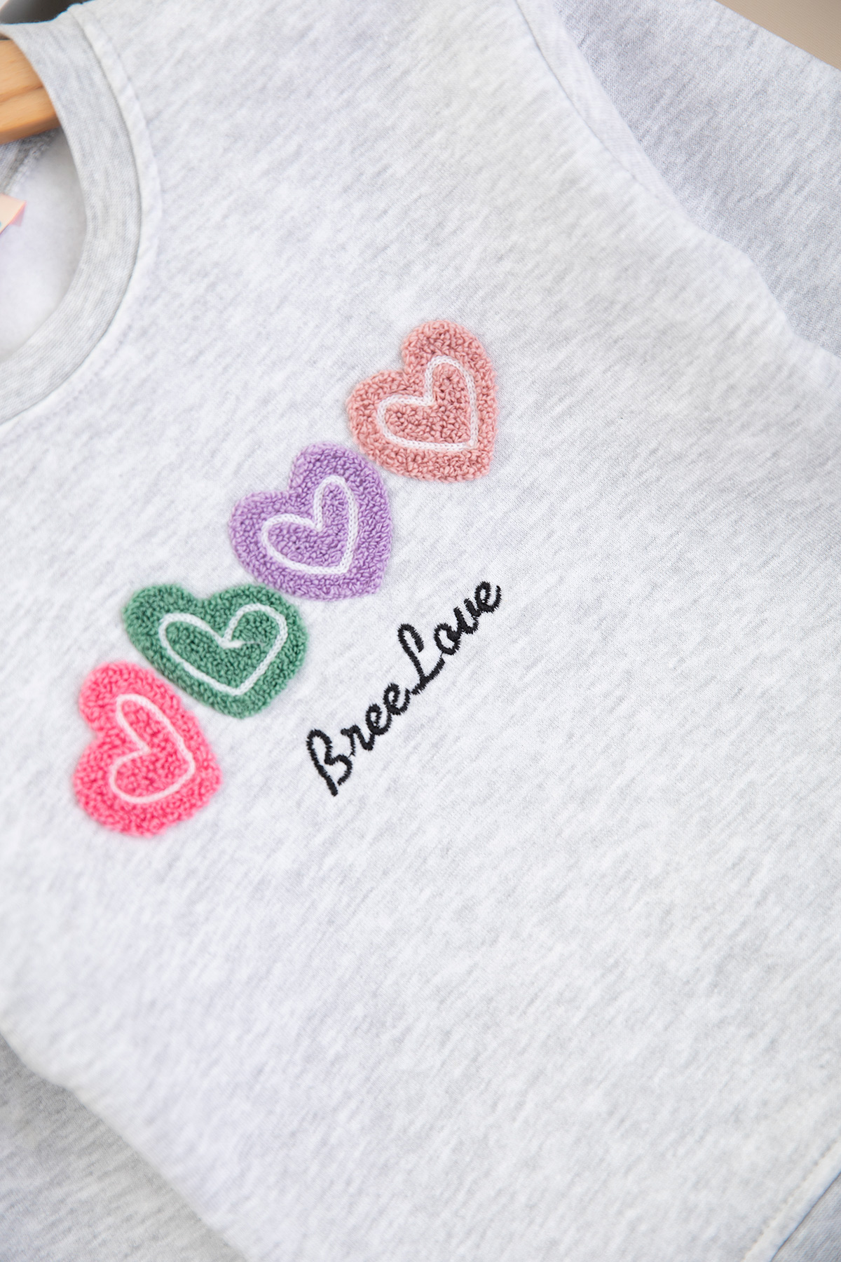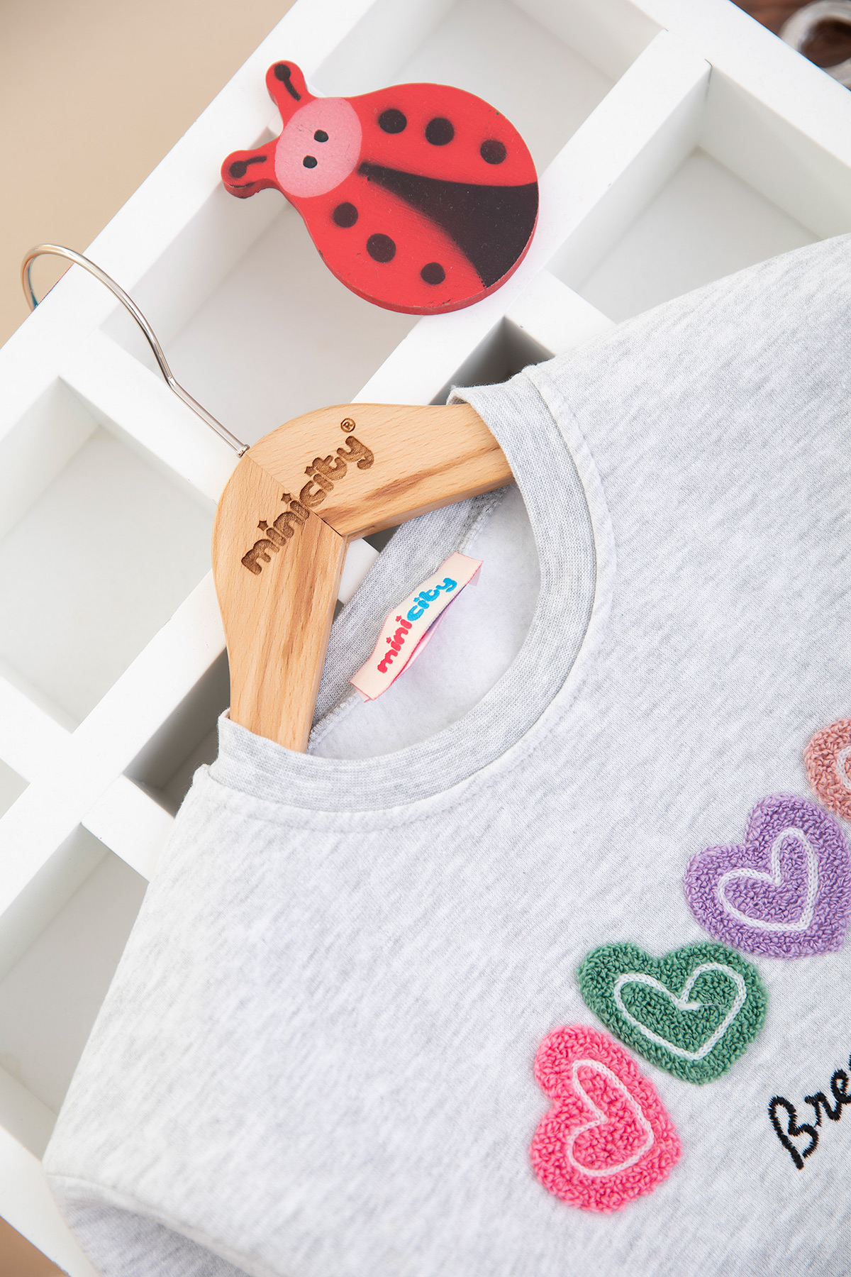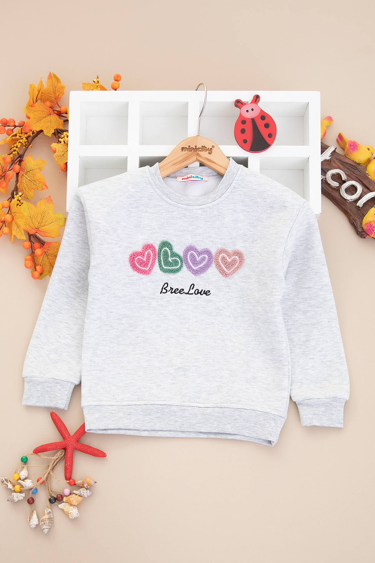 Kız Çocuk Kalp Nakışlı Üçip Sweat - 60500 (3-12 Yaş)