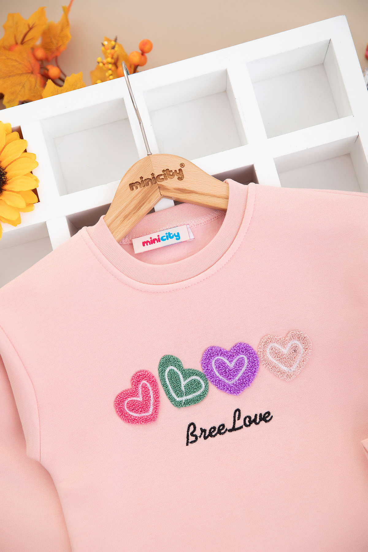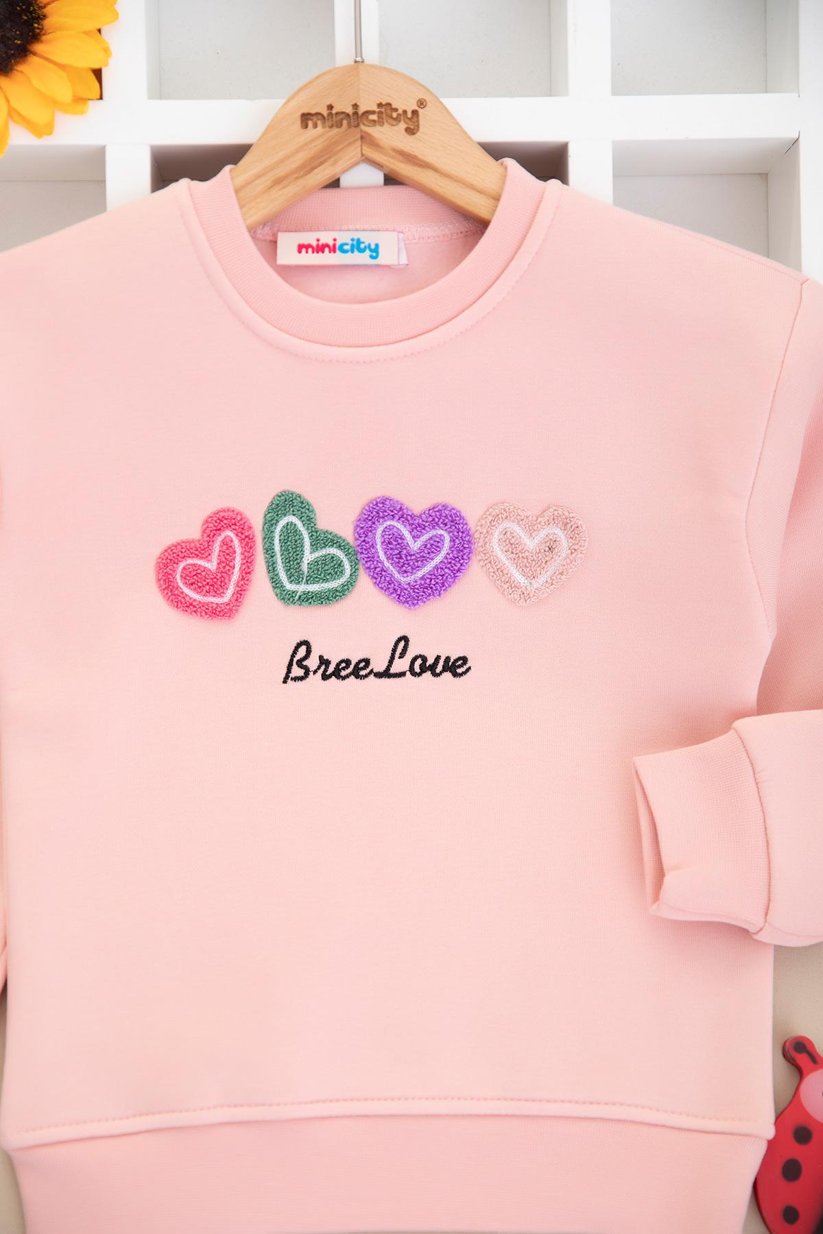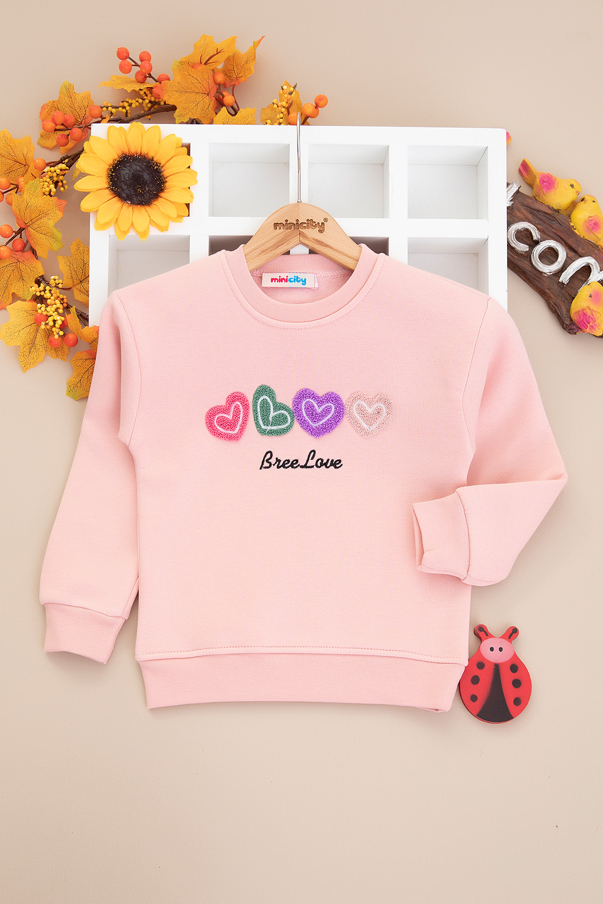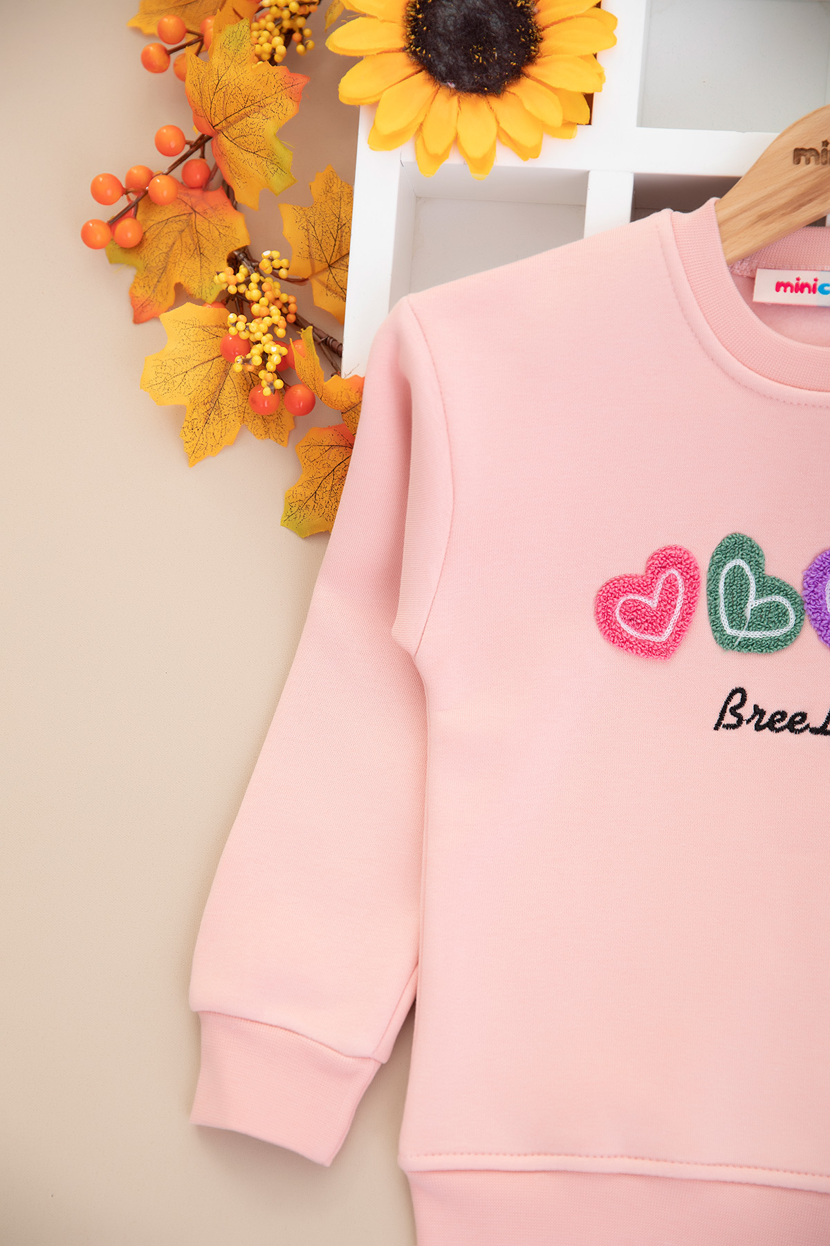 Kız Çocuk Kalp Nakışlı Üçip Sweat - 60500 (3-12 Yaş)