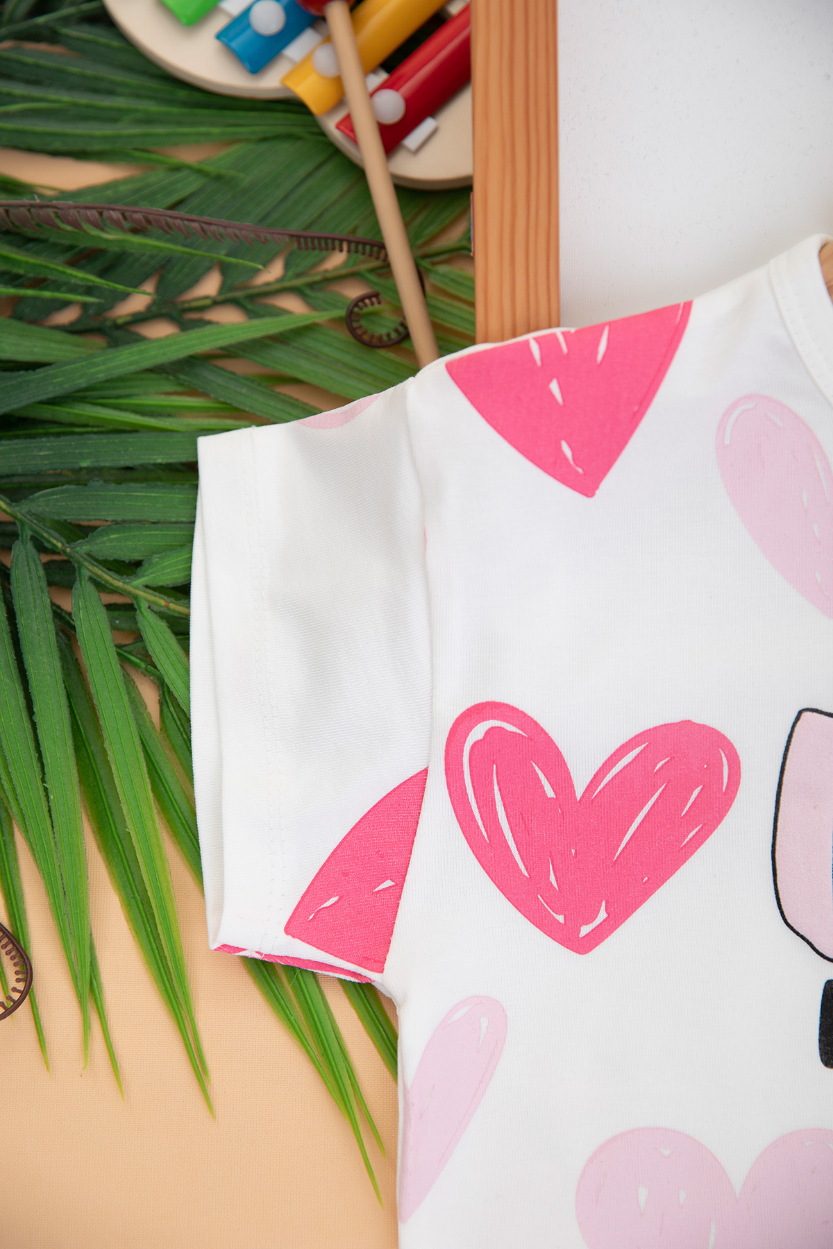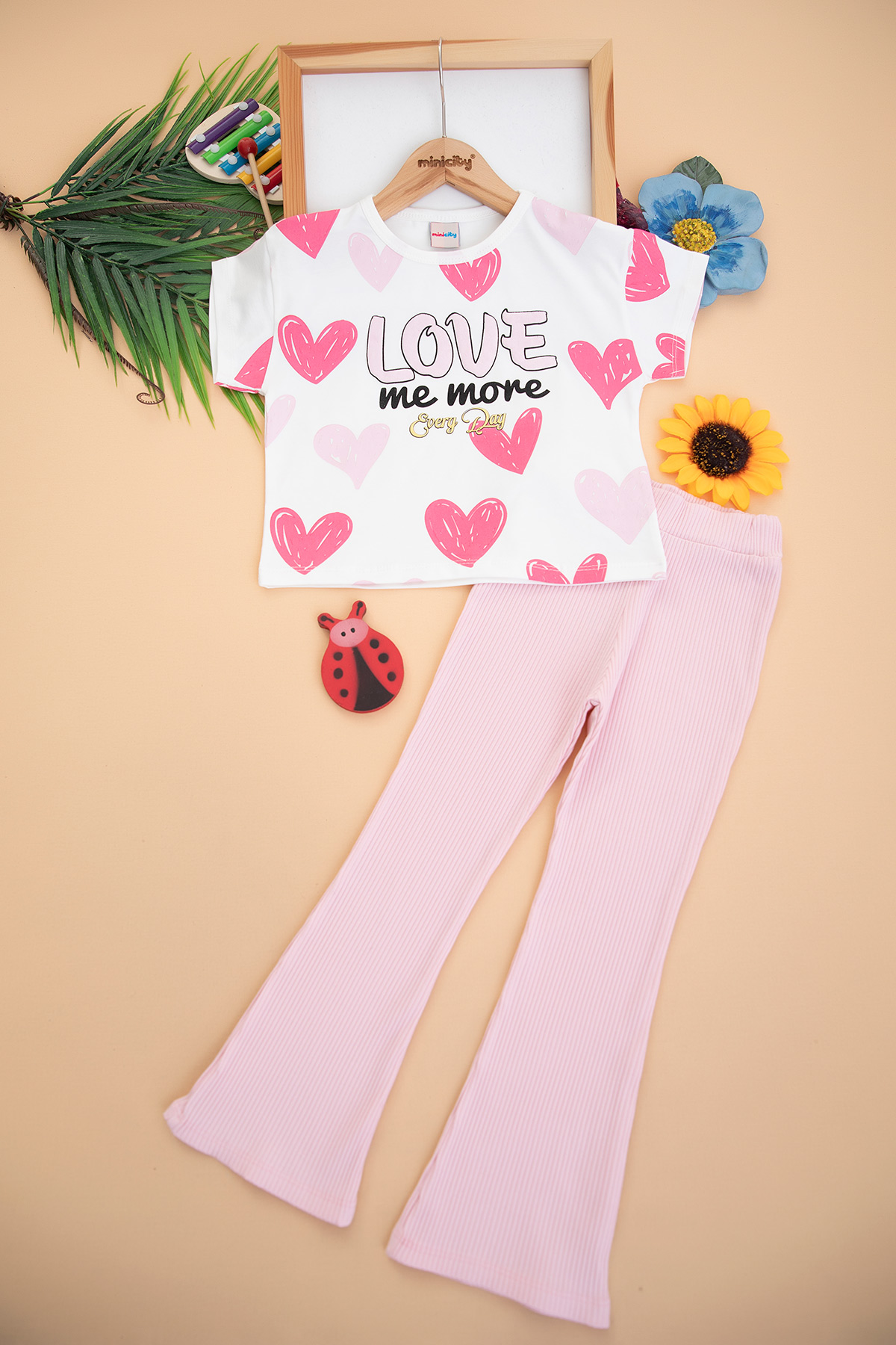 Kız Çocuk Kalp Pano Baskılı İspanyol Paça Takım - 6283 (3-10 Yaş)