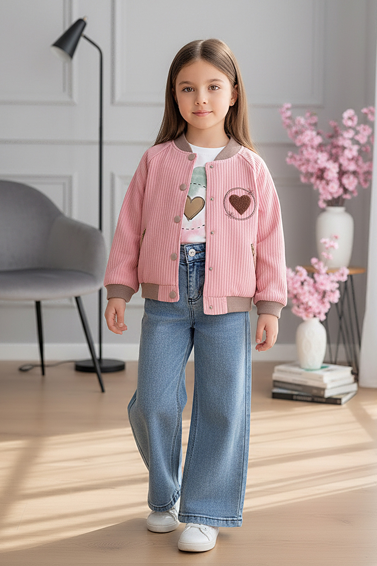 Kız Çocuk Kalp Piliseli Ceketli Takım - 50718 (2-5 Yaş)