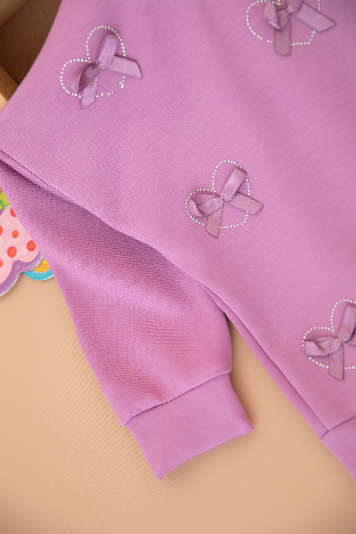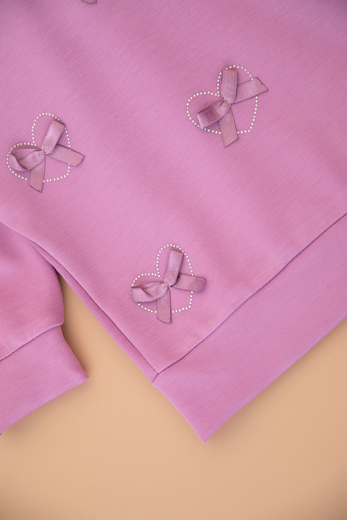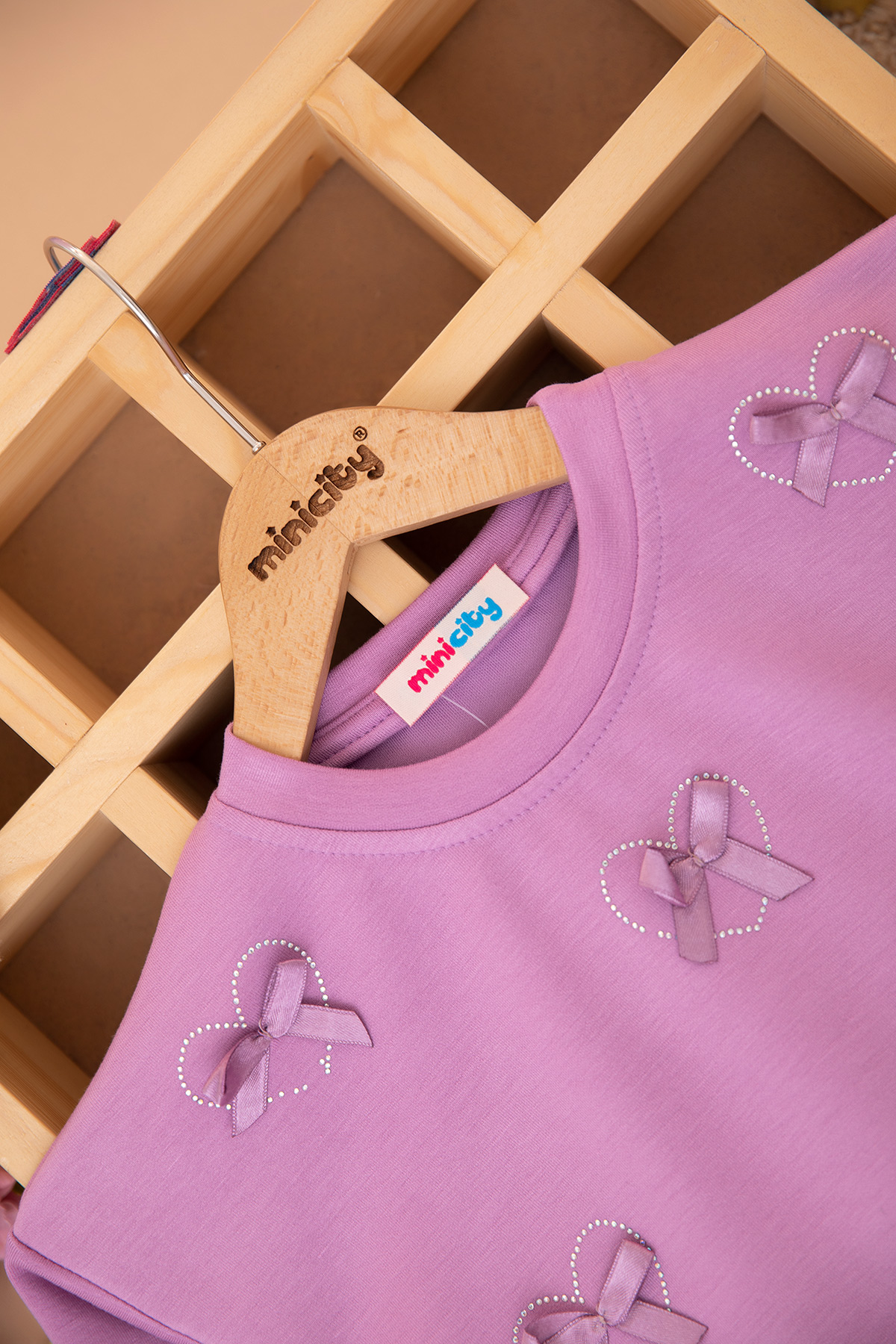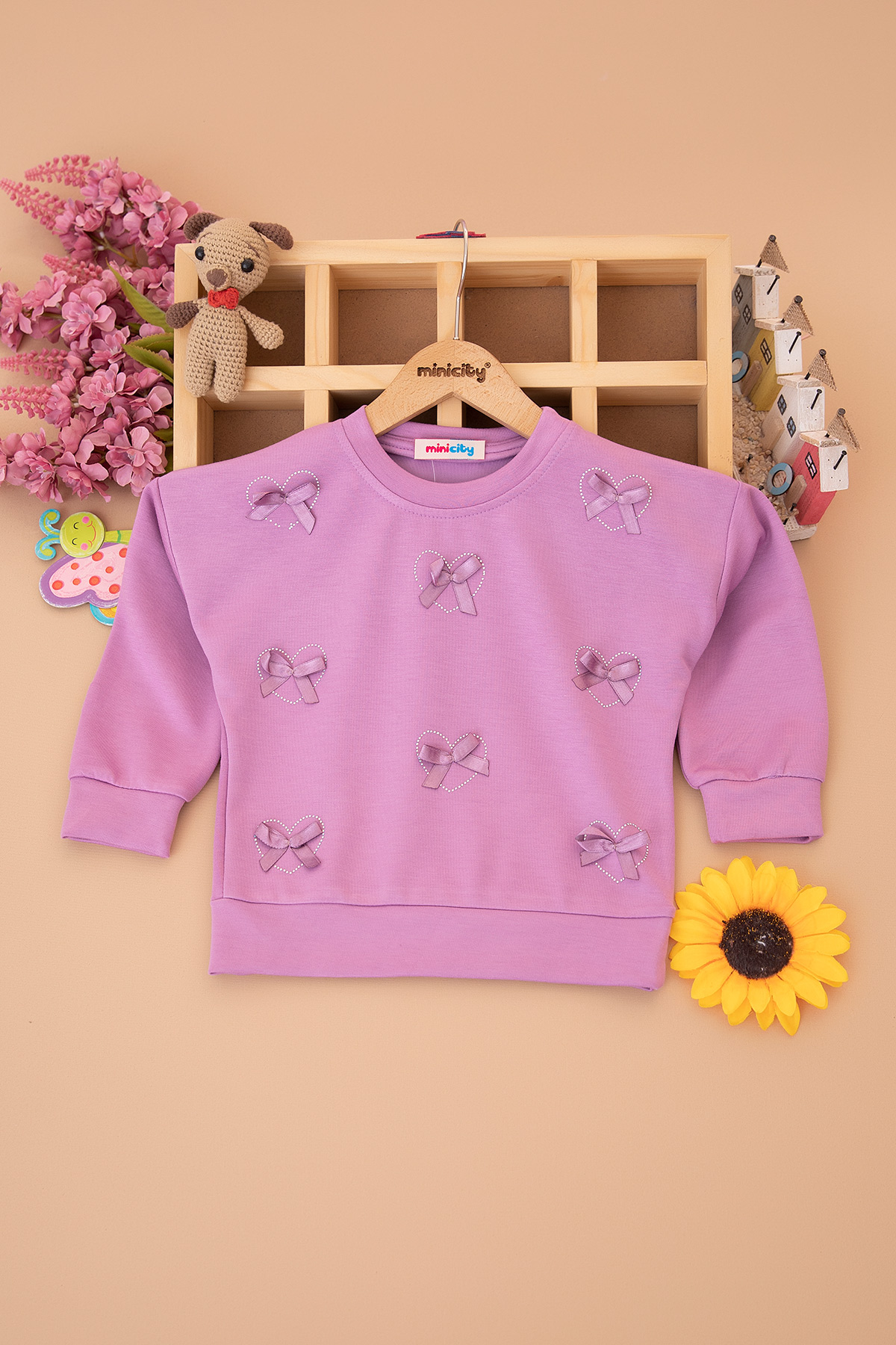 Kız Çocuk Kalp Ve Fiyonk Detaylı Sweat - 4142 (3-7 Yaş)